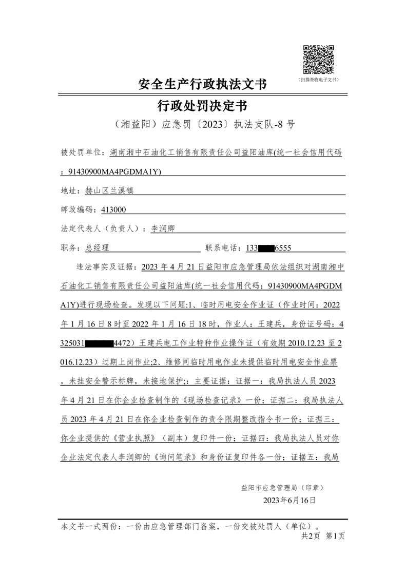 (湘益阳)应急罚〔2023〕执法支队-8 号
