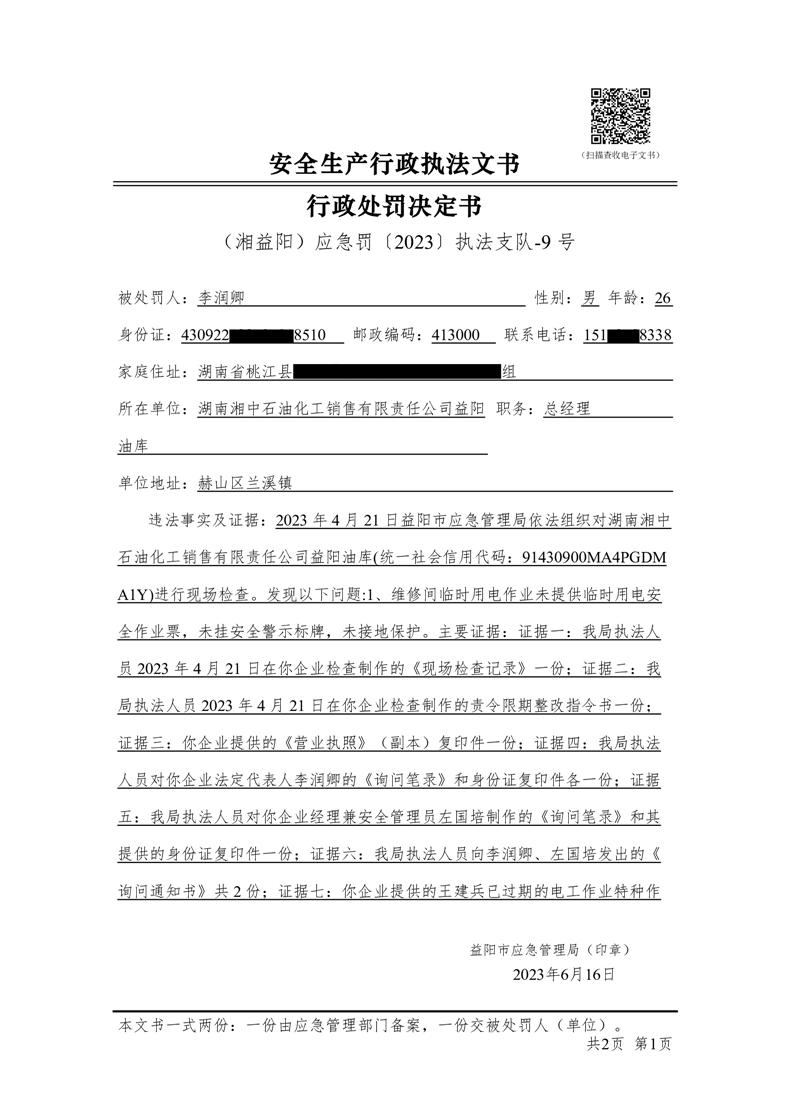 (湘益阳)应急罚〔2023〕执法支队-9 号