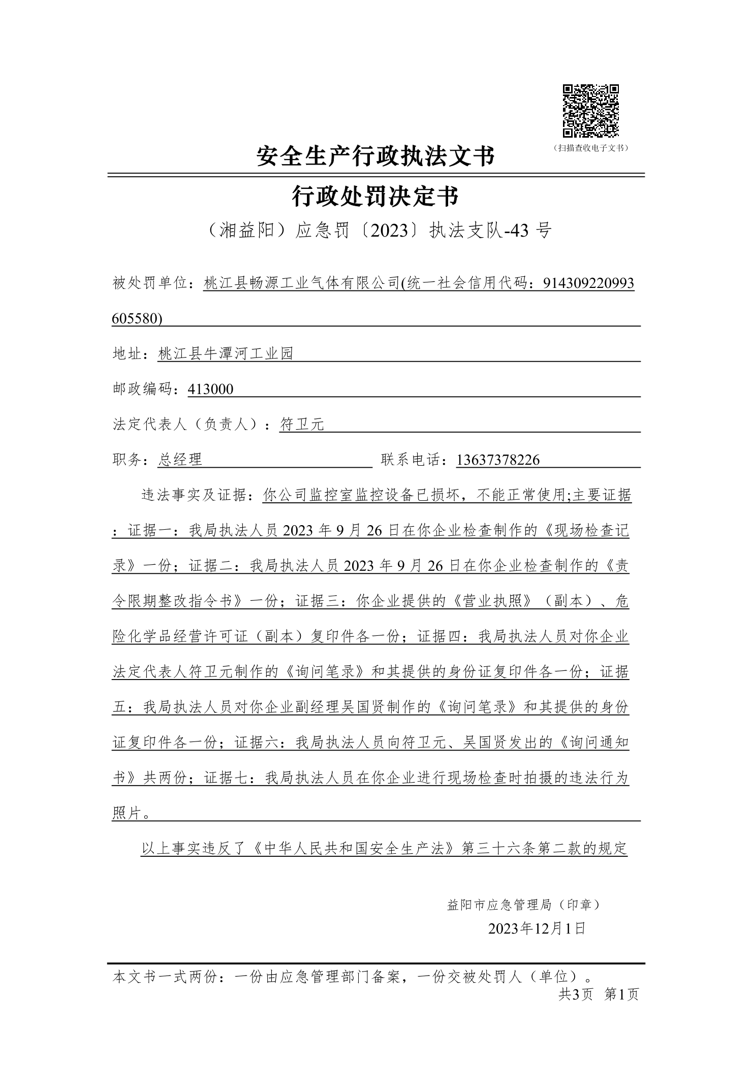 (湘益阳)应急罚〔2023〕执法支队-43 号