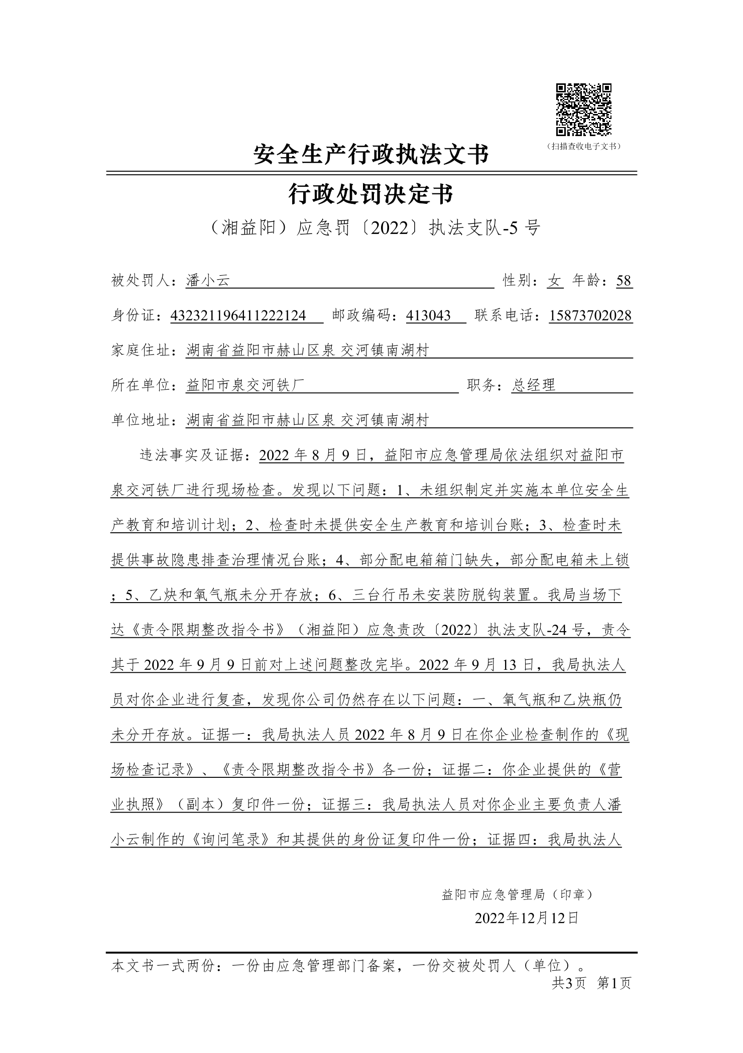 (湘益阳)应急罚〔2022〕执法支队-5 号