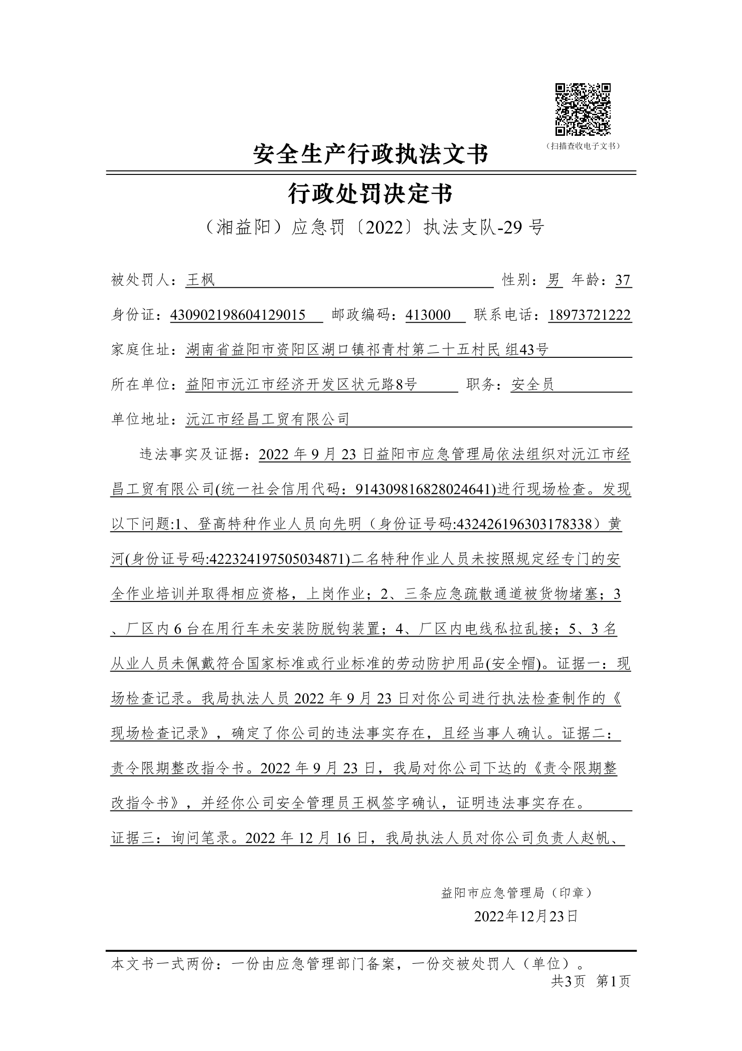 (湘益阳)应急罚〔2022〕执法支队-29 号