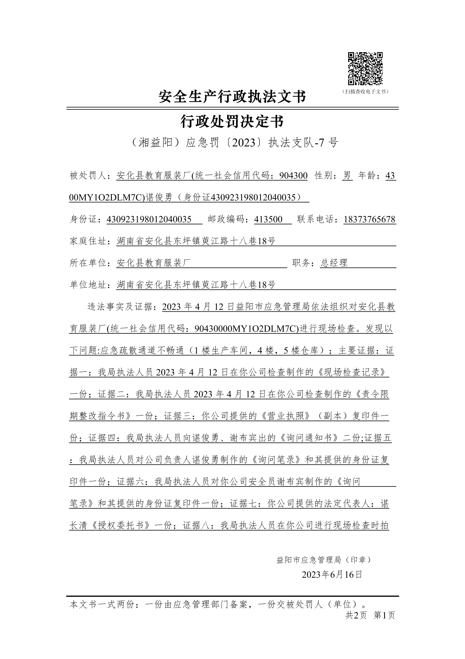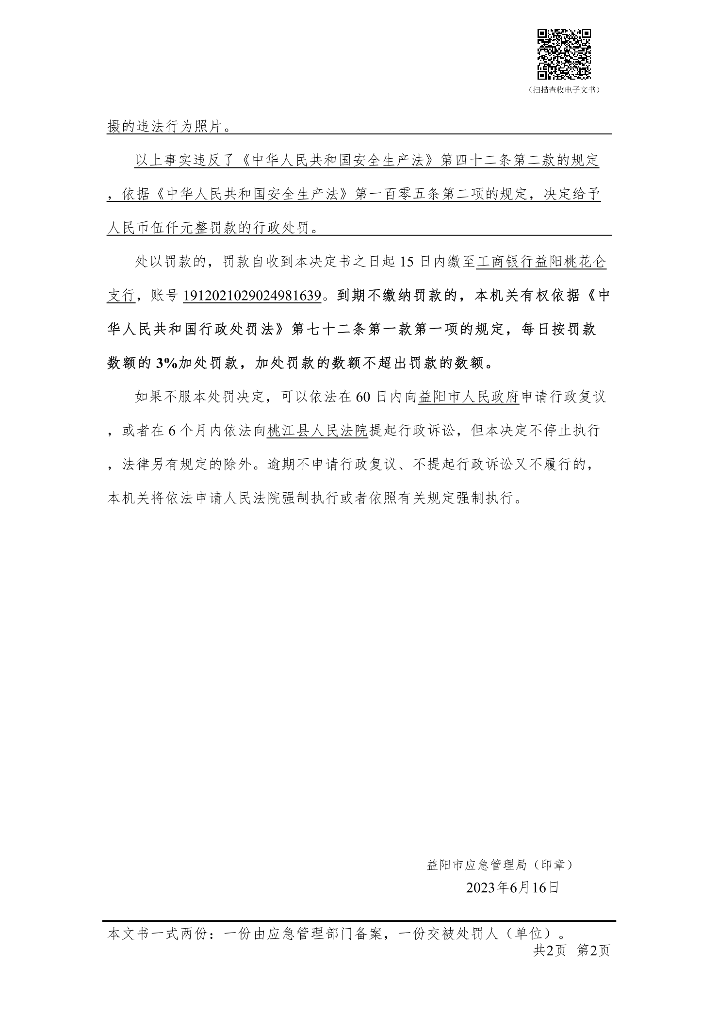 (湘益阳)应急罚〔2023〕执法支队-7 号