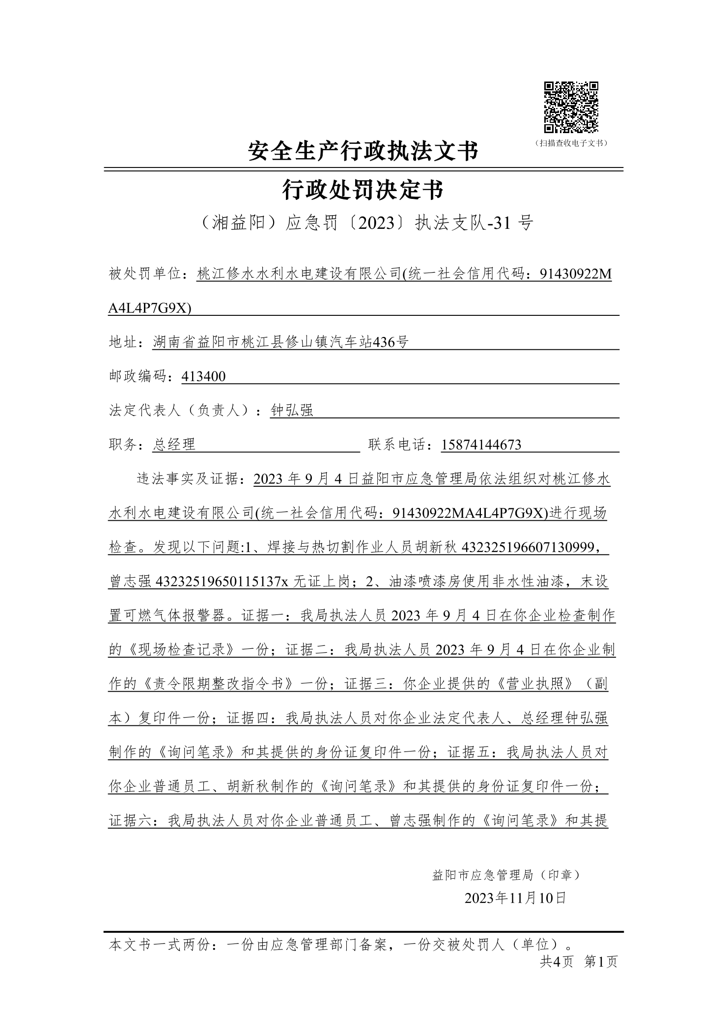 (湘益阳)应急罚〔2023〕执法支队-31 号