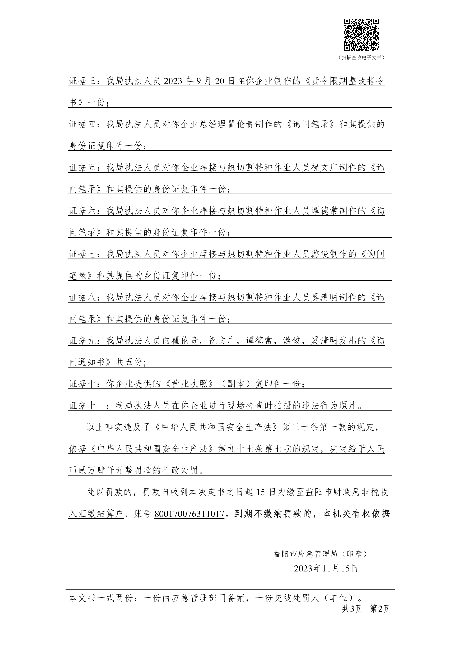 (湘益阳)应急罚〔2023〕执法支队-37 号