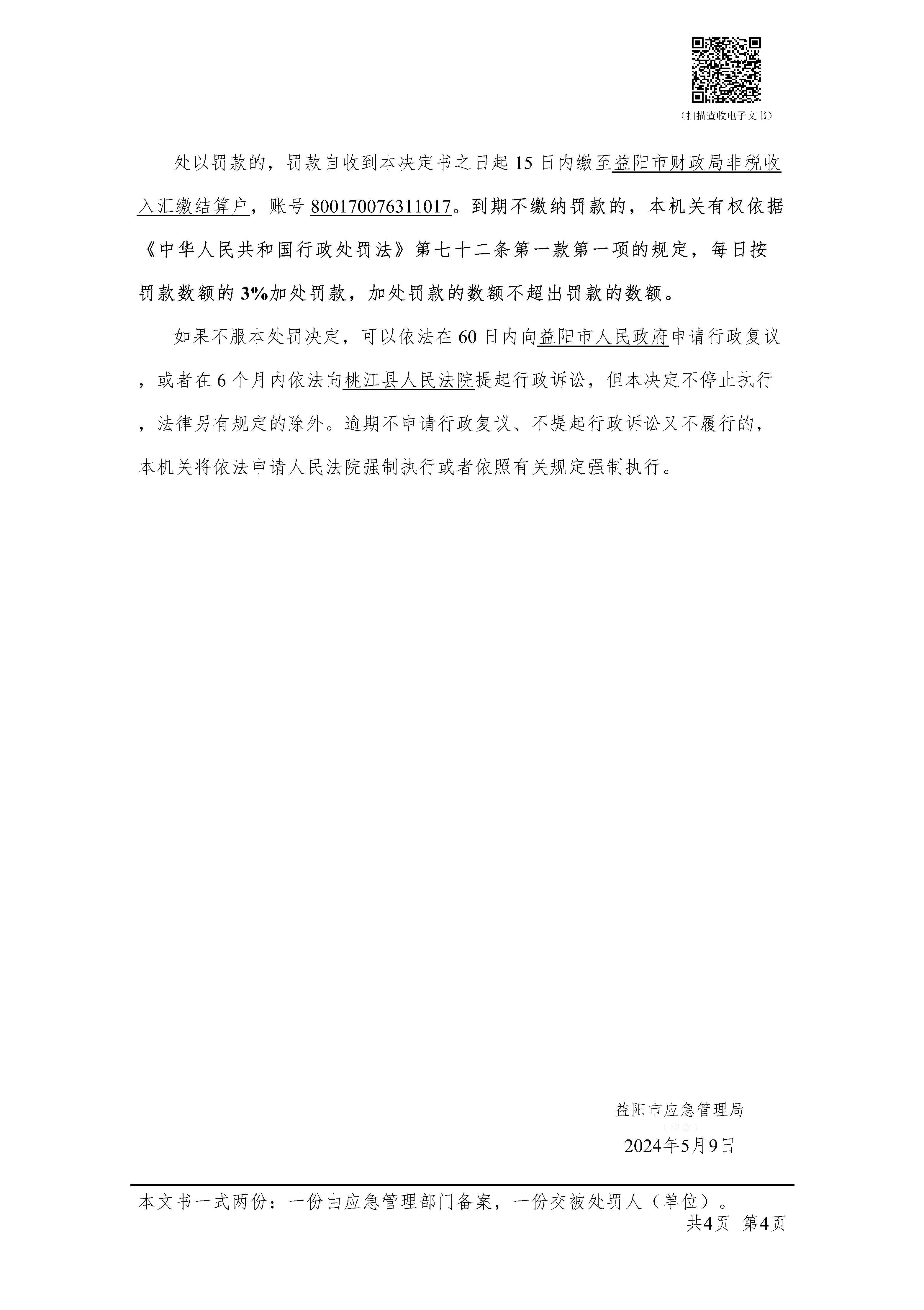 (湘益阳)应急罚〔2024〕执法支队-17 号