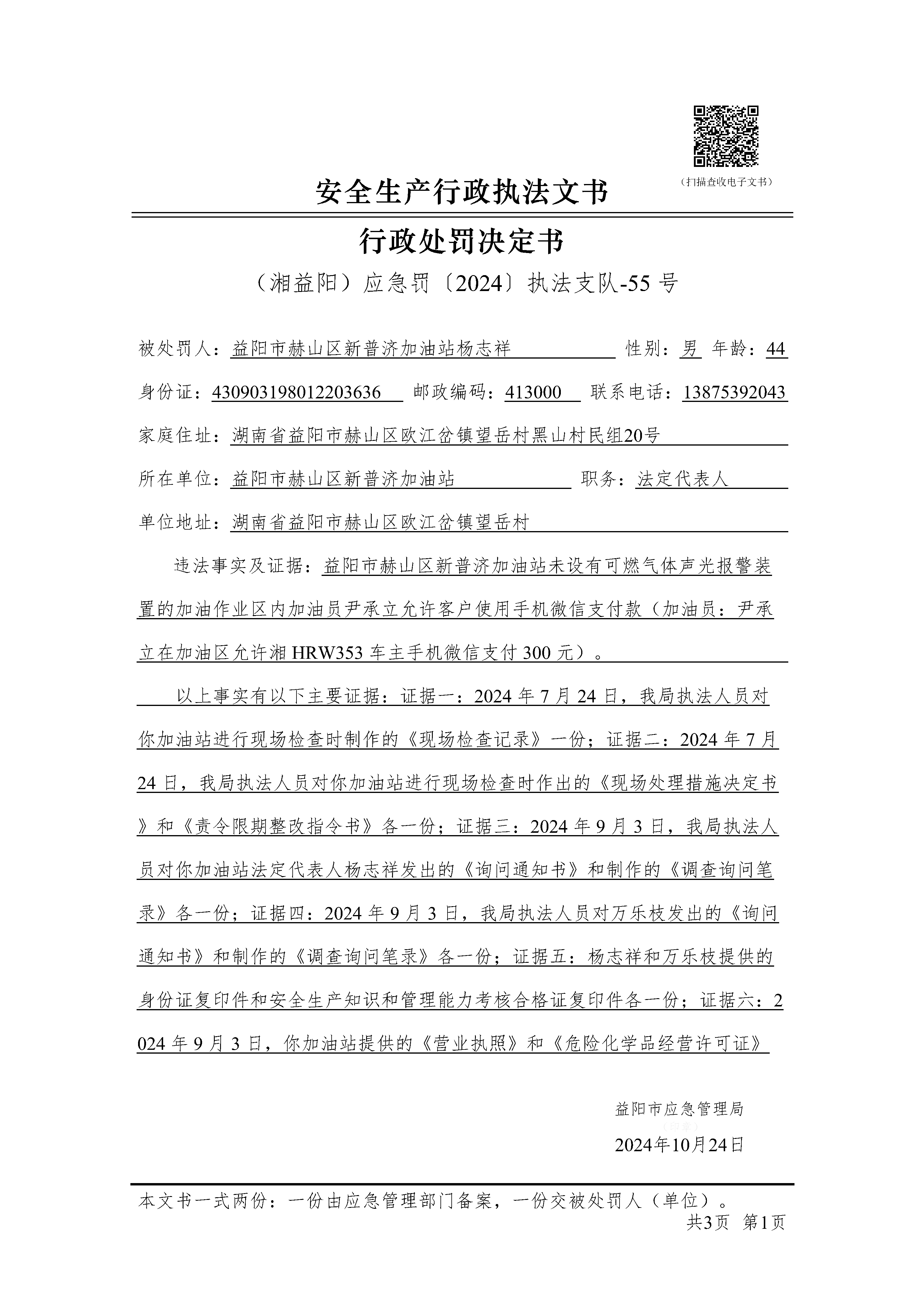 (湘益阳)应急罚〔2024〕执法支队-55 号