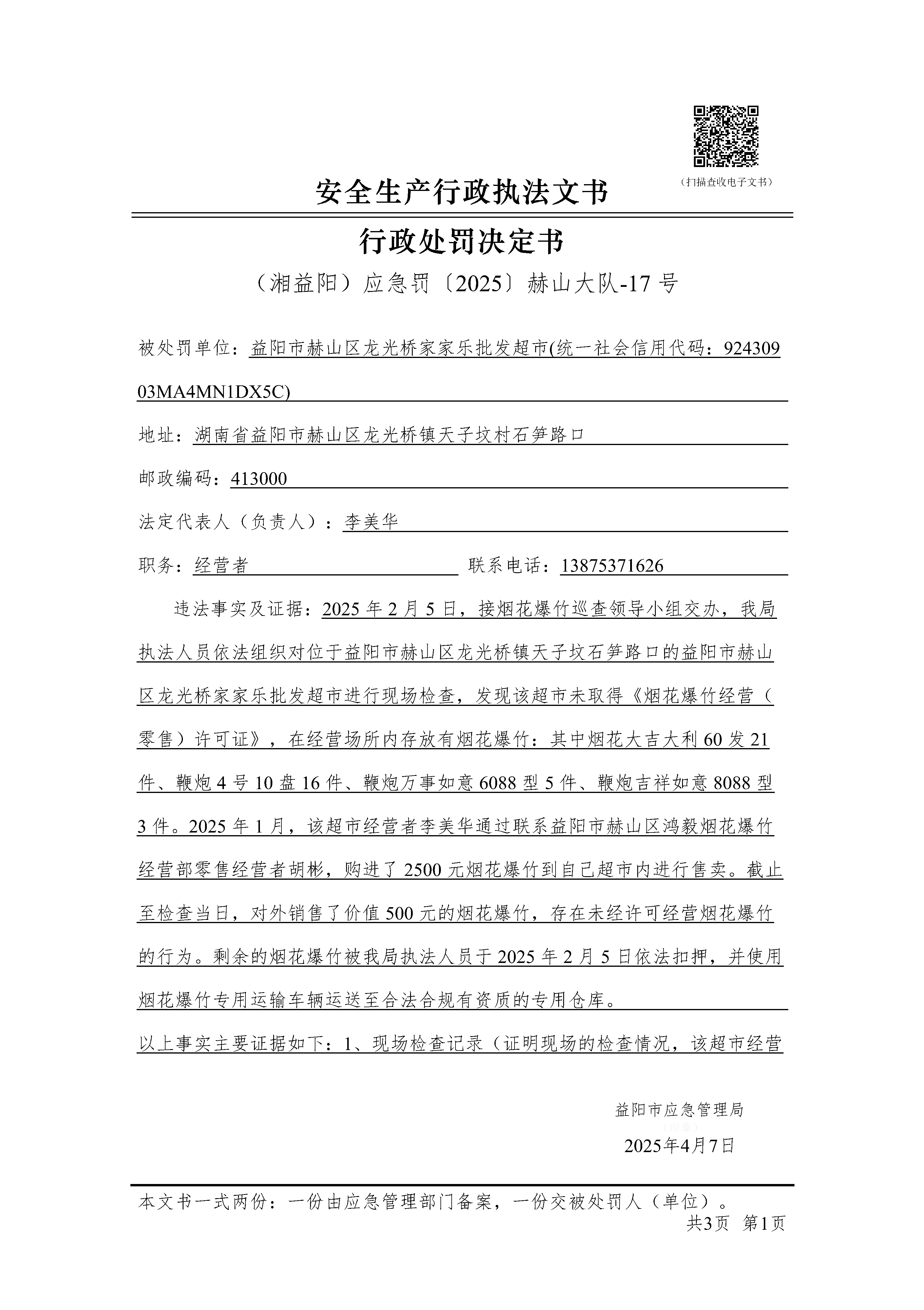 (湘益阳)应急罚〔2025〕赫山大队-17 号