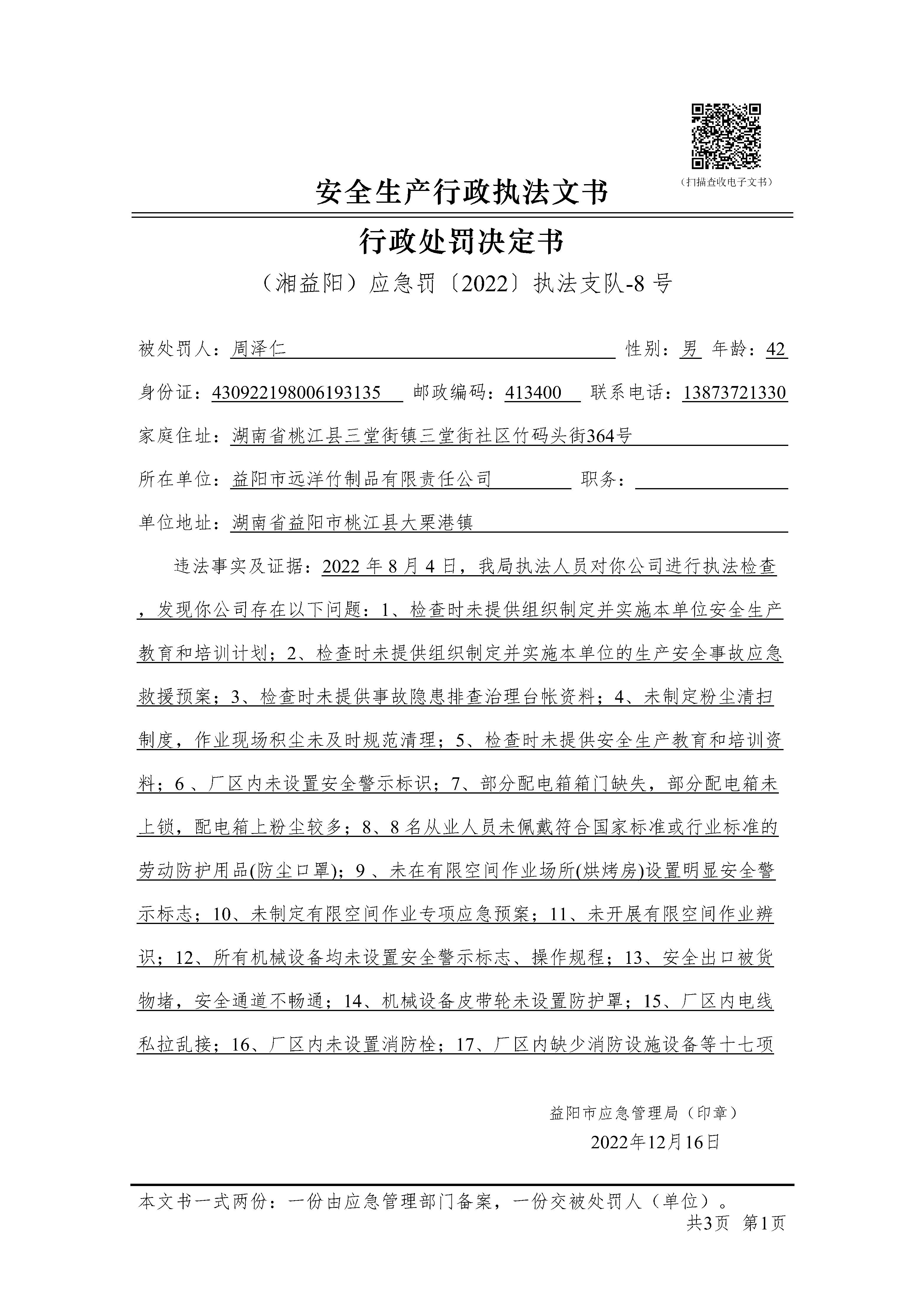 (湘益阳)应急罚〔2022〕执法支队-8 号