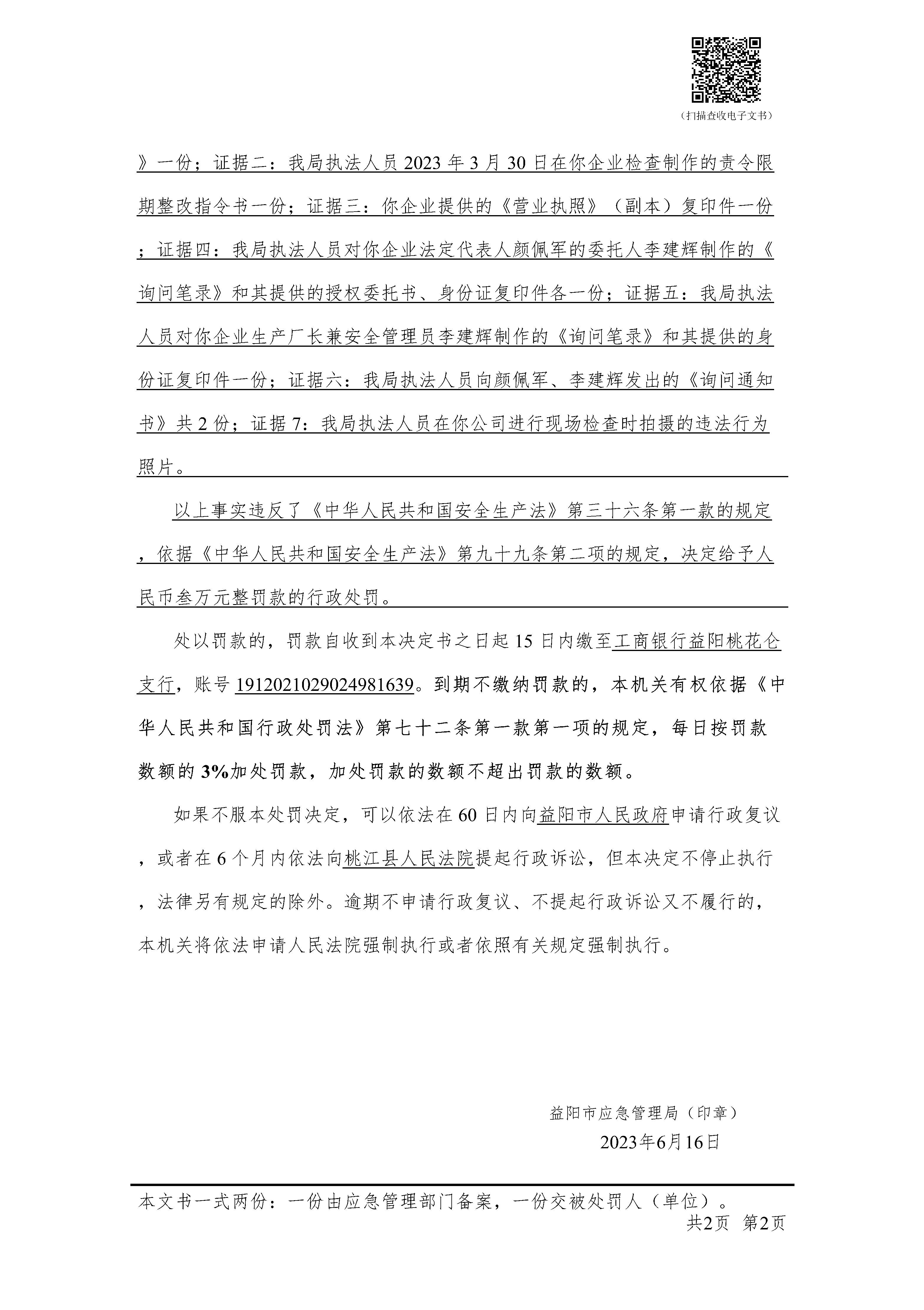 (湘益阳)应急罚〔2023〕执法支队-5 号