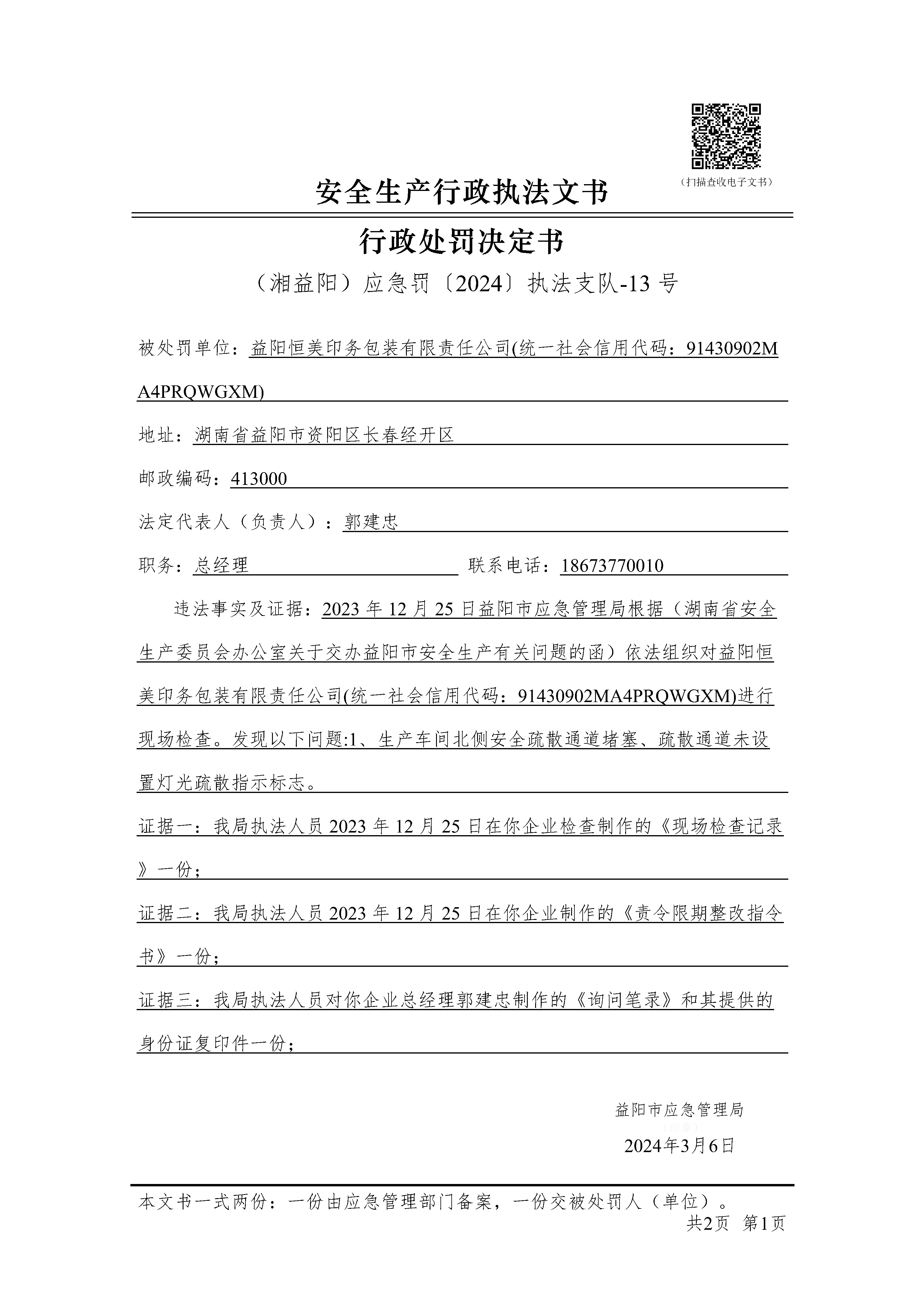 (湘益阳)应急罚〔2024〕执法支队-13 号