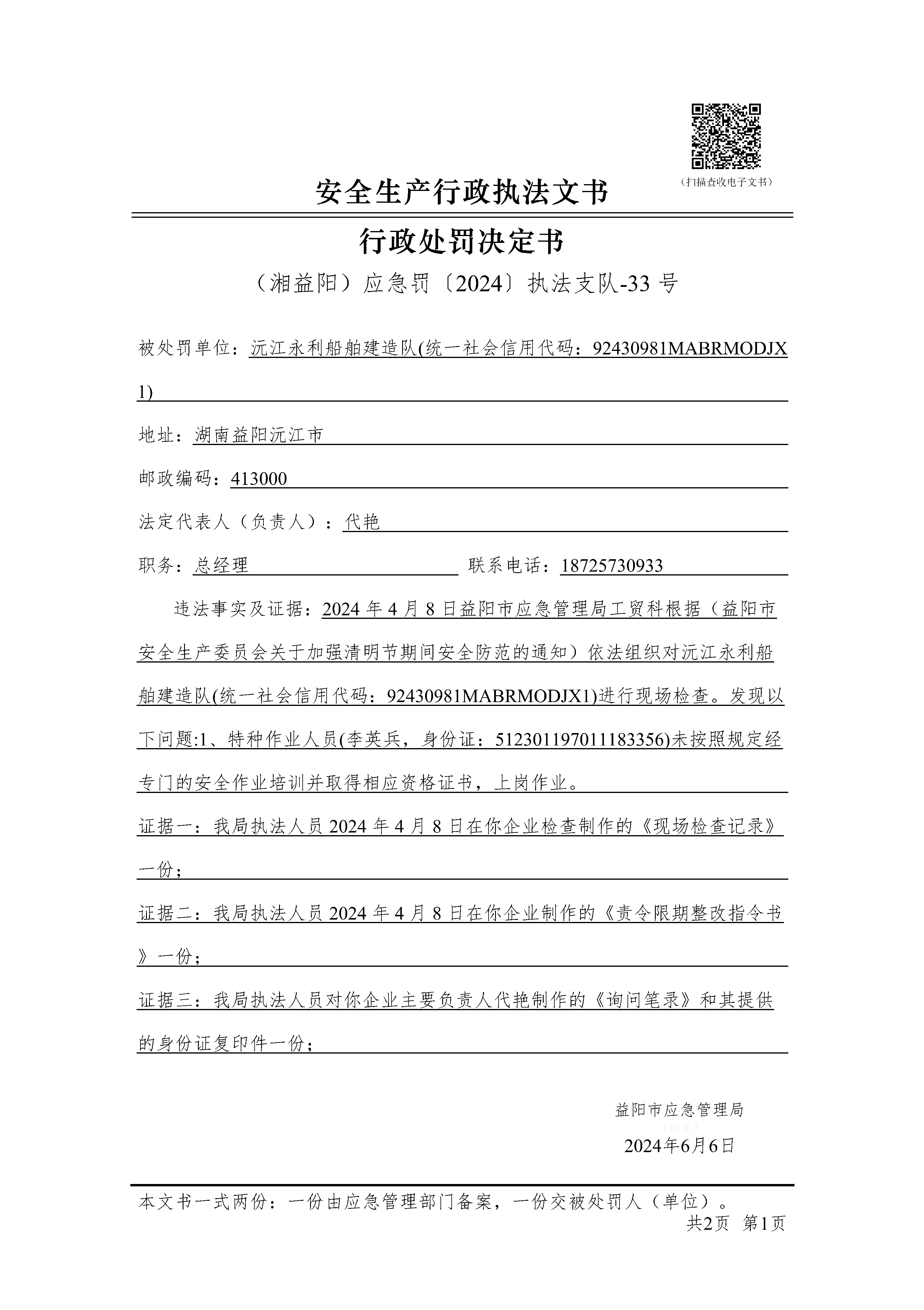 (湘益阳)应急罚〔2024〕执法支队-33 号
