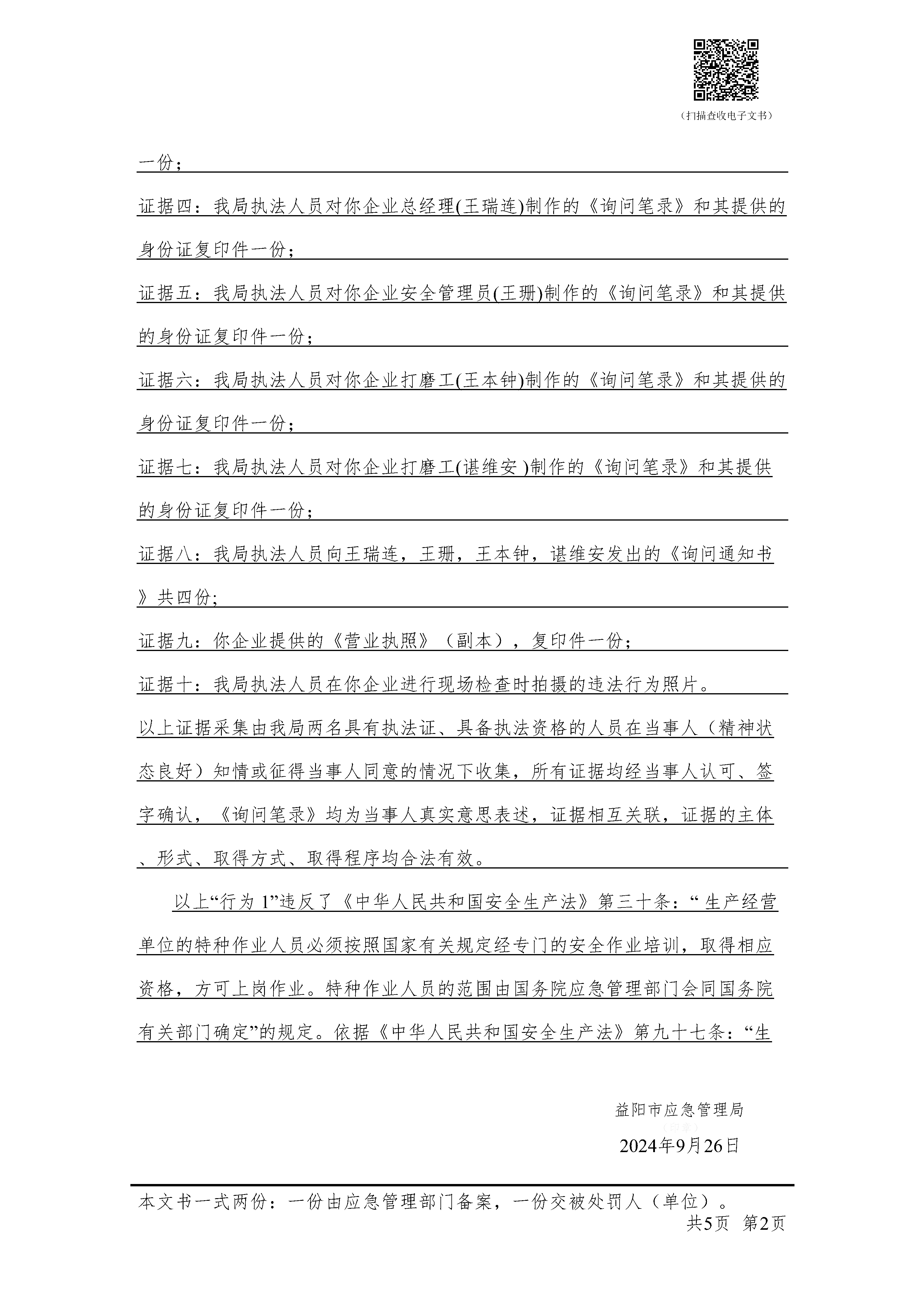 (湘益阳)应急罚〔2024〕执法支队-50号