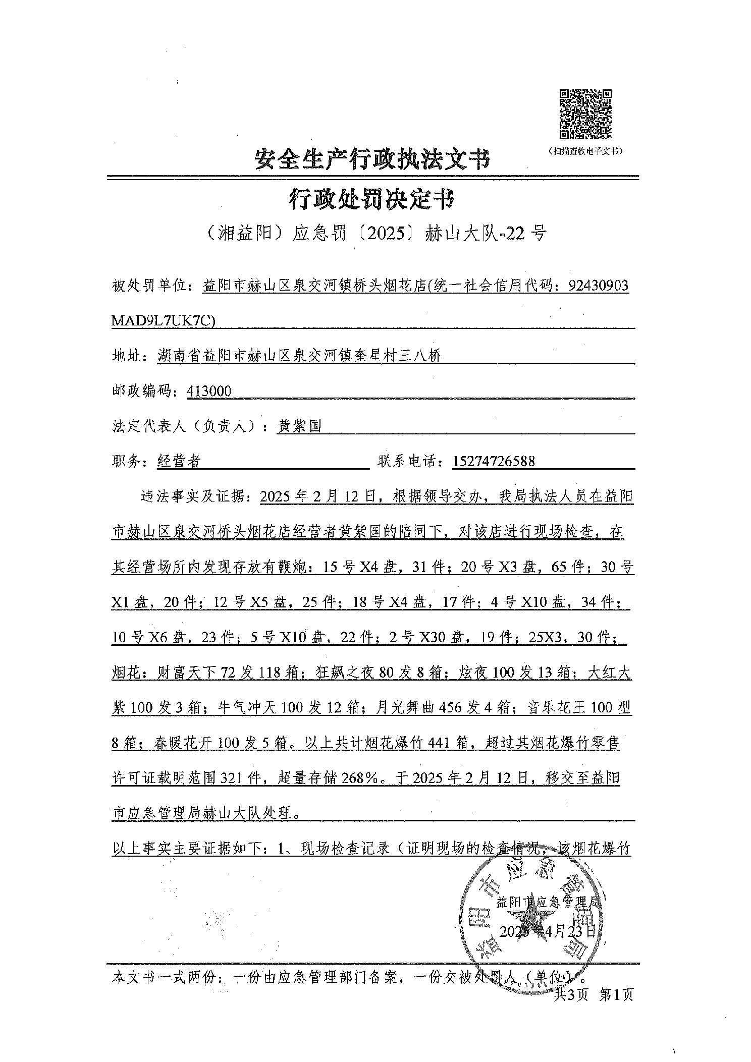 (湘益阳) 应急罚〔2025〕赫山大队-22号