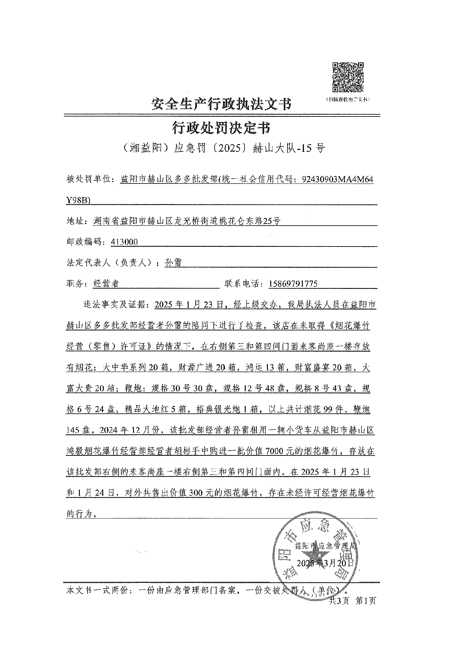 (湘益阳) 应急罚〔2025〕赫山大队-15号