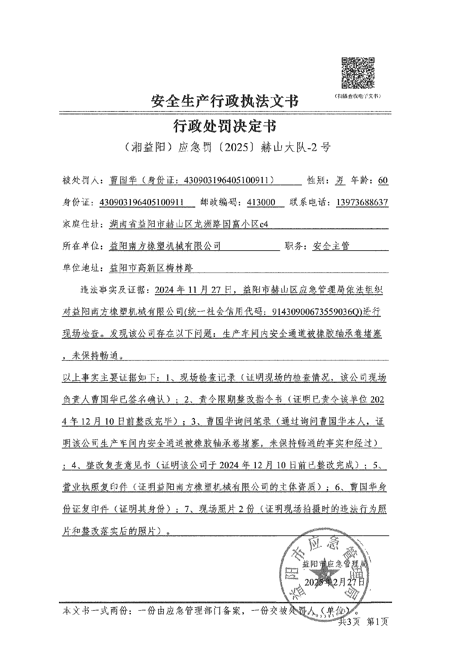 (湘益阳) 应急罚〔2025〕赫山大队-1.2.3号