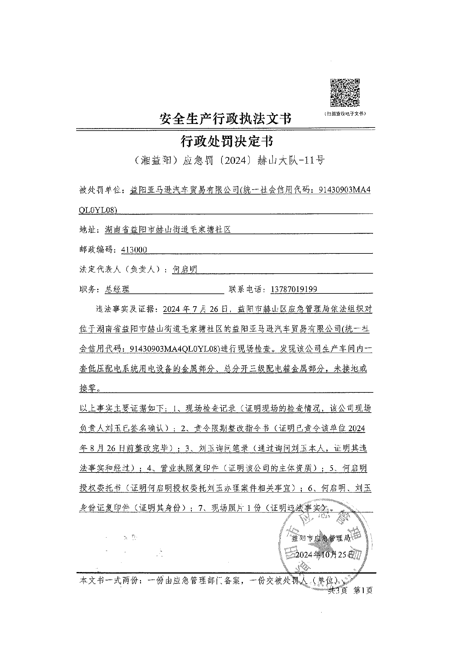 (湘益阳) 应急罚〔2024〕赫山大队-11号