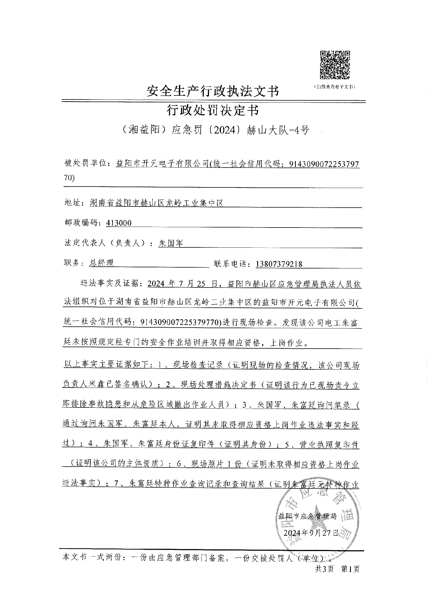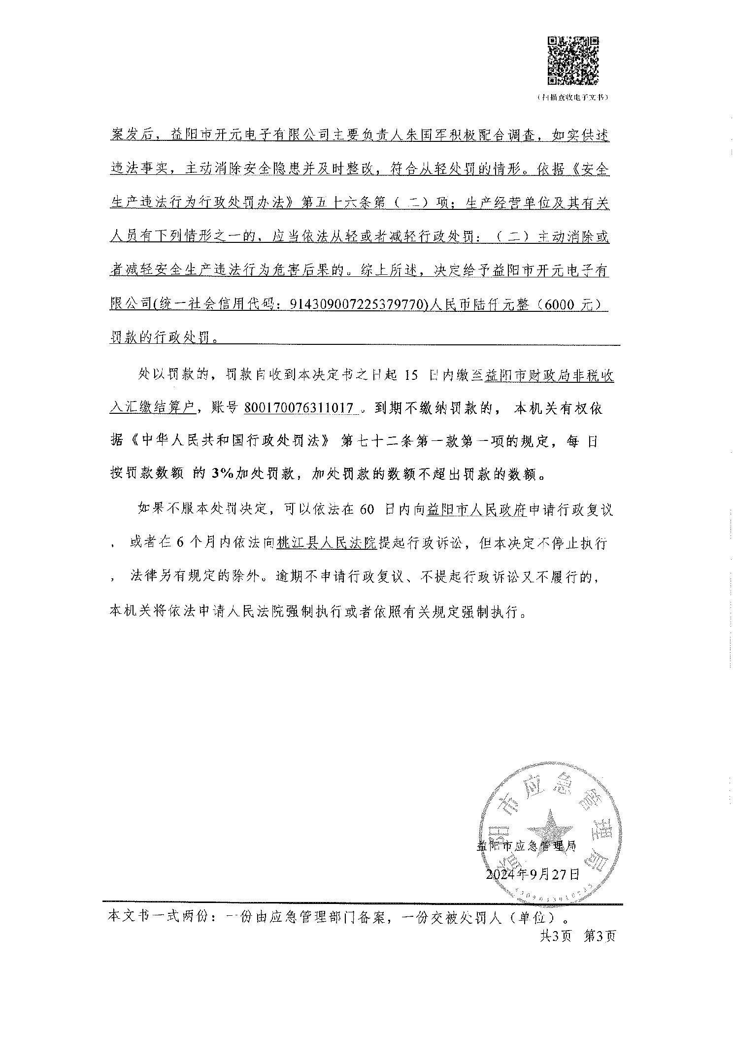 (湘益阳) 应急罚〔2024〕赫山大队-4号