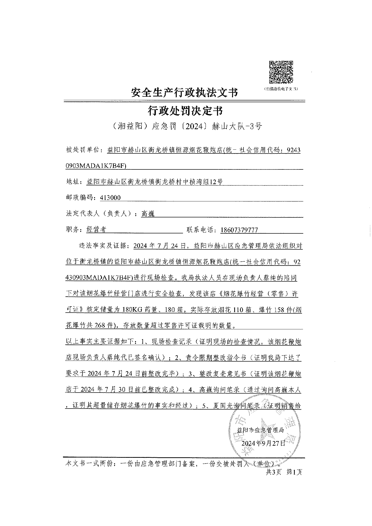 (湘益阳) 应急罚〔2024〕赫山大队-3号
