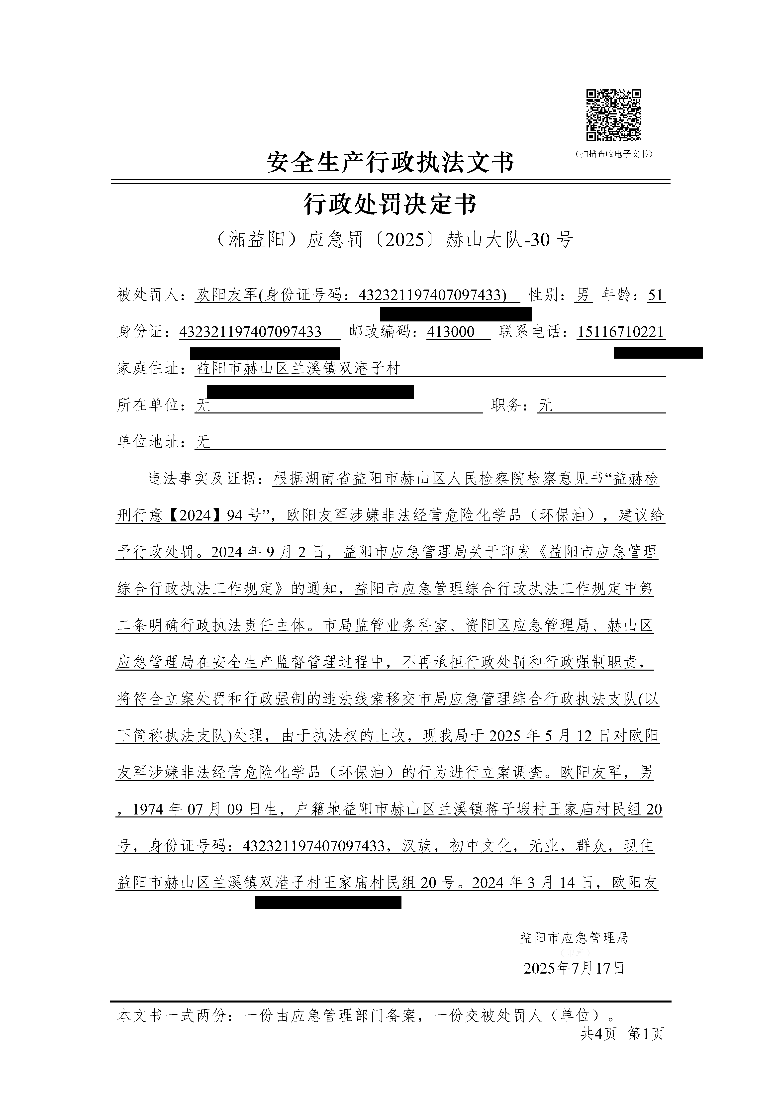 (湘益阳)应急罚〔2025〕赫山大队-30 号