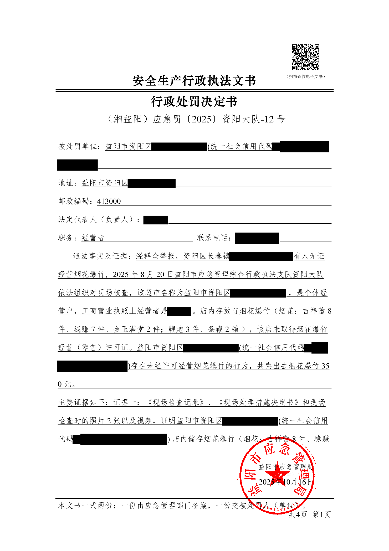 (湘益阳)应急罚〔2025〕资阳大队-12 号