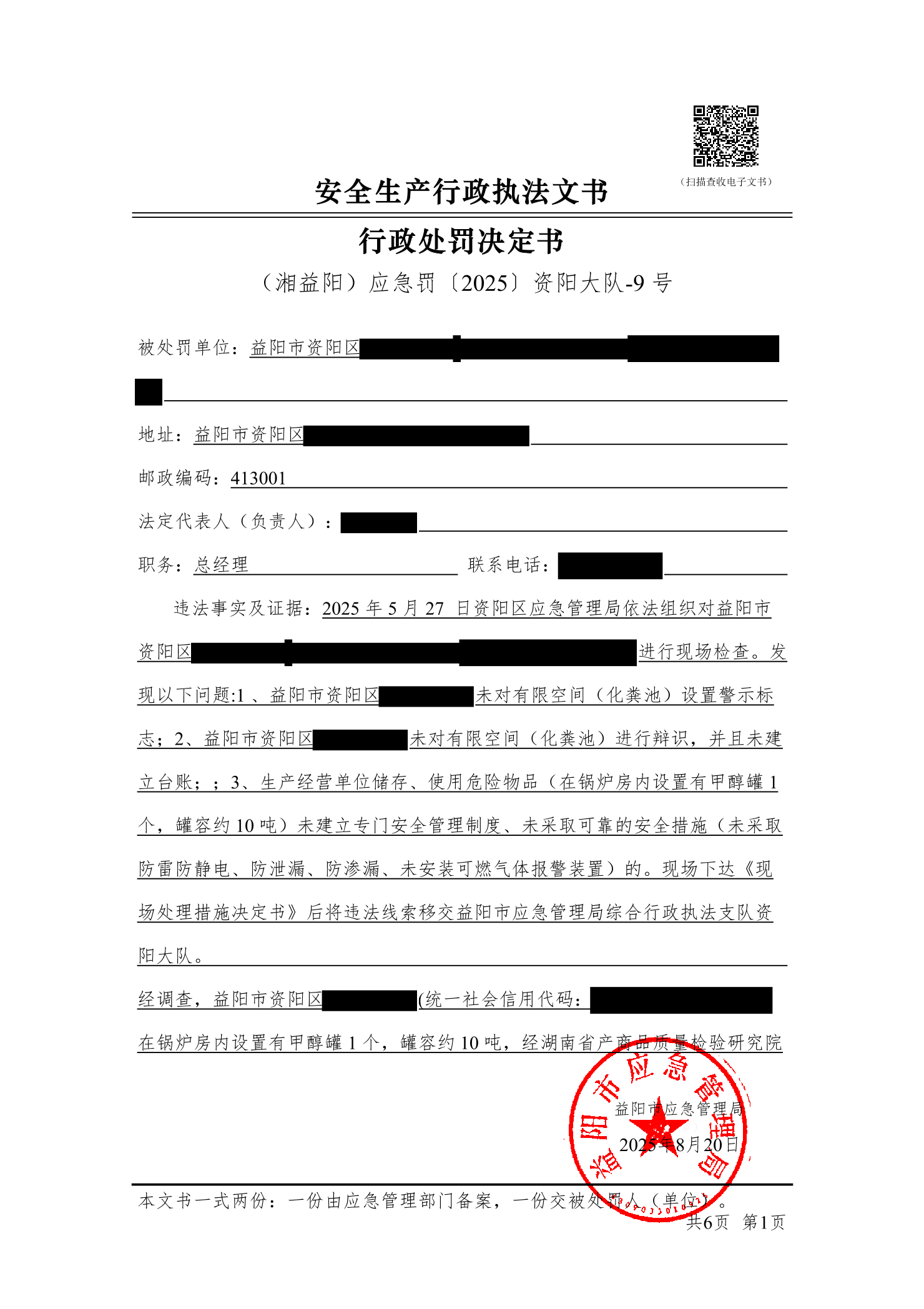(湘益阳)应急罚〔2025〕资阳大队-9 号
