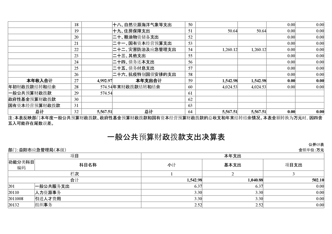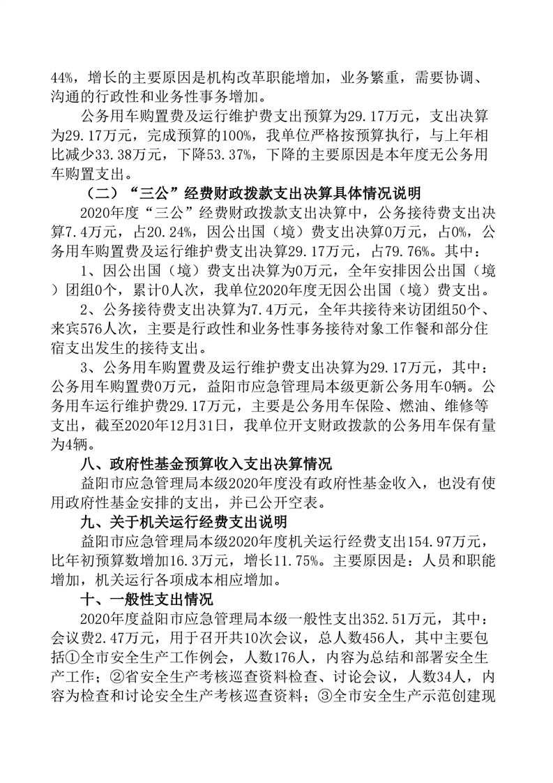 益阳市应急管理局本级_2020年度部门决算公开说明