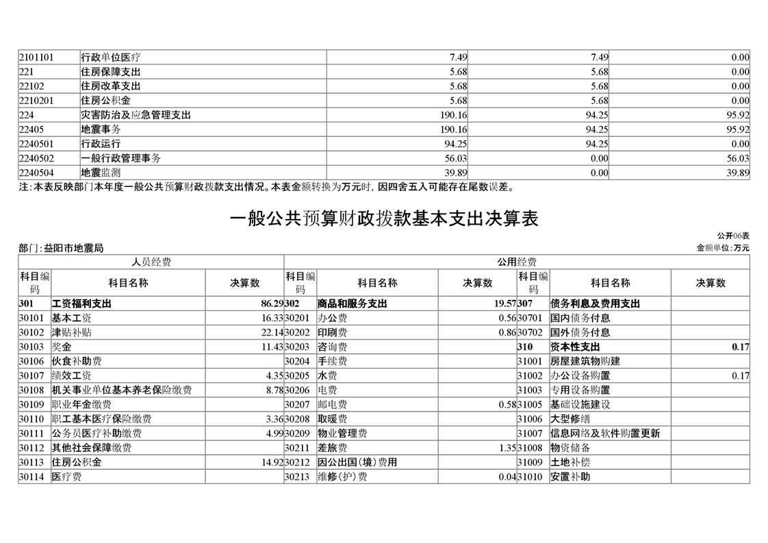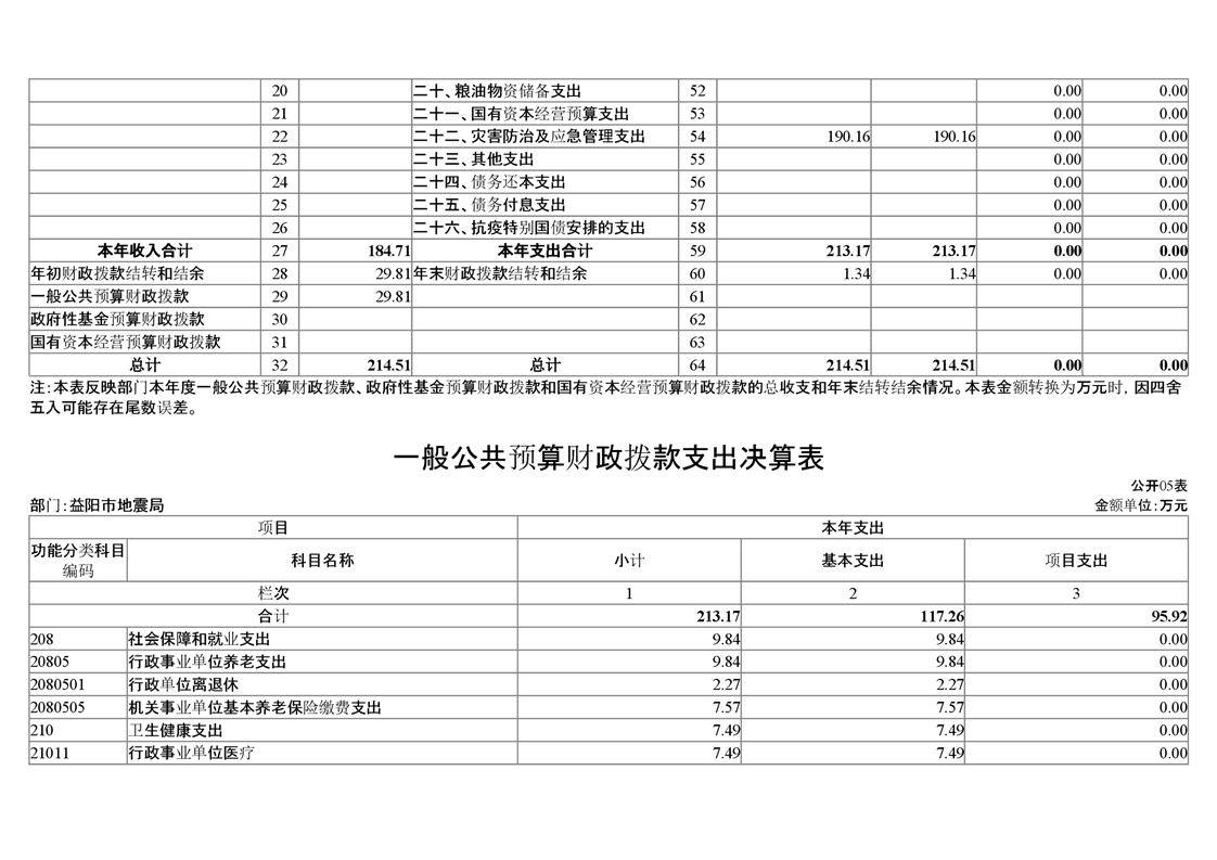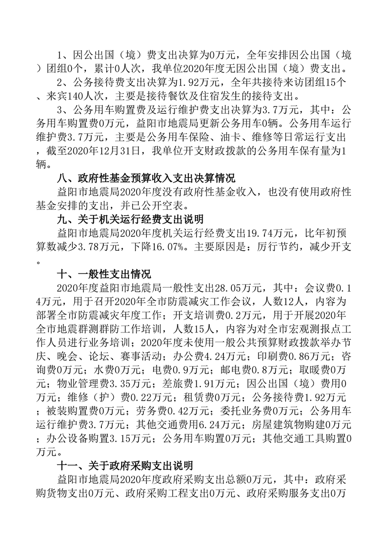 益阳市地震局_2020年度部门决算公开说明
