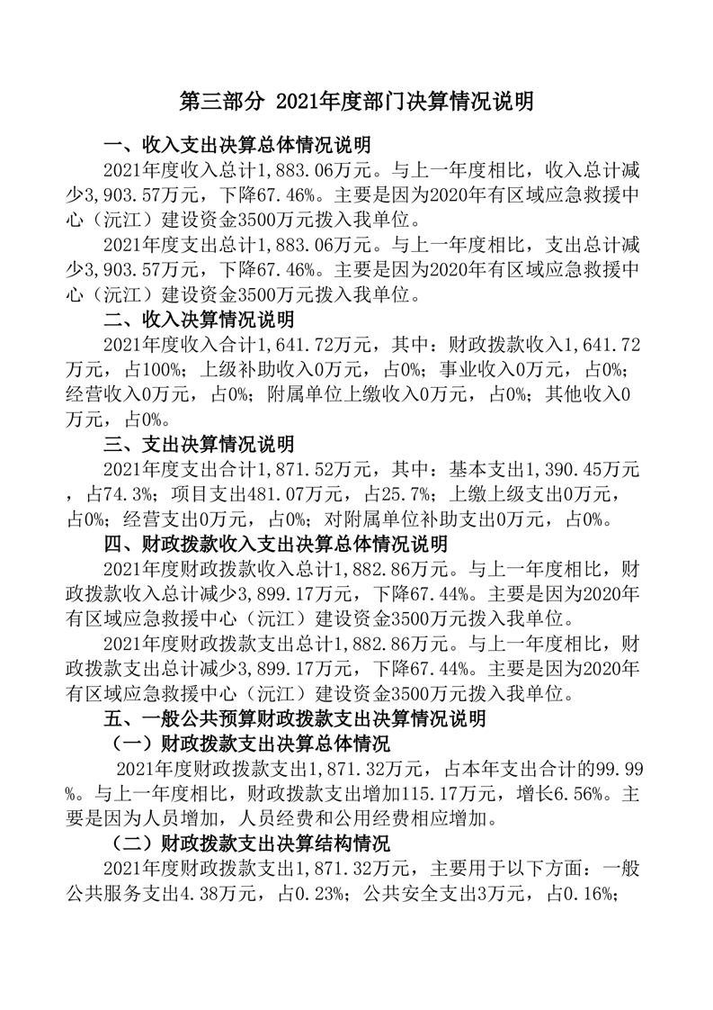 益阳市应急管理局_2021年部门决算公开说明