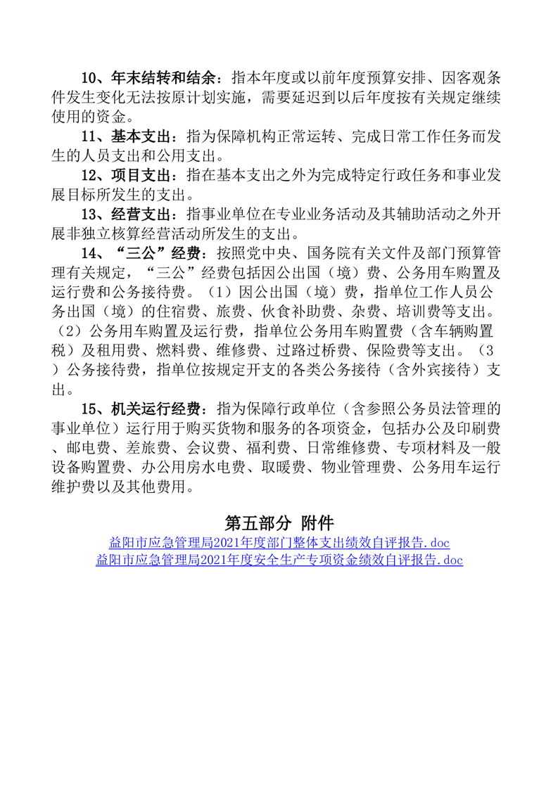 益阳市应急管理局2021年度部门整体支出绩效自评报告.doc