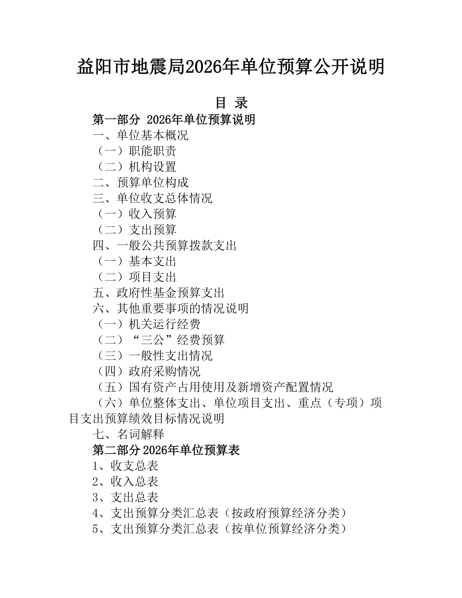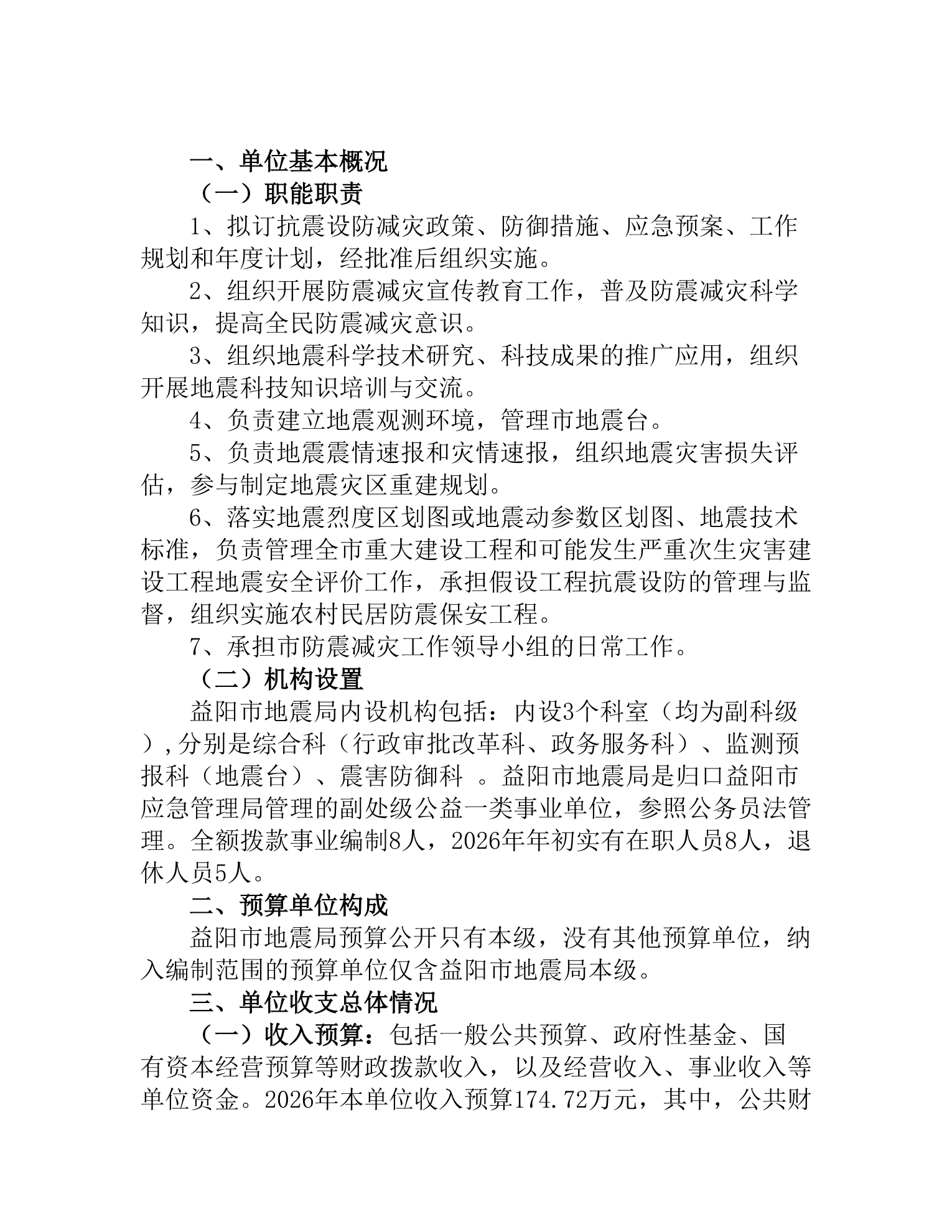 益阳市地震局2026年单位预算公开说明