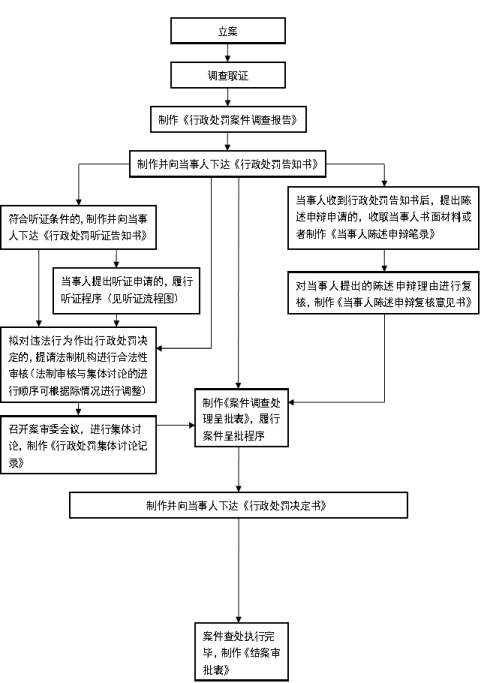 立案——调查取证——必要时进行听证——作出处罚决定——执行。