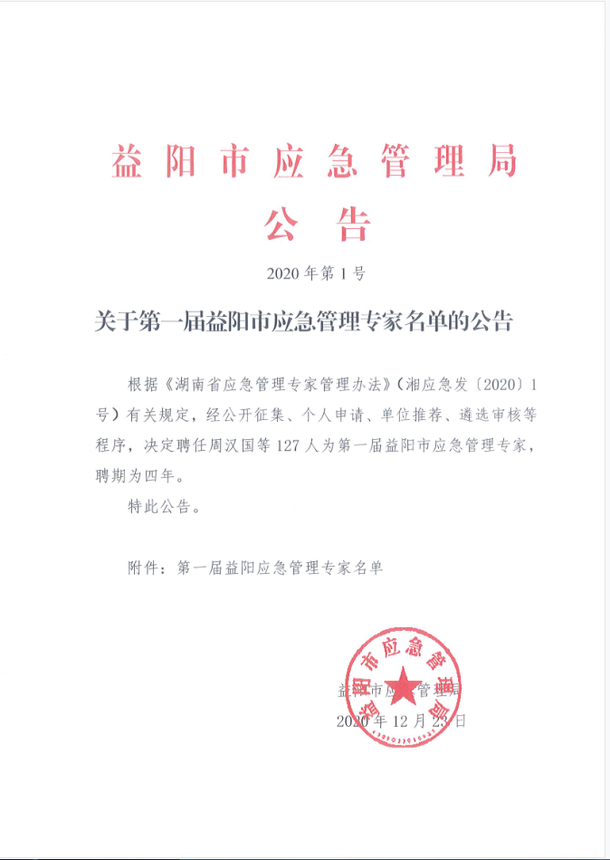 关于第一届益阳市应急管理专家名单的公告