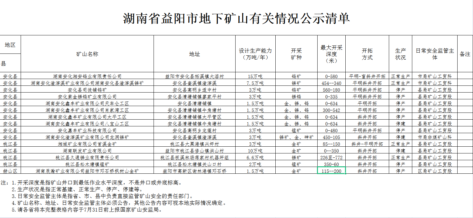 湖南省益阳市地下矿山有关情况公示清单