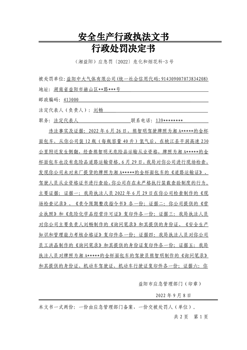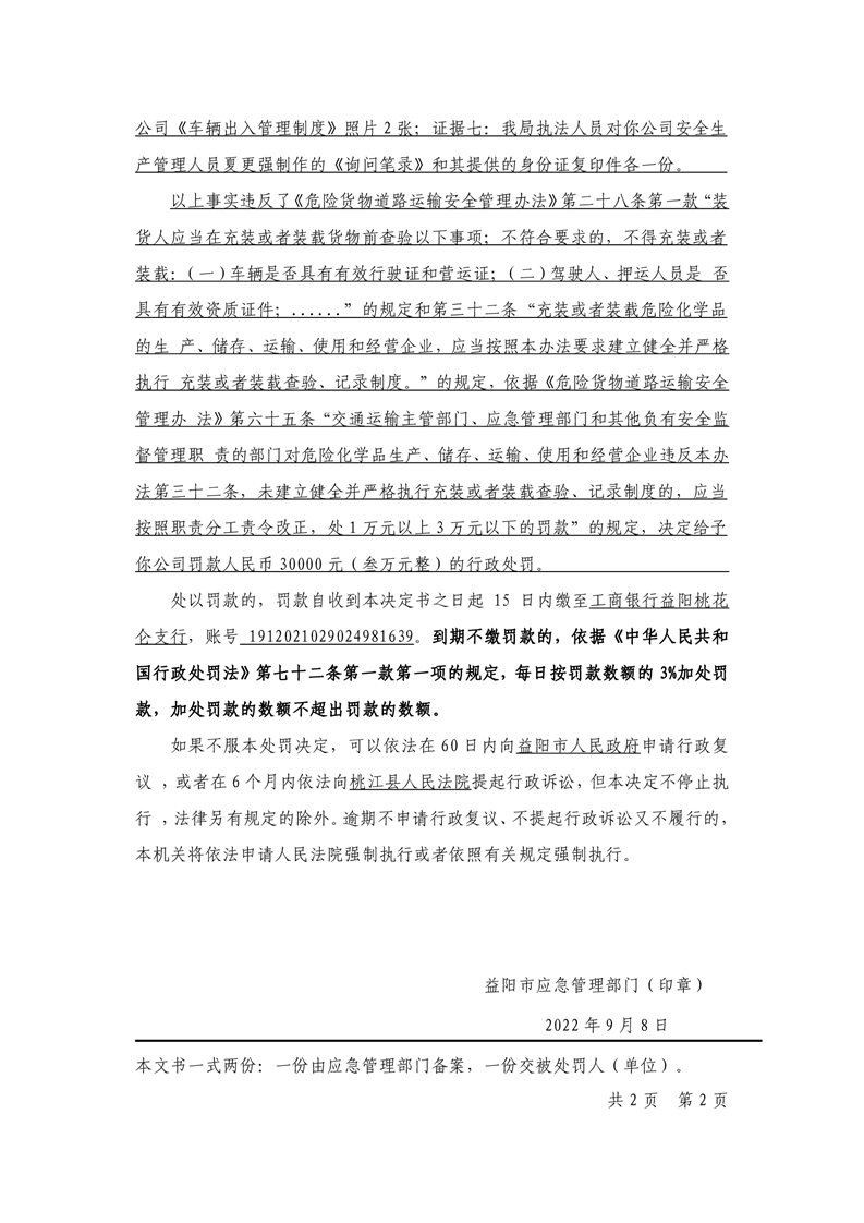 益阳市应急管理局行政处罚决定书公示 行政处罚决定书(湘益阳)应急罚〔2022〕危化和烟花科-3号