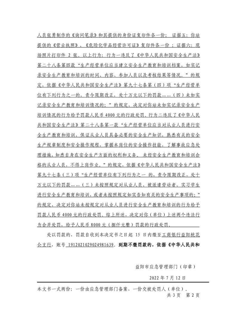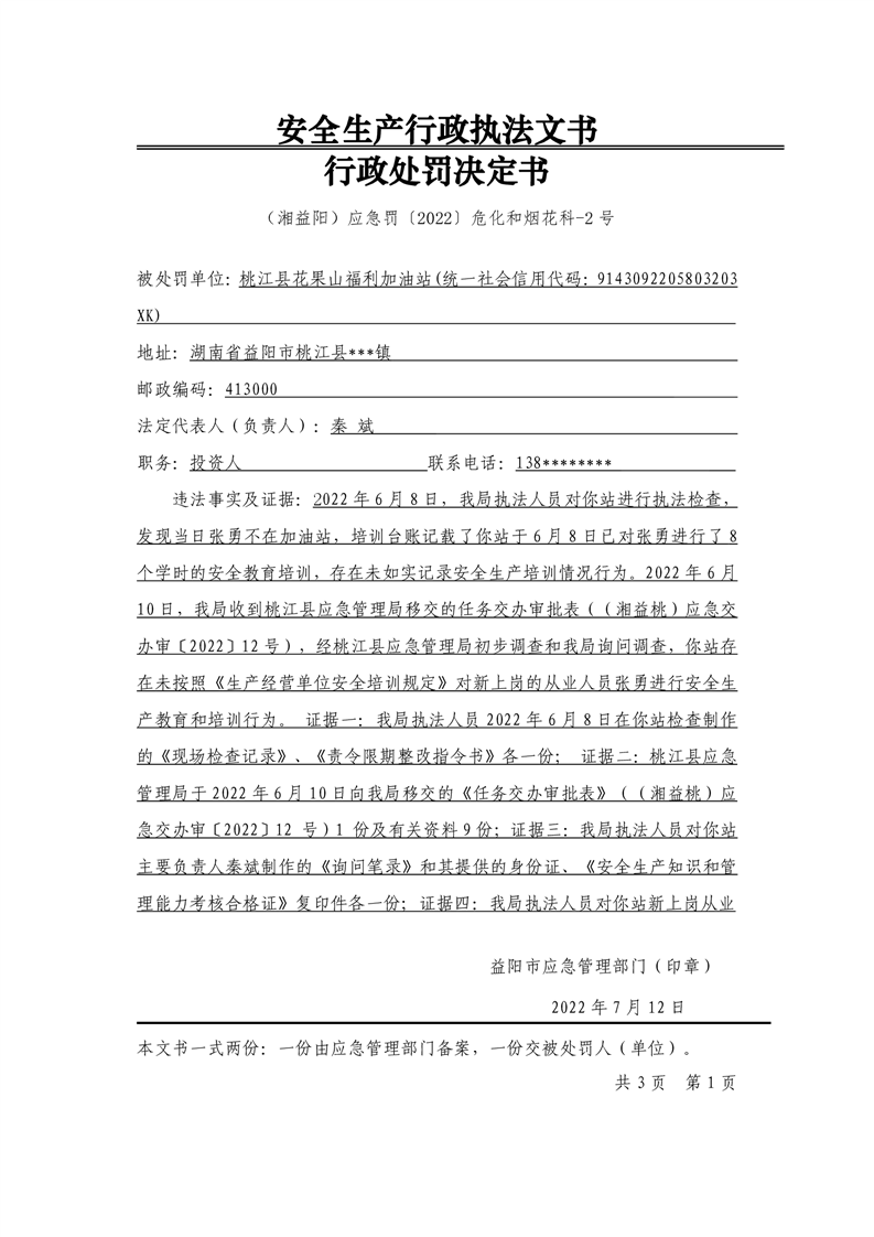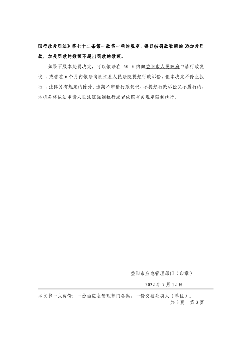 益阳市应急管理局行政处罚决定书公示 行政处罚决定书(湘益阳)应急罚〔2022〕危化和烟花科-2号