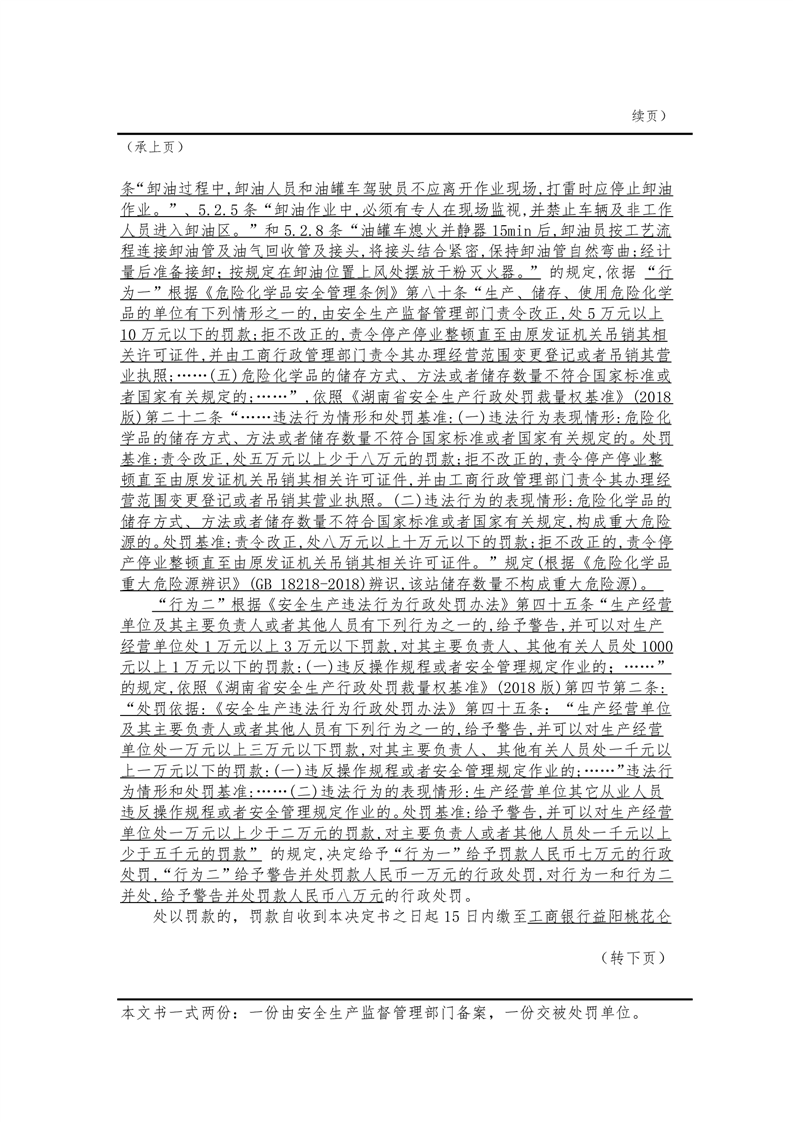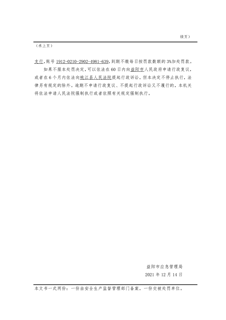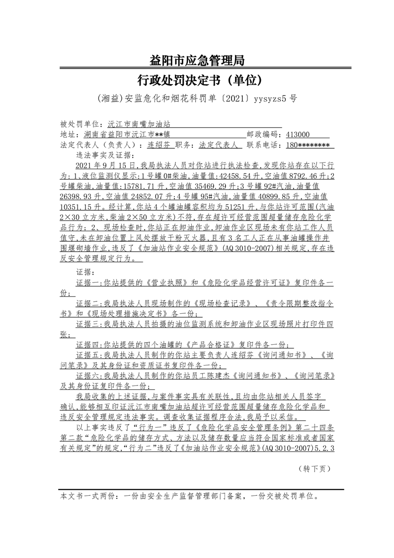行政处罚决定书(湘益)安监危化和烟花科罚单〔2021〕yysyzs5号