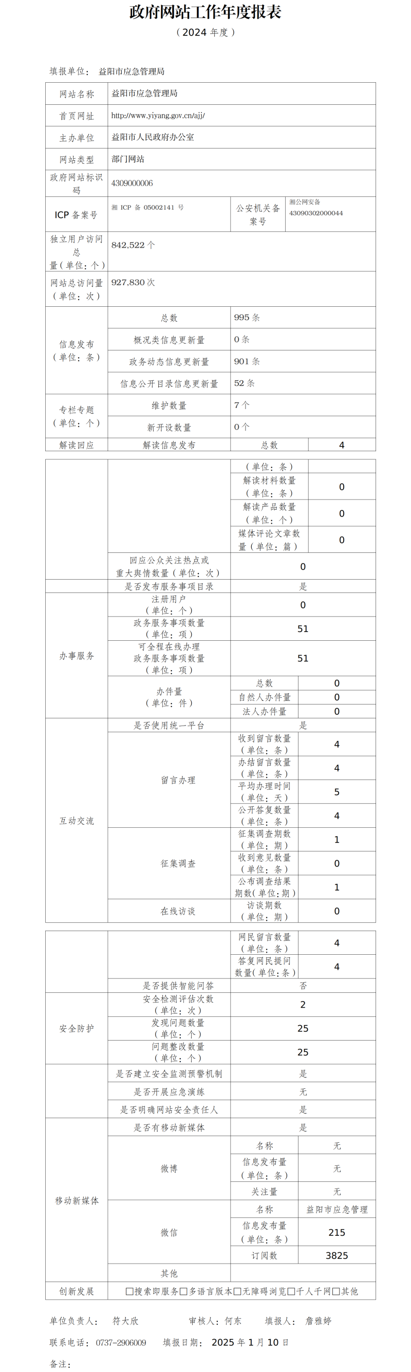市应急管理局政府网站工作年度报表 (2024年度)