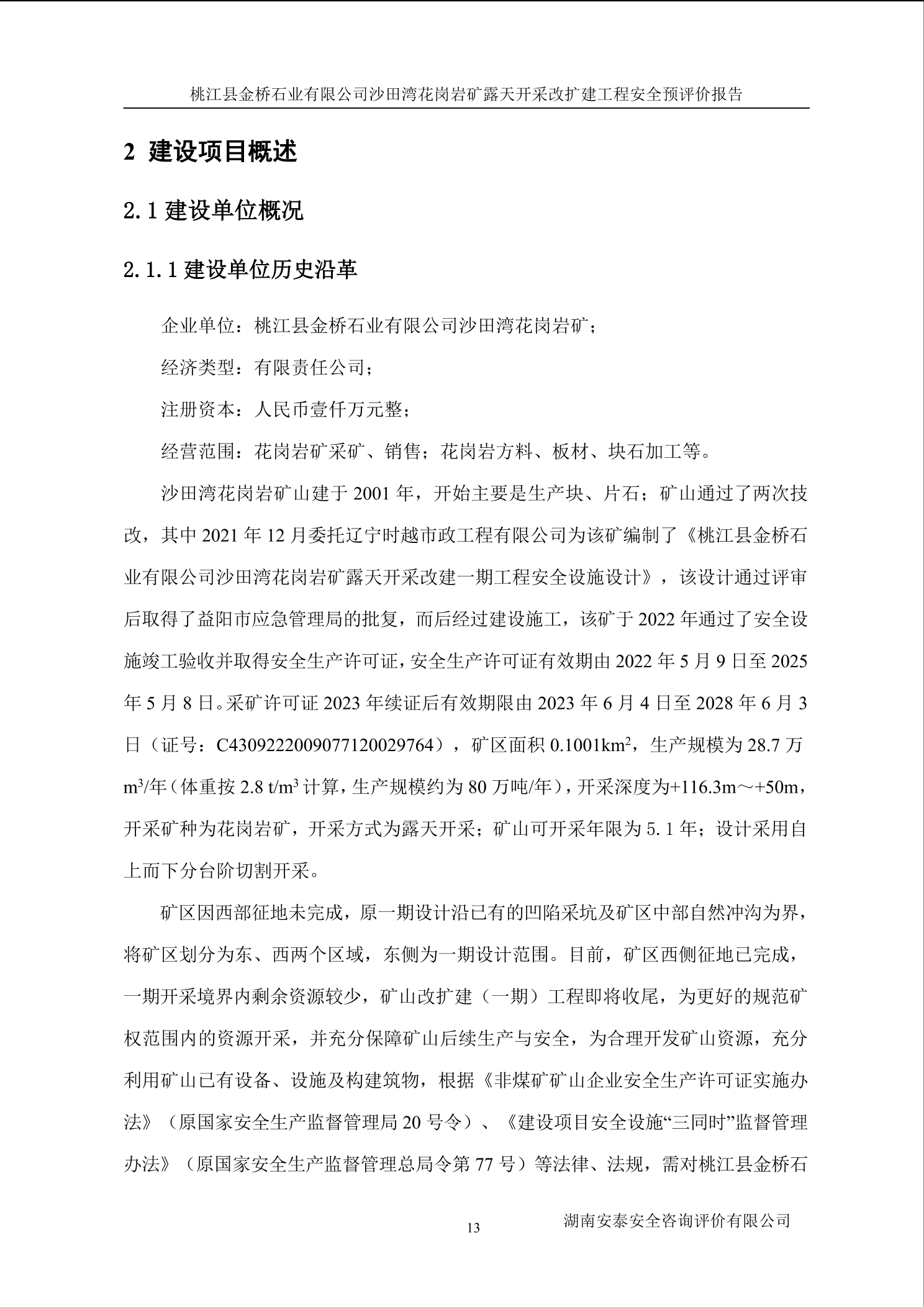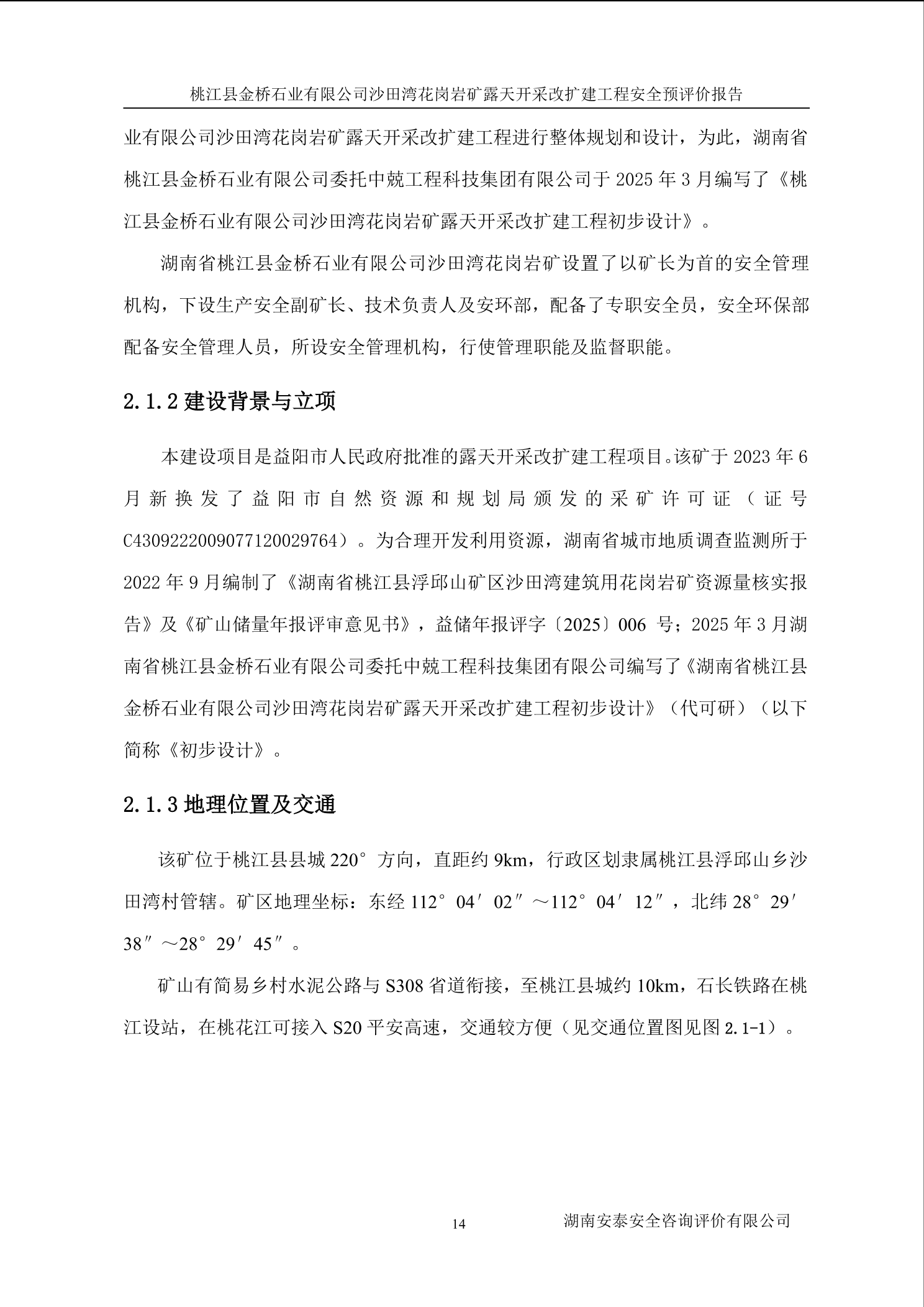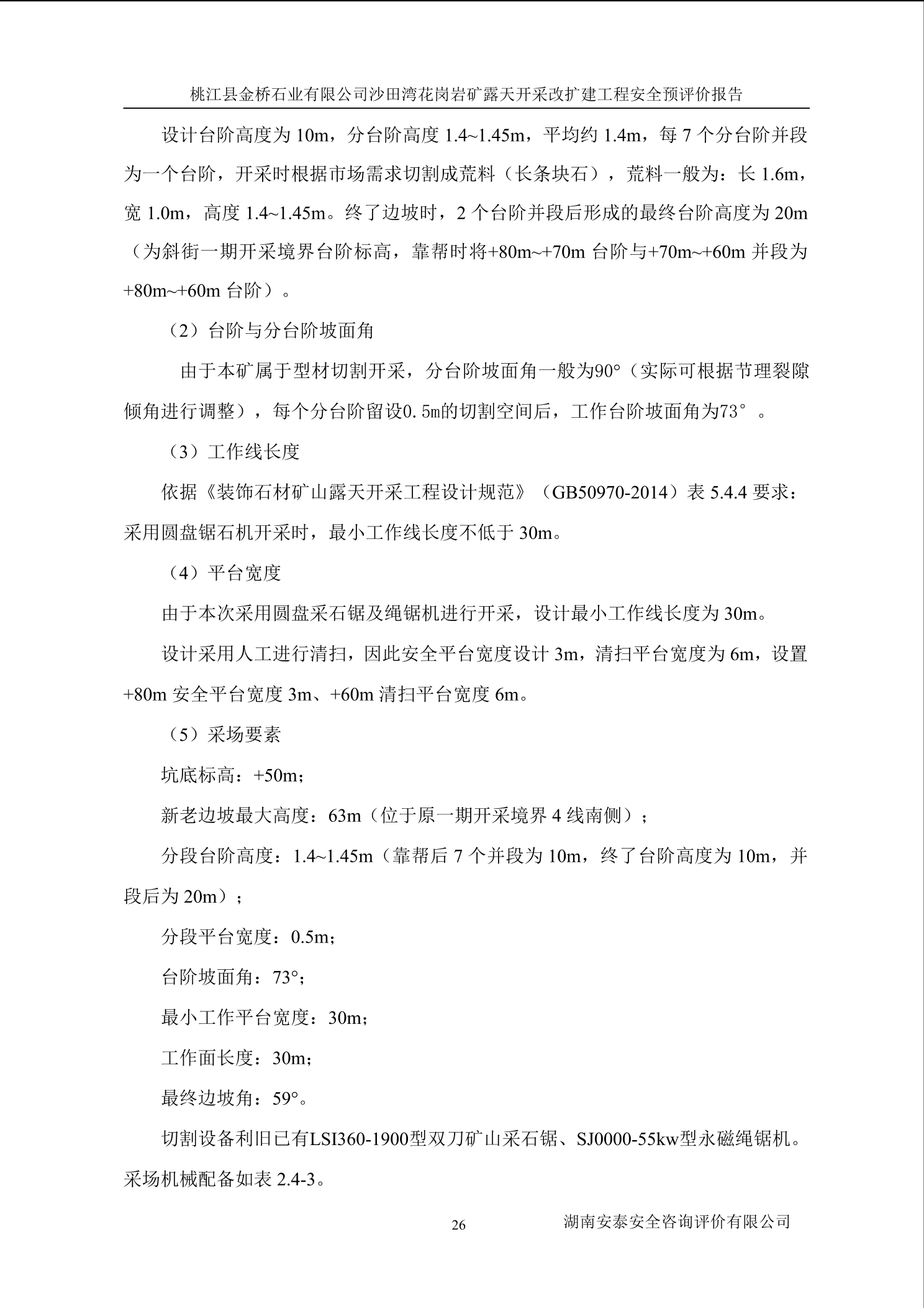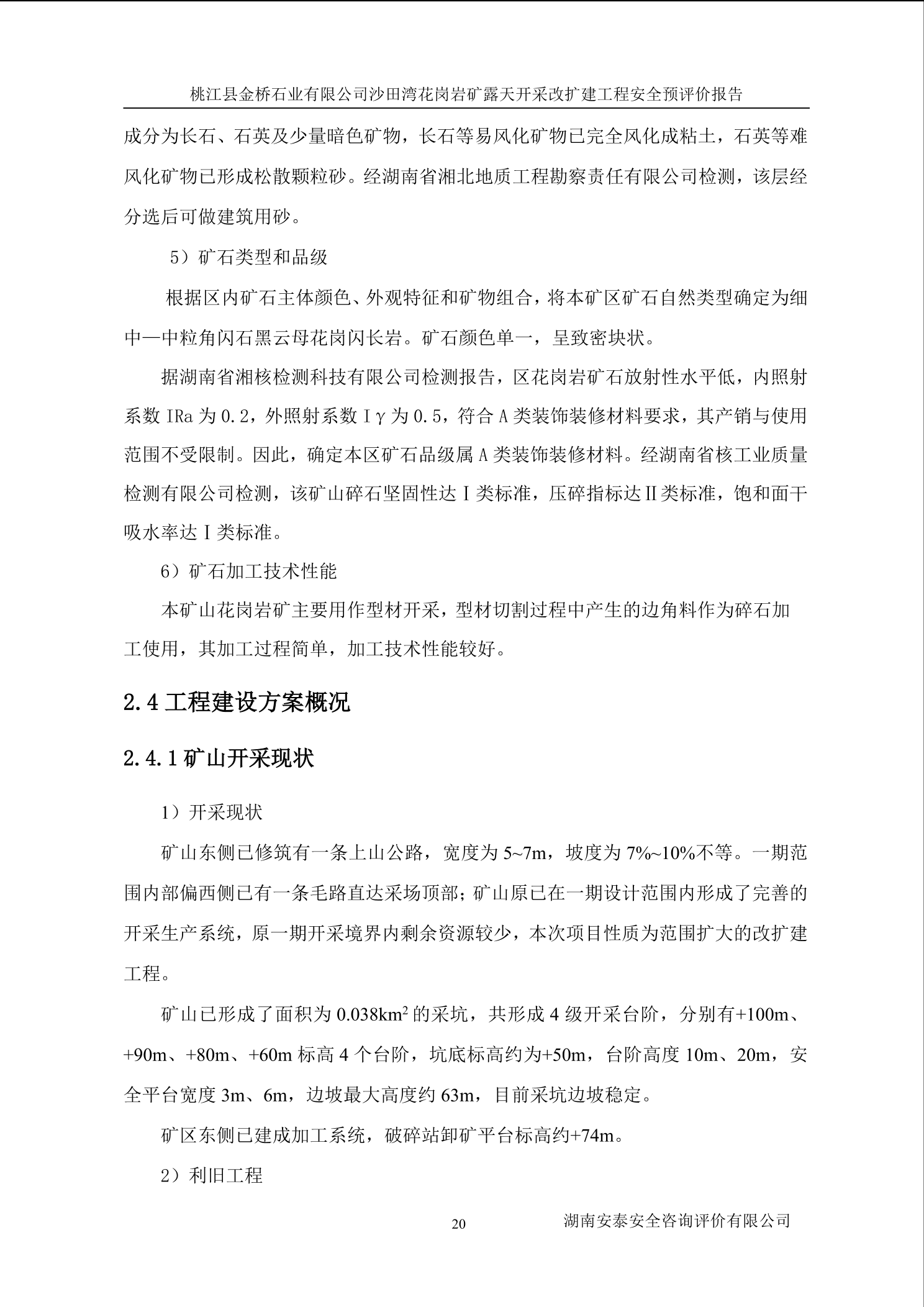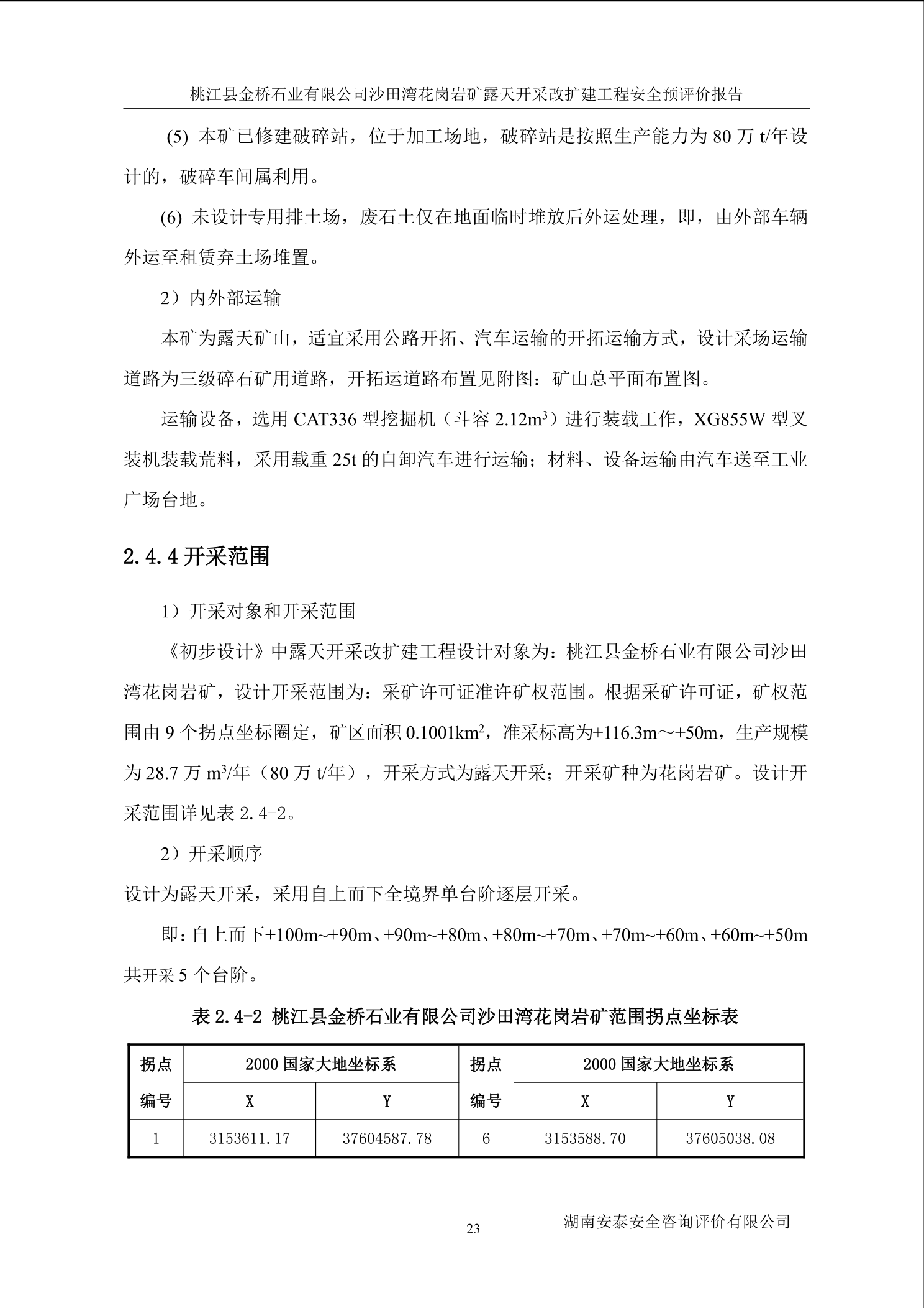 桃江县金桥石业有限公司沙田湾花岗岩矿改扩建工程安全预评价报告
