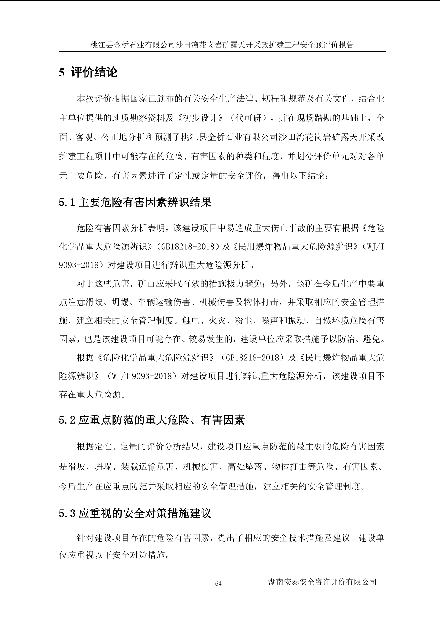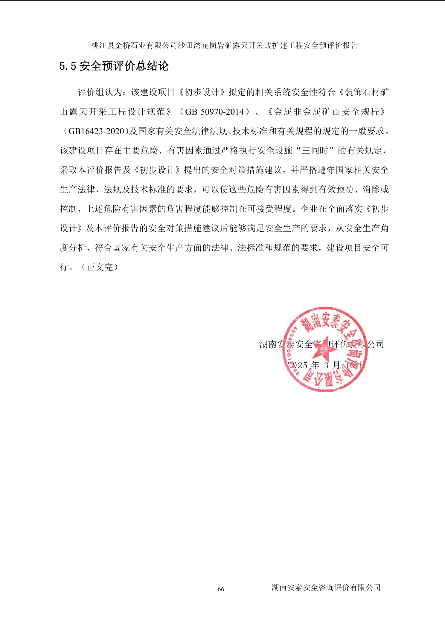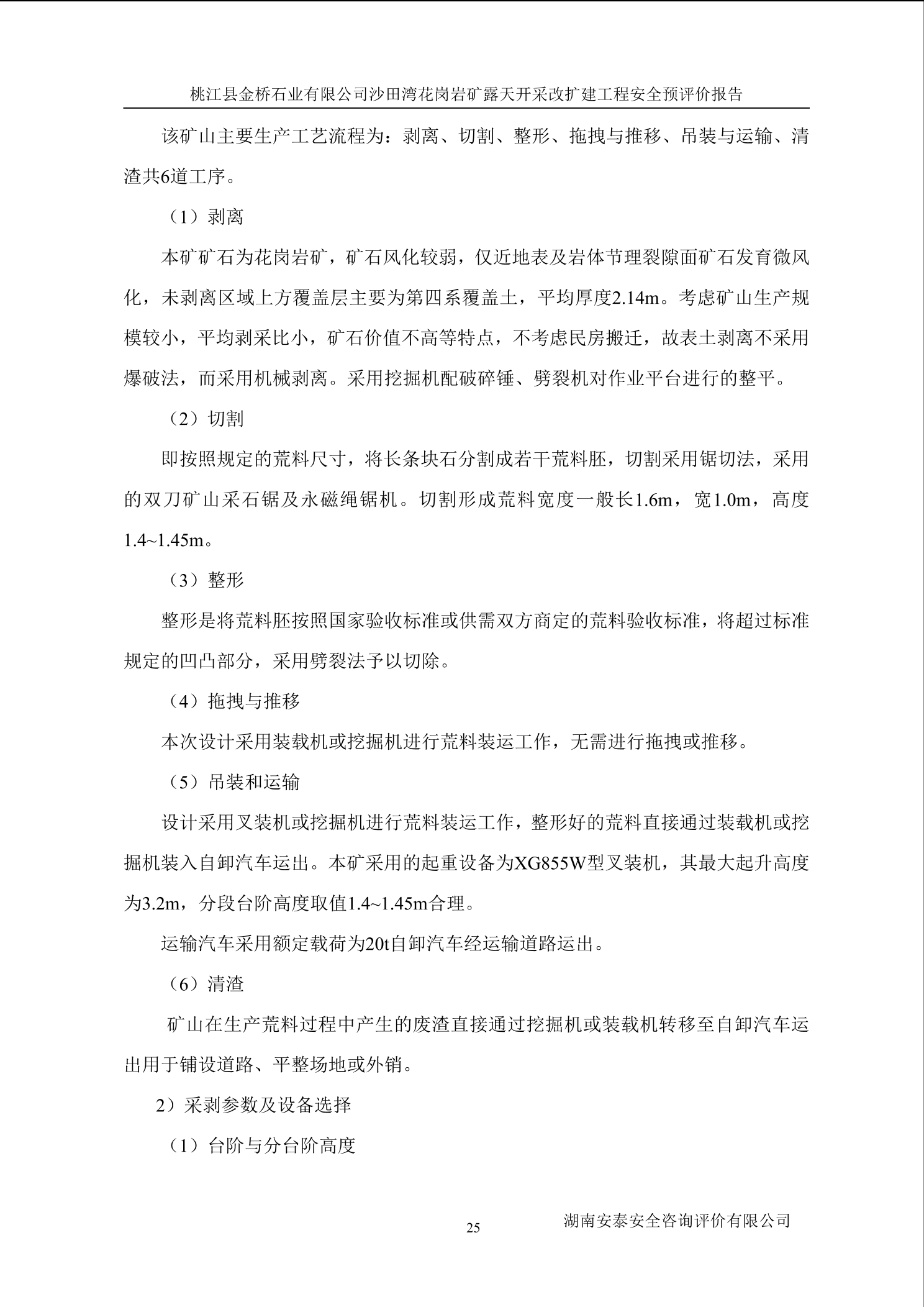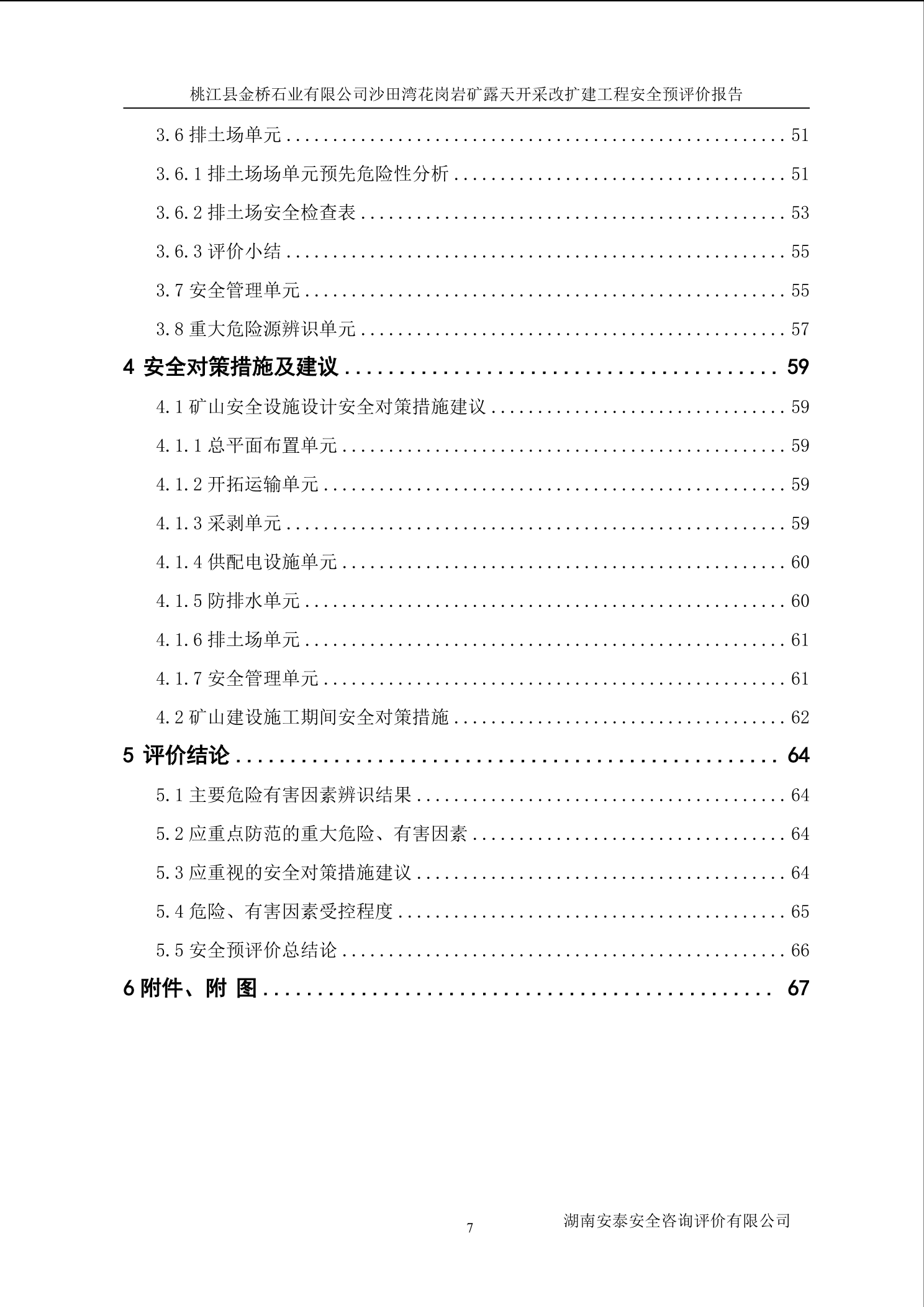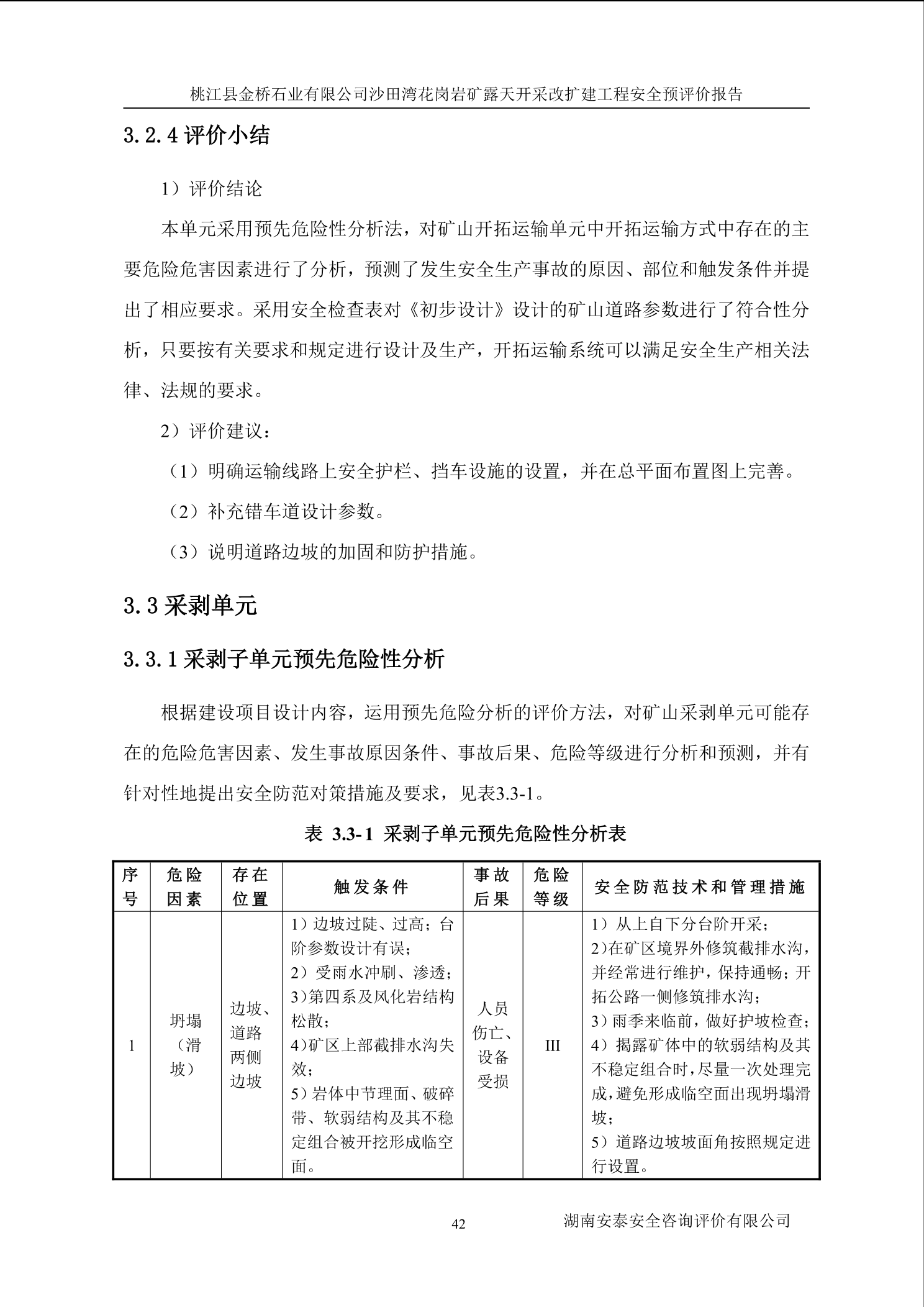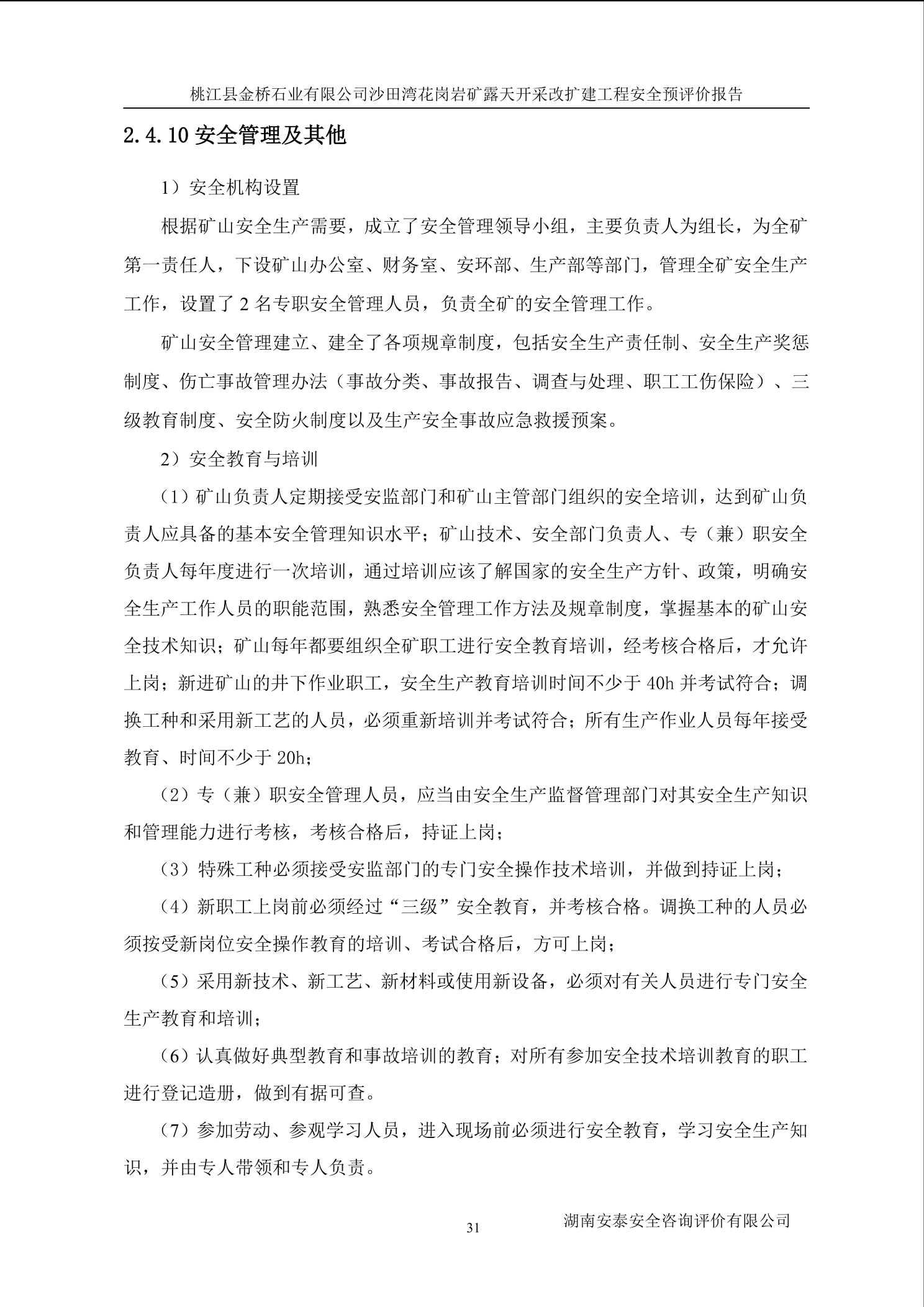 桃江县金桥石业有限公司沙田湾花岗岩矿改扩建工程安全预评价报告