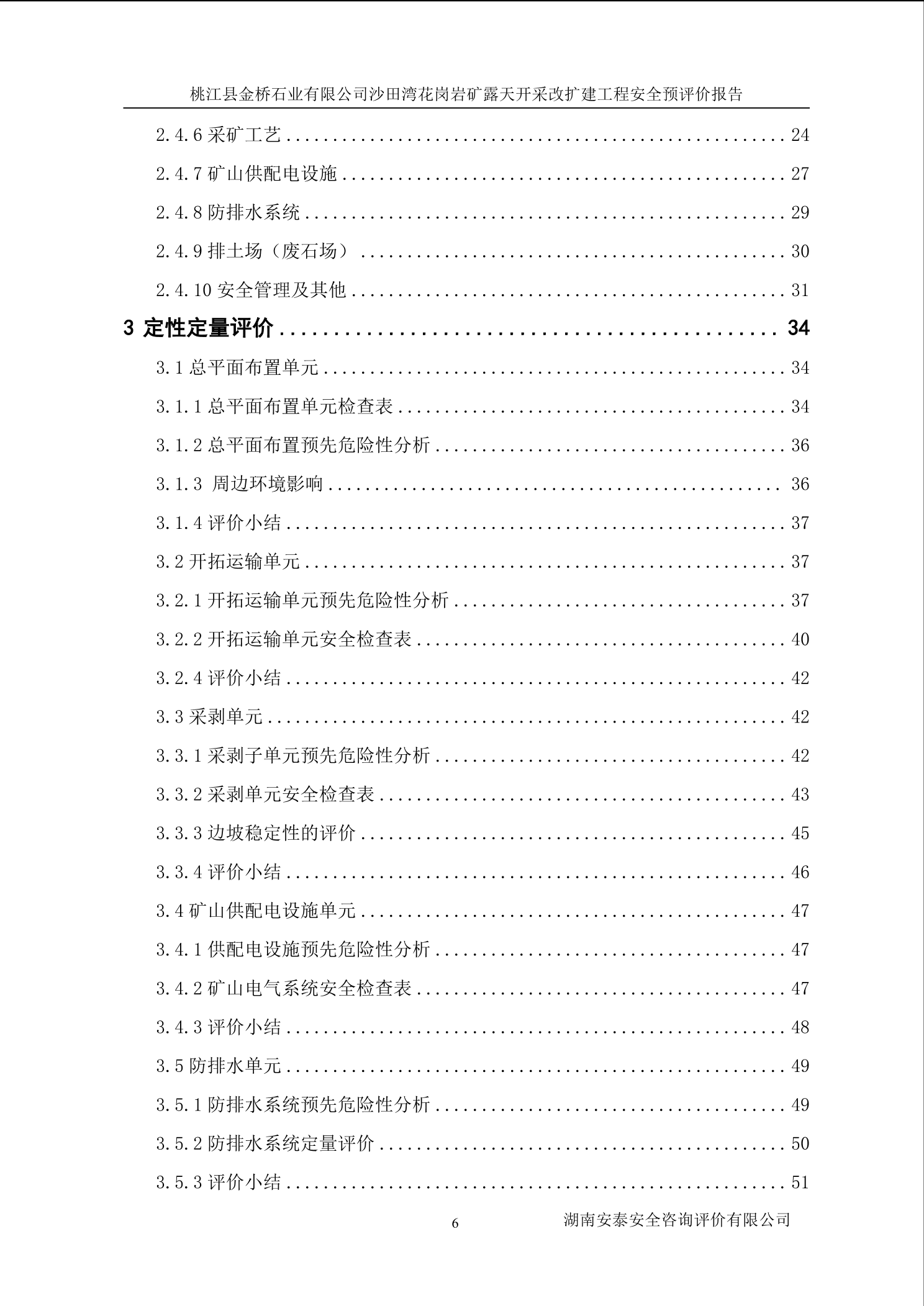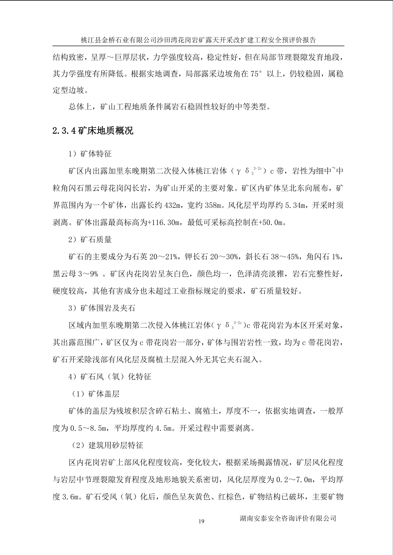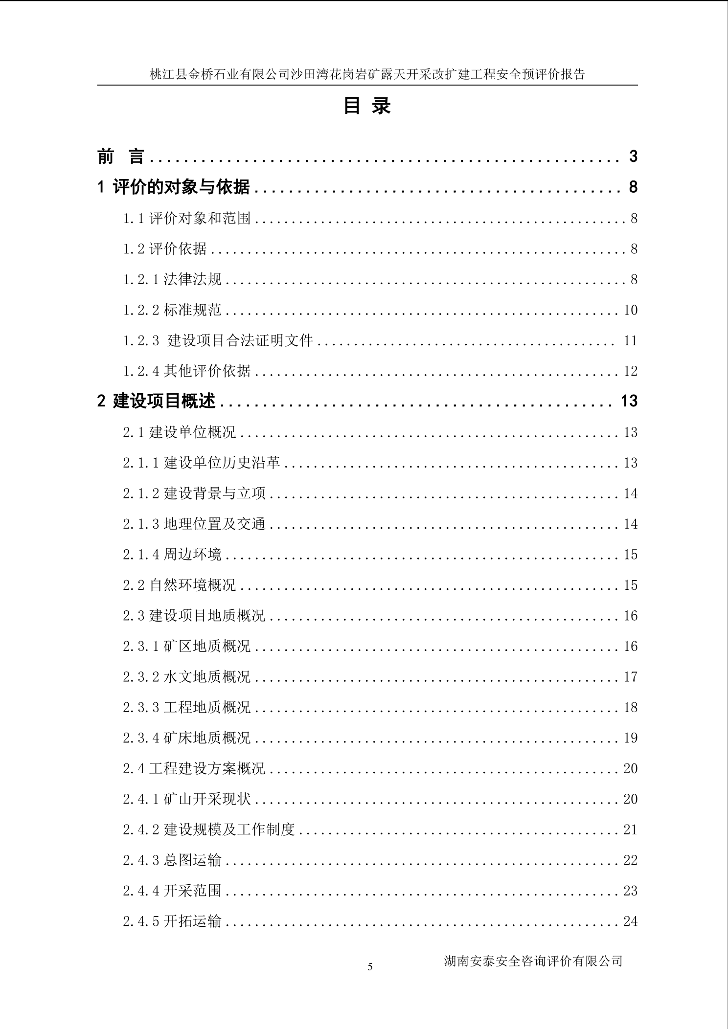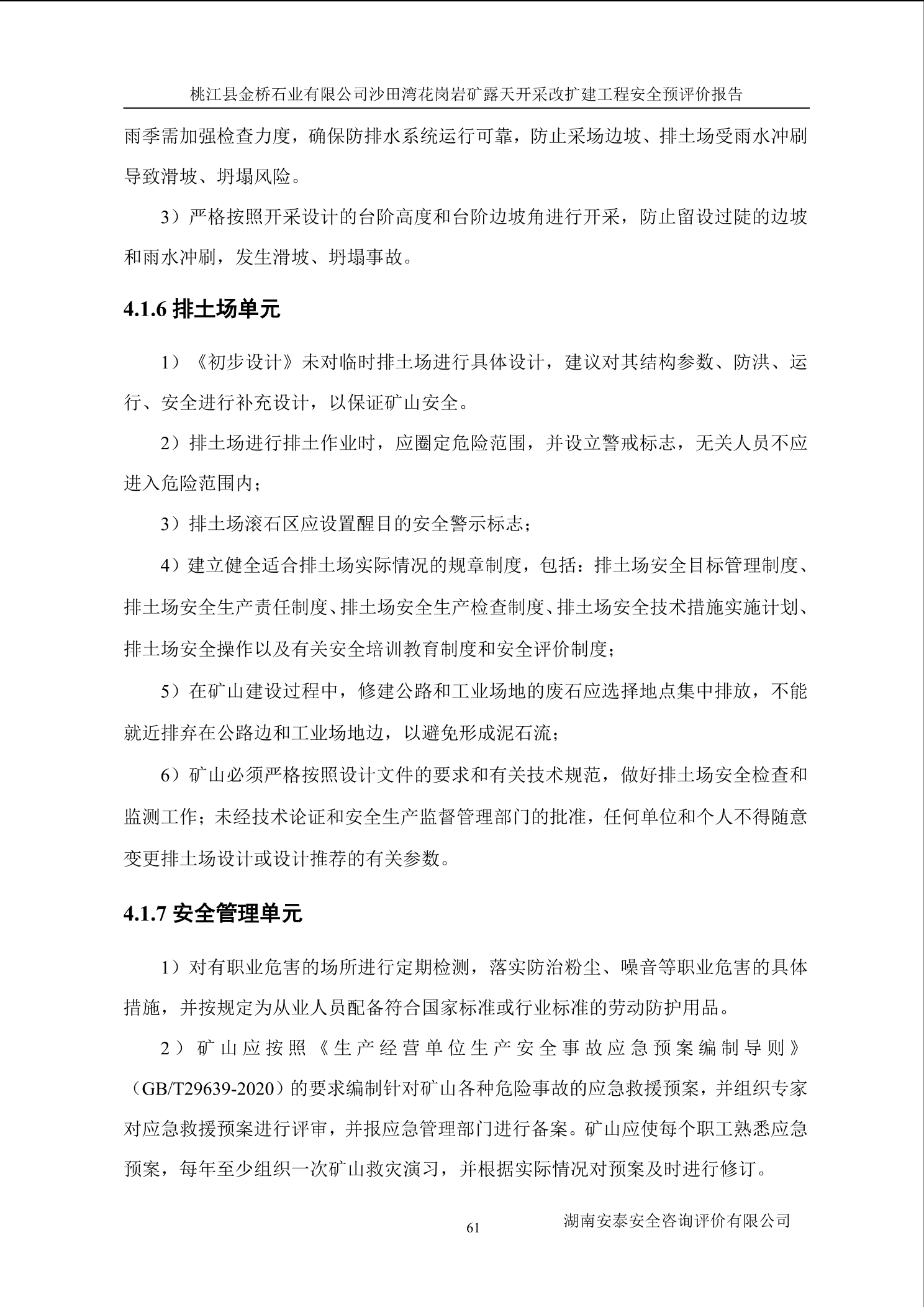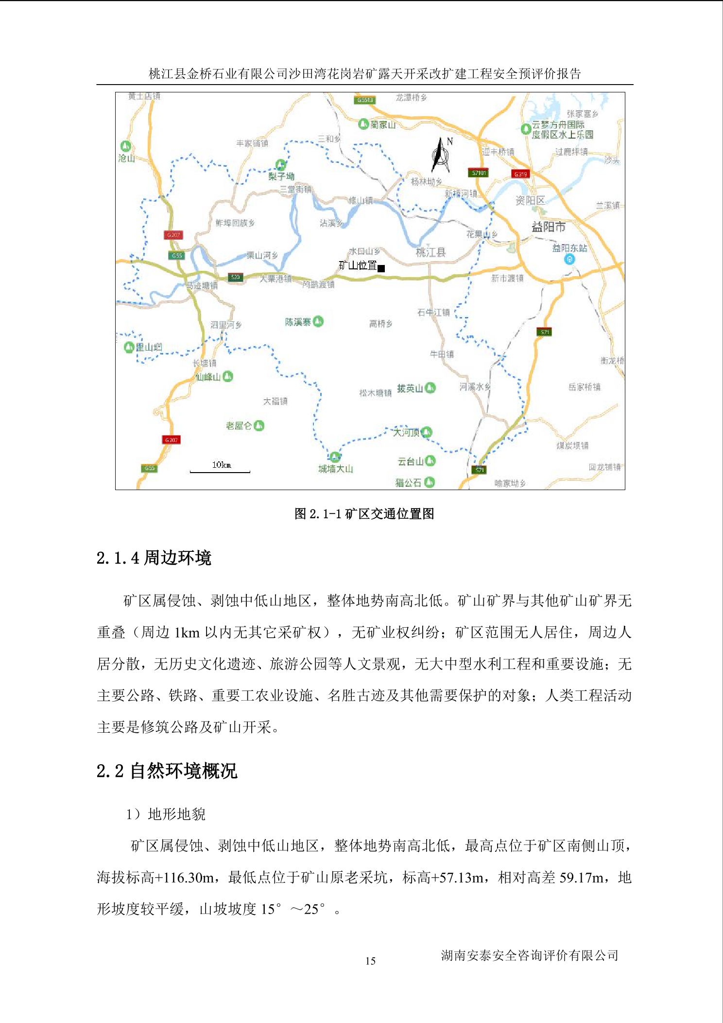 桃江县金桥石业有限公司沙田湾花岗岩矿改扩建工程安全预评价报告