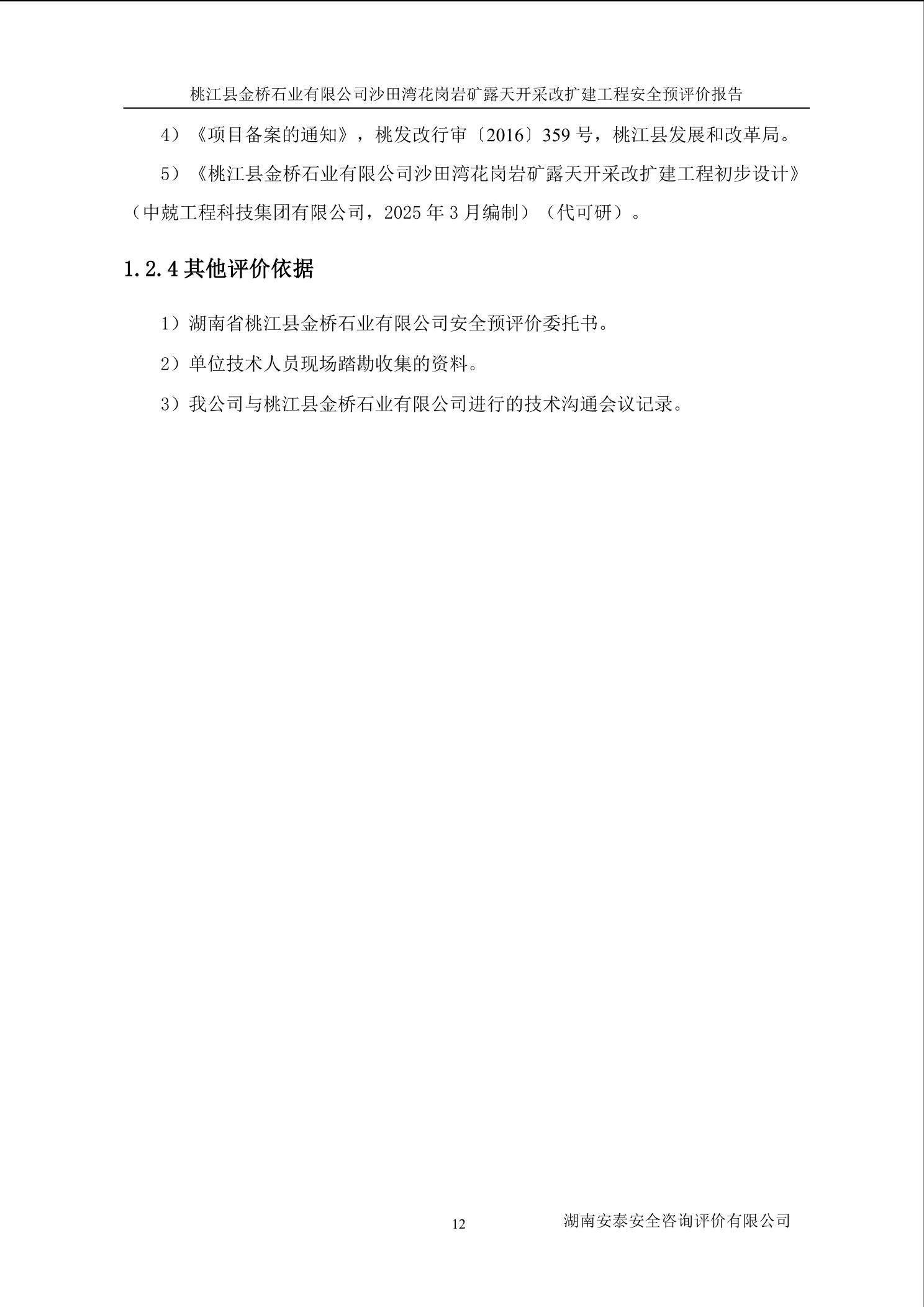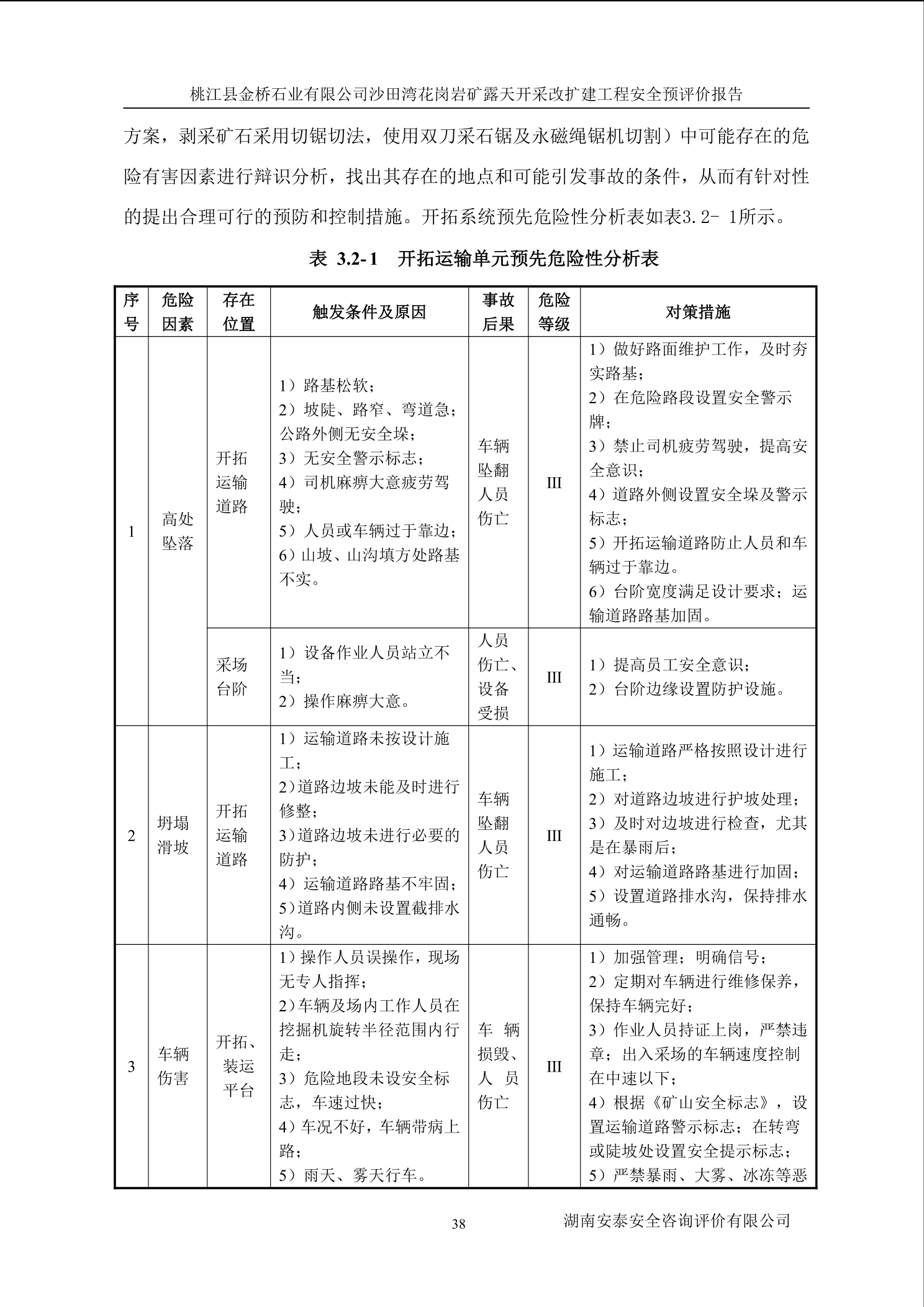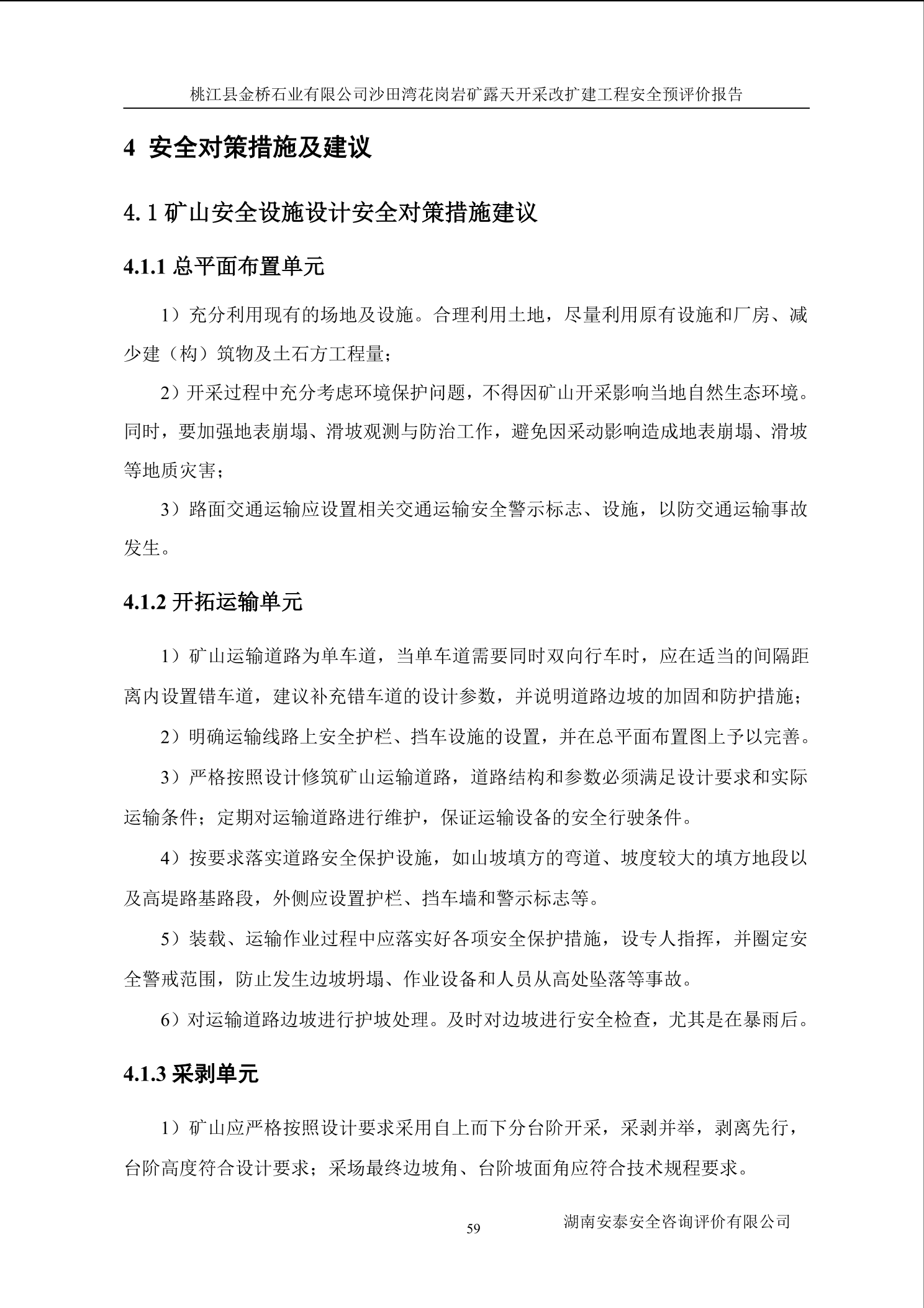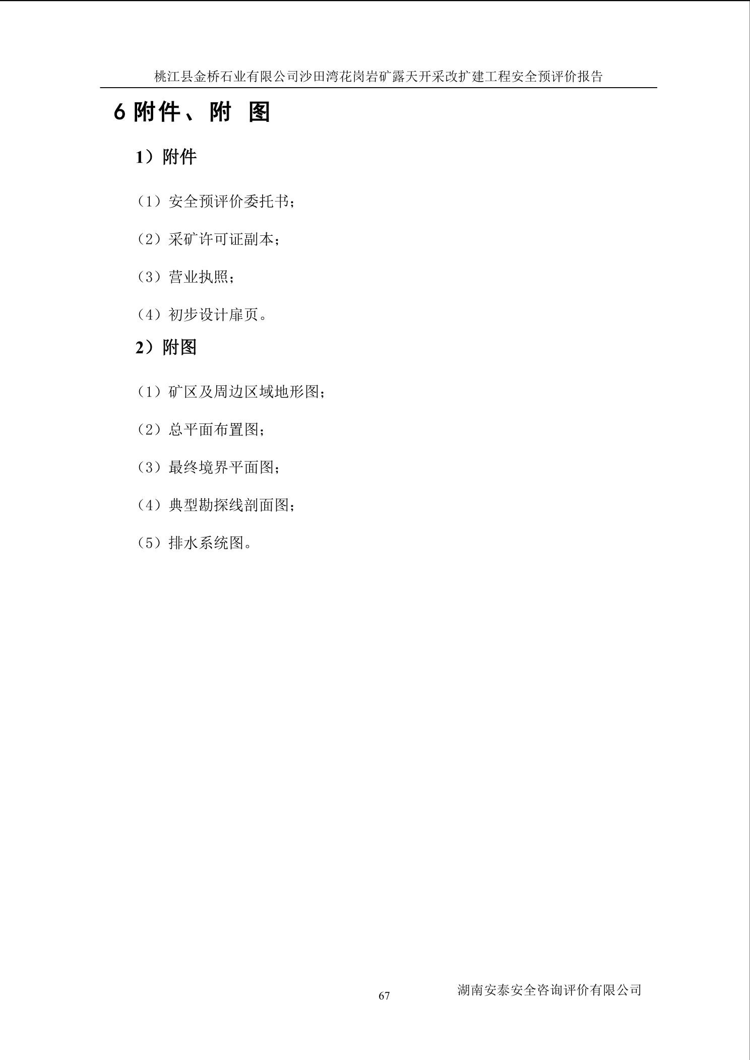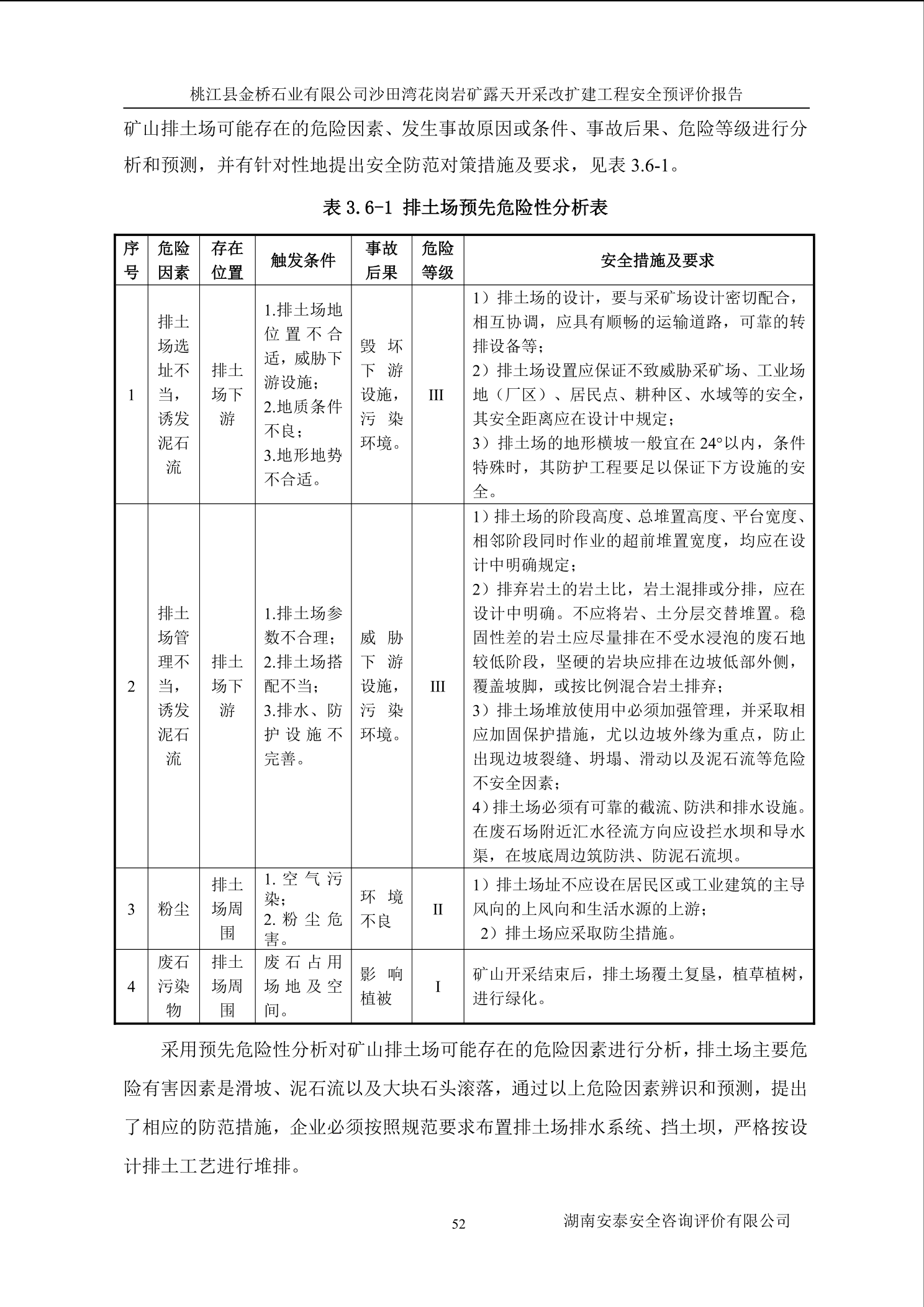桃江县金桥石业有限公司沙田湾花岗岩矿改扩建工程安全预评价报告