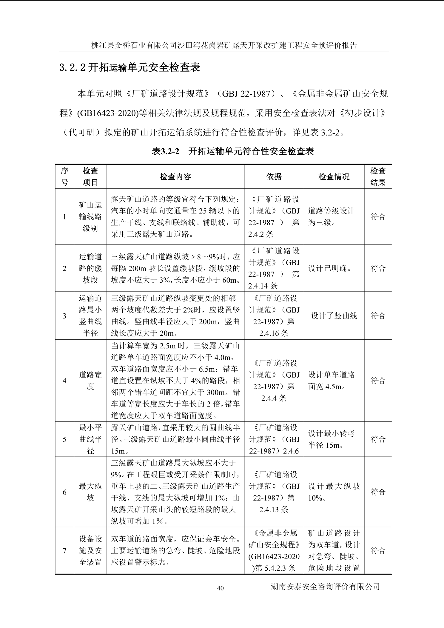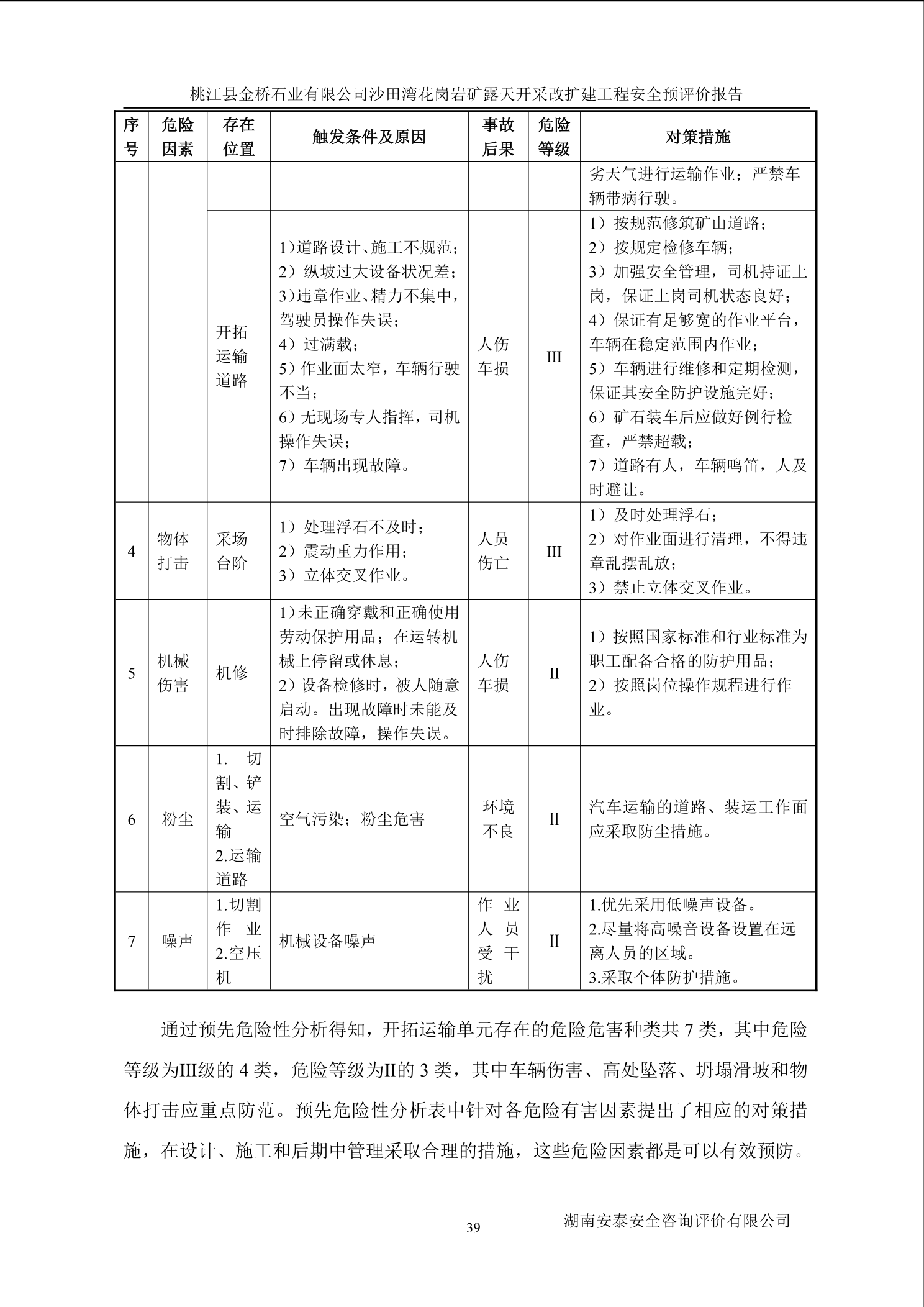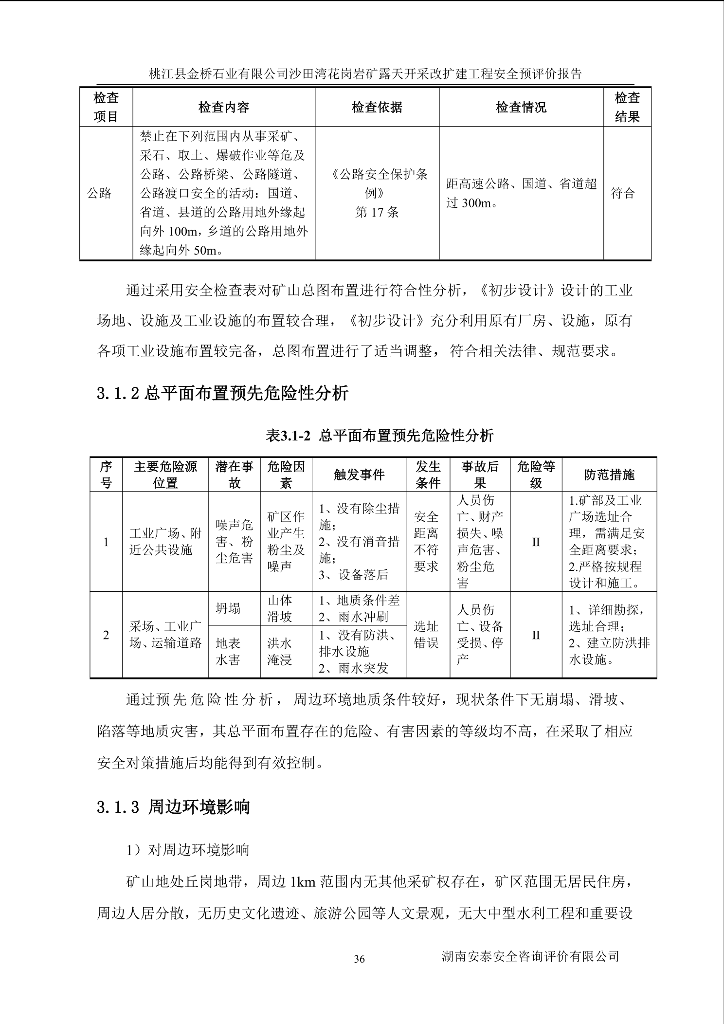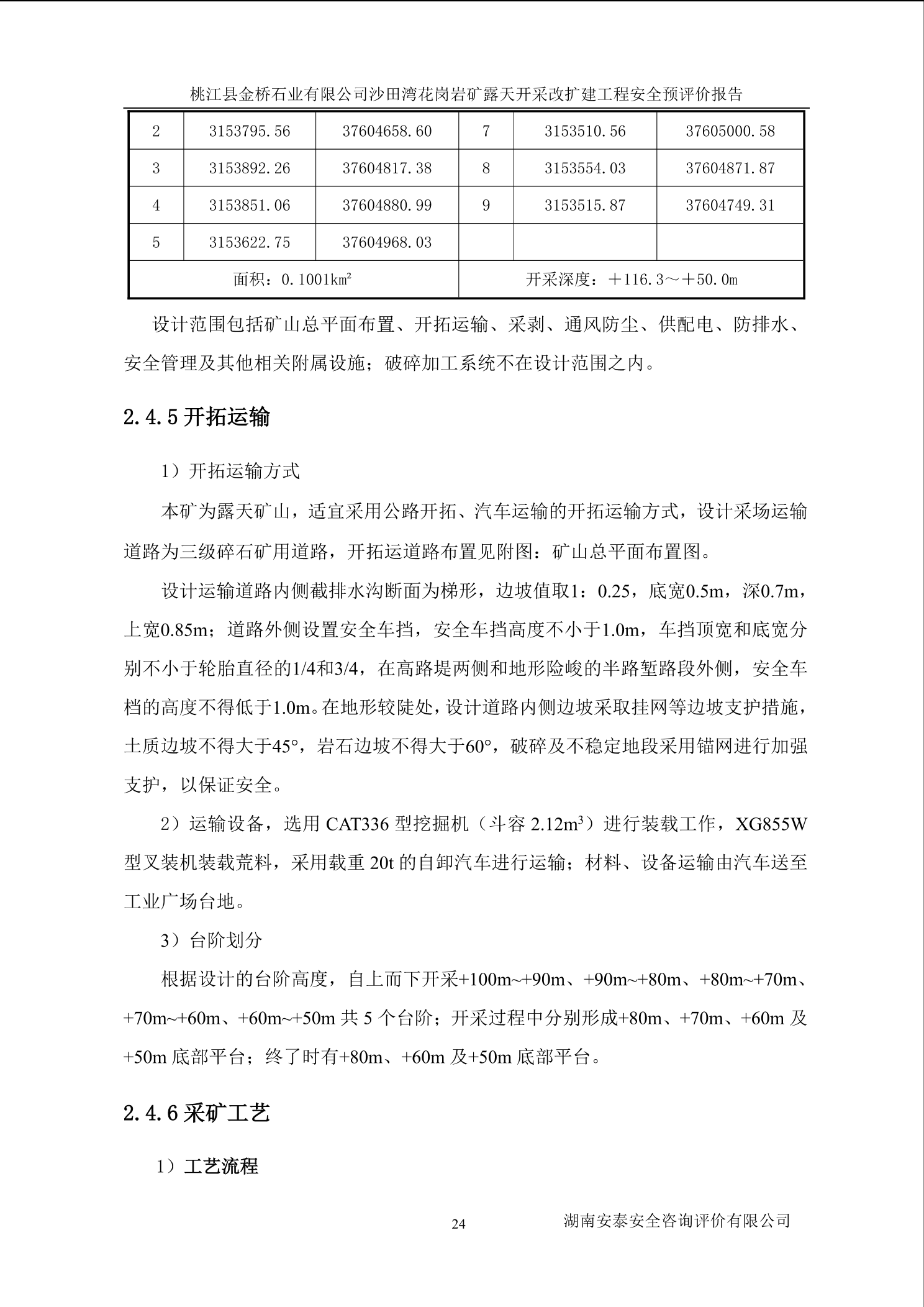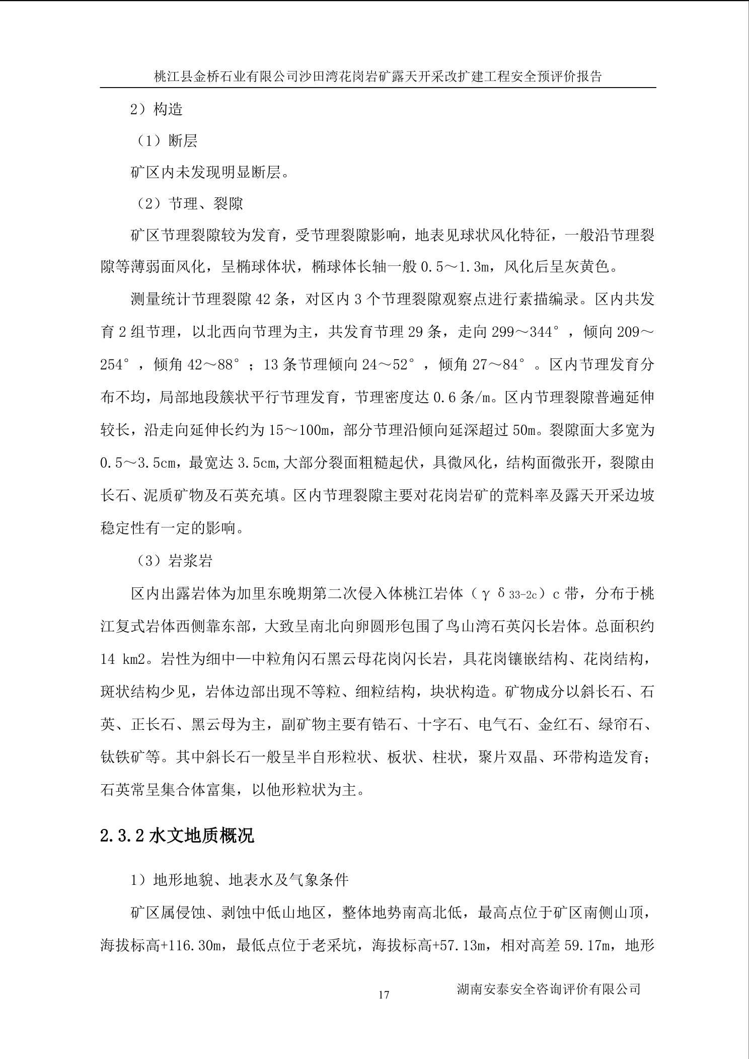 桃江县金桥石业有限公司沙田湾花岗岩矿改扩建工程安全预评价报告