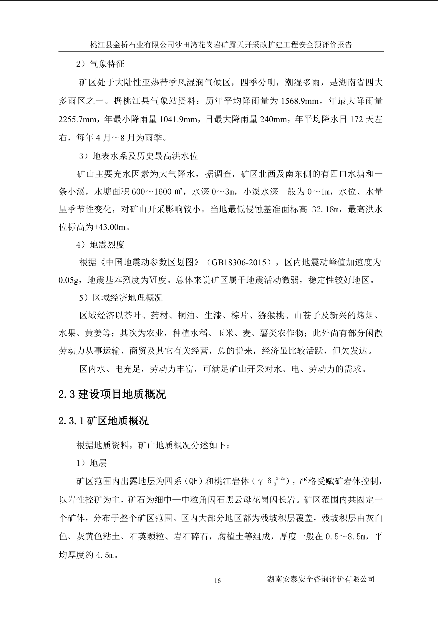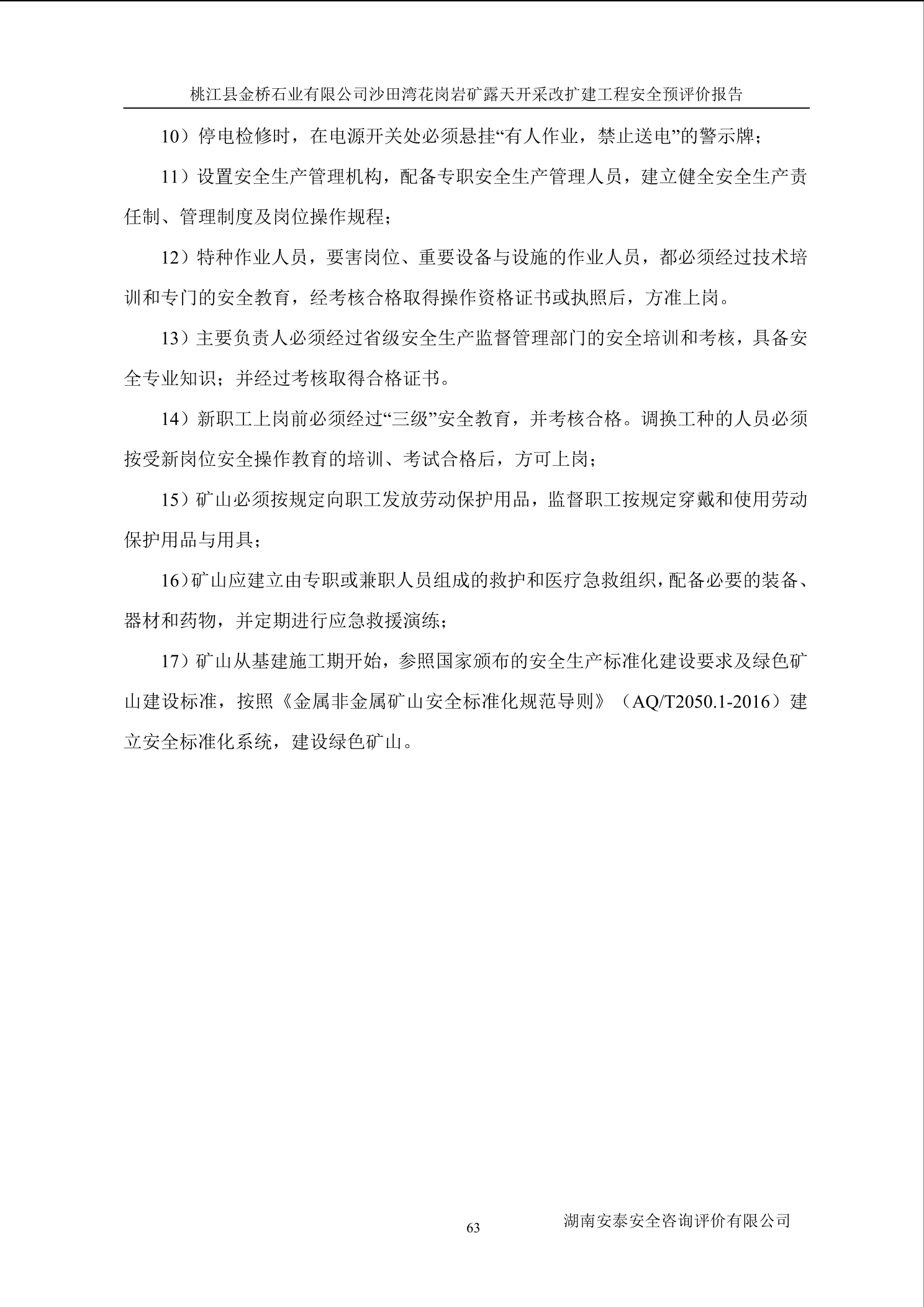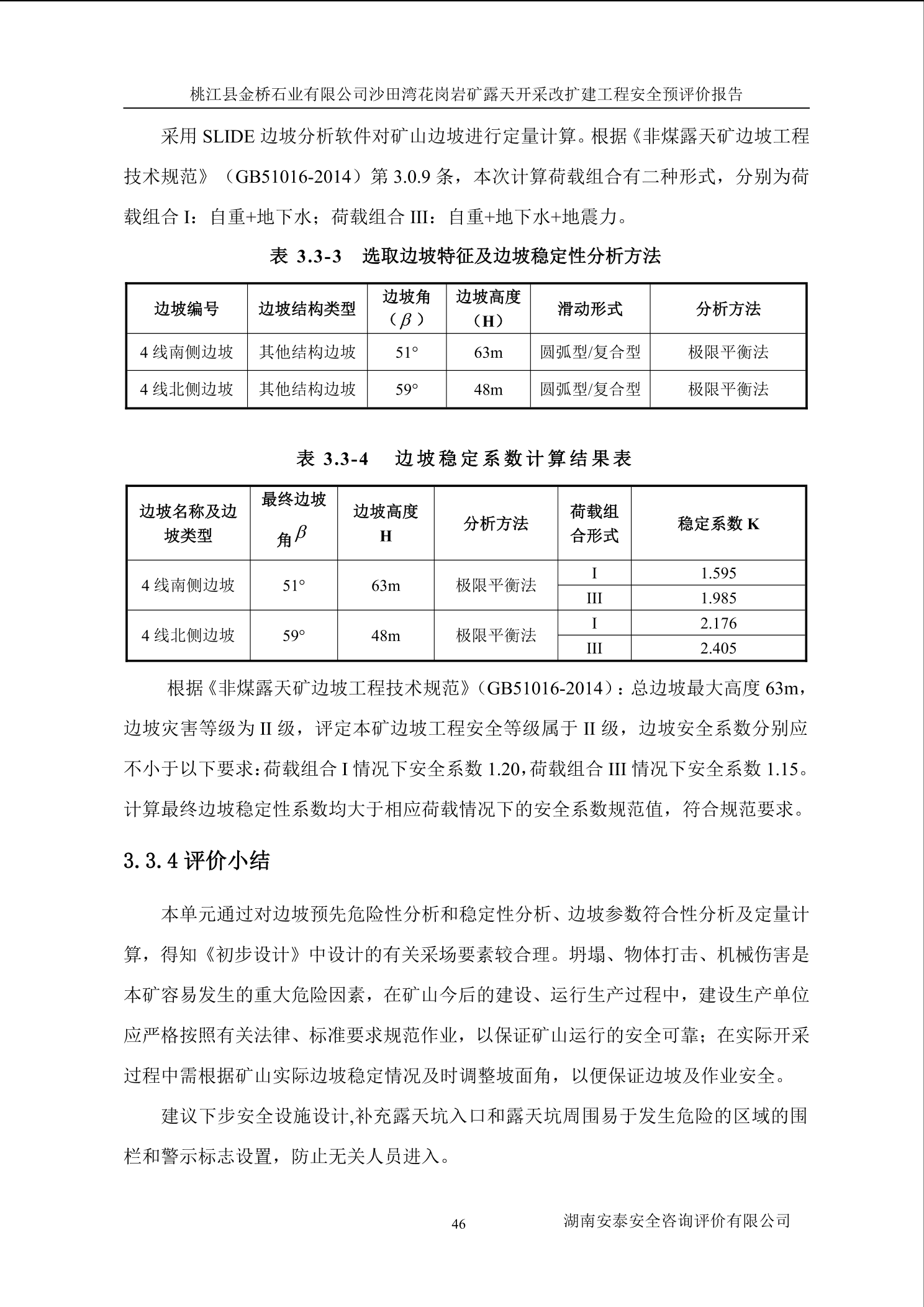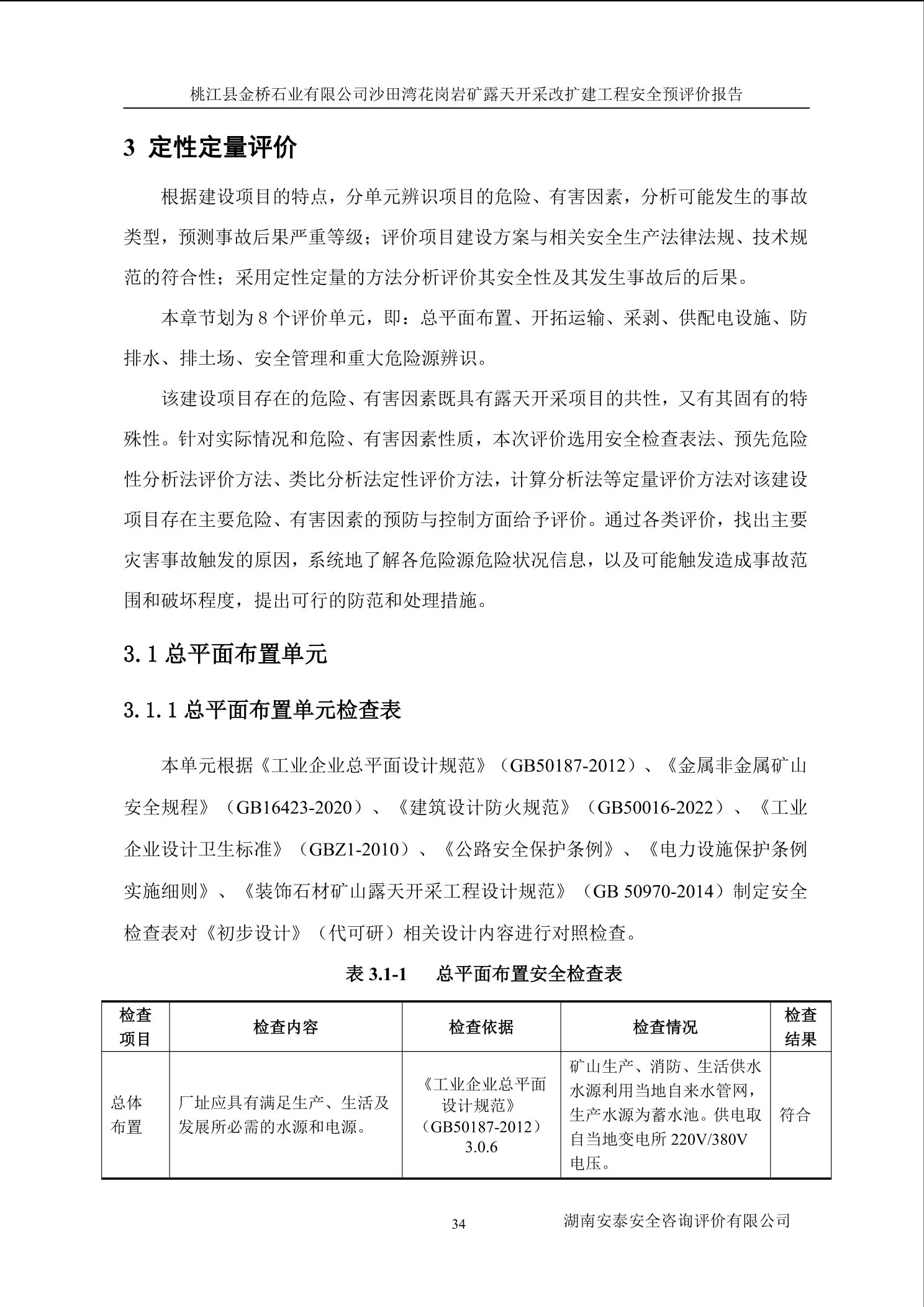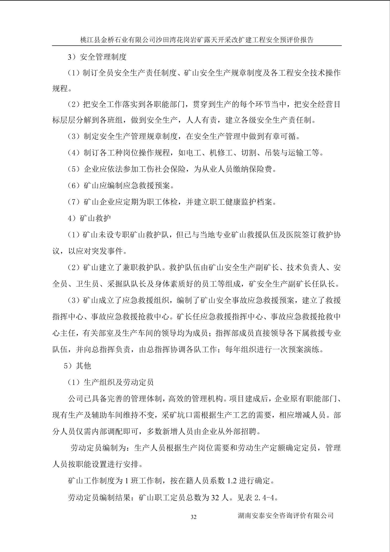 桃江县金桥石业有限公司沙田湾花岗岩矿改扩建工程安全预评价报告