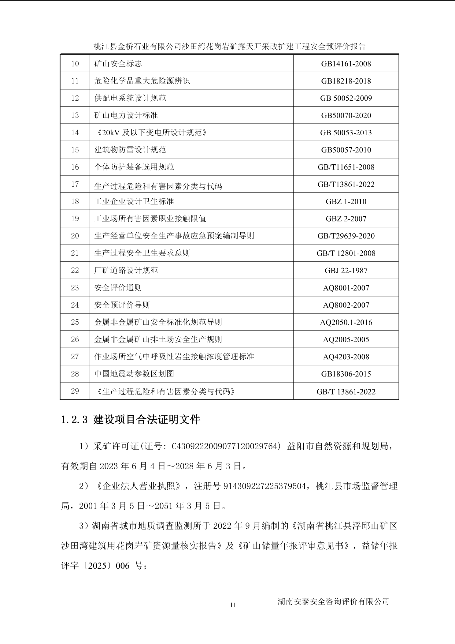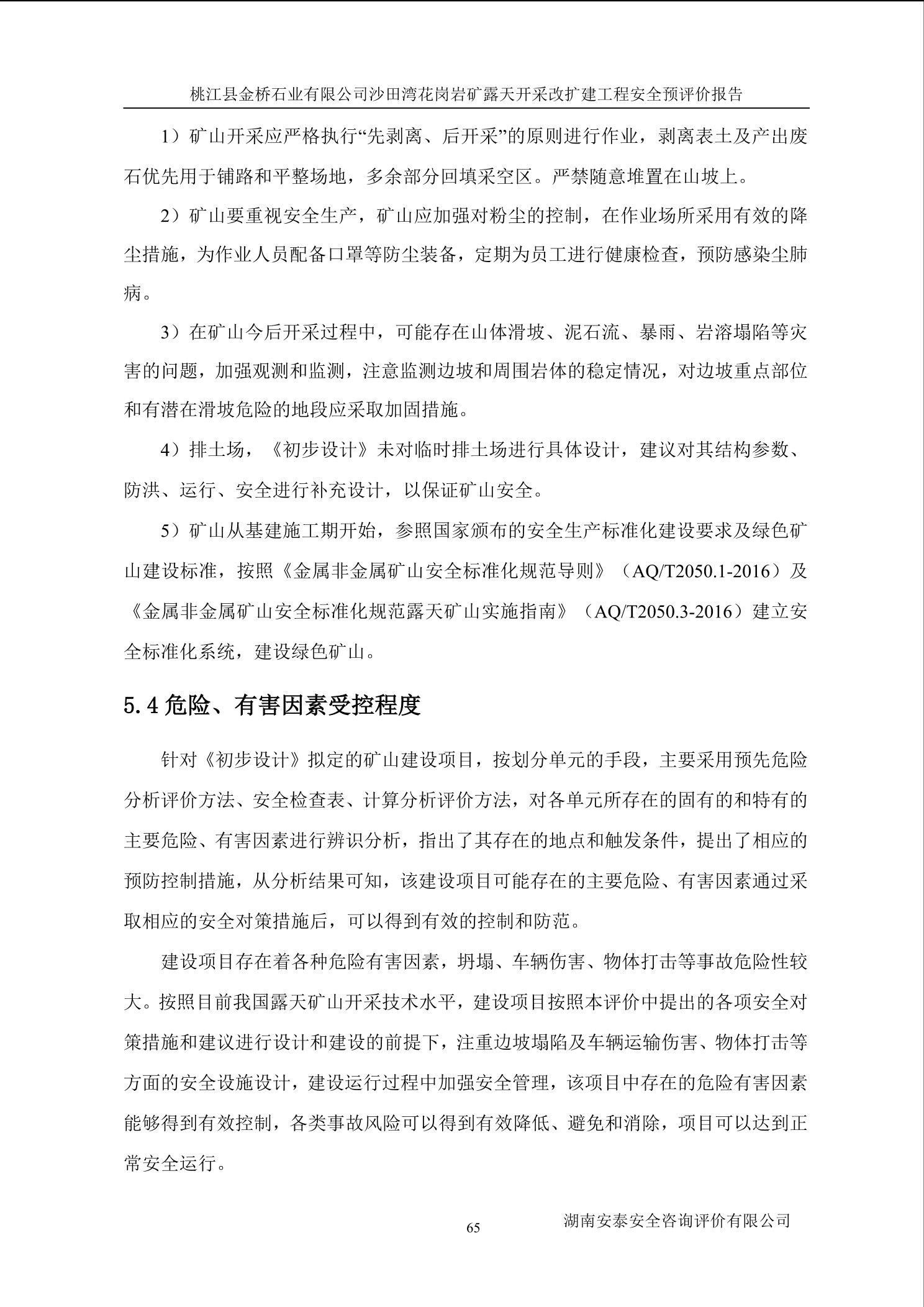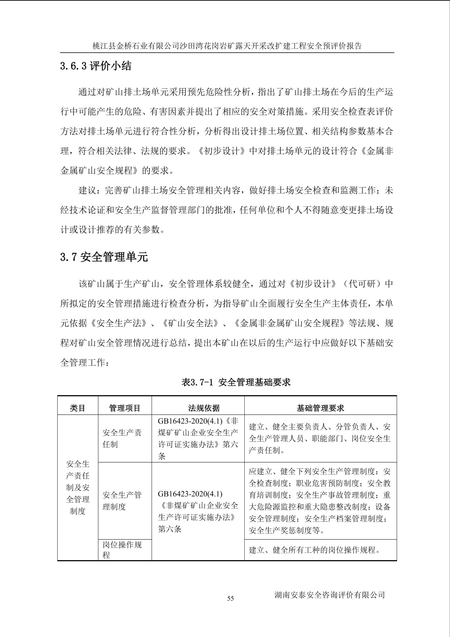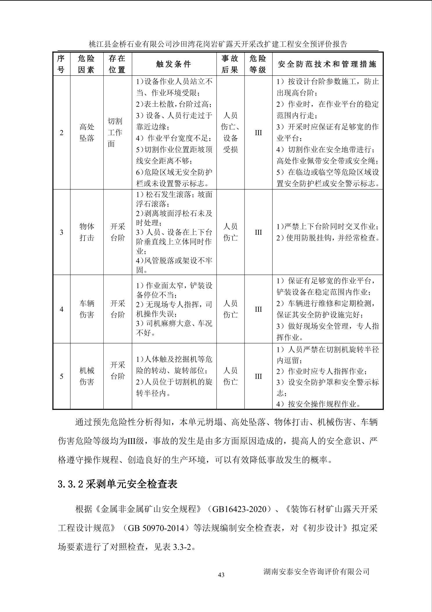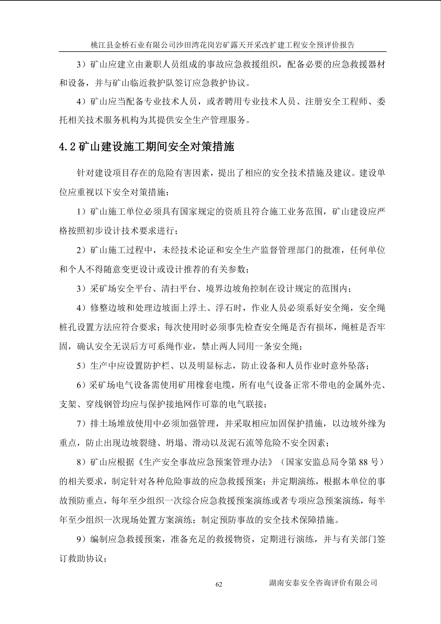 桃江县金桥石业有限公司沙田湾花岗岩矿改扩建工程安全预评价报告