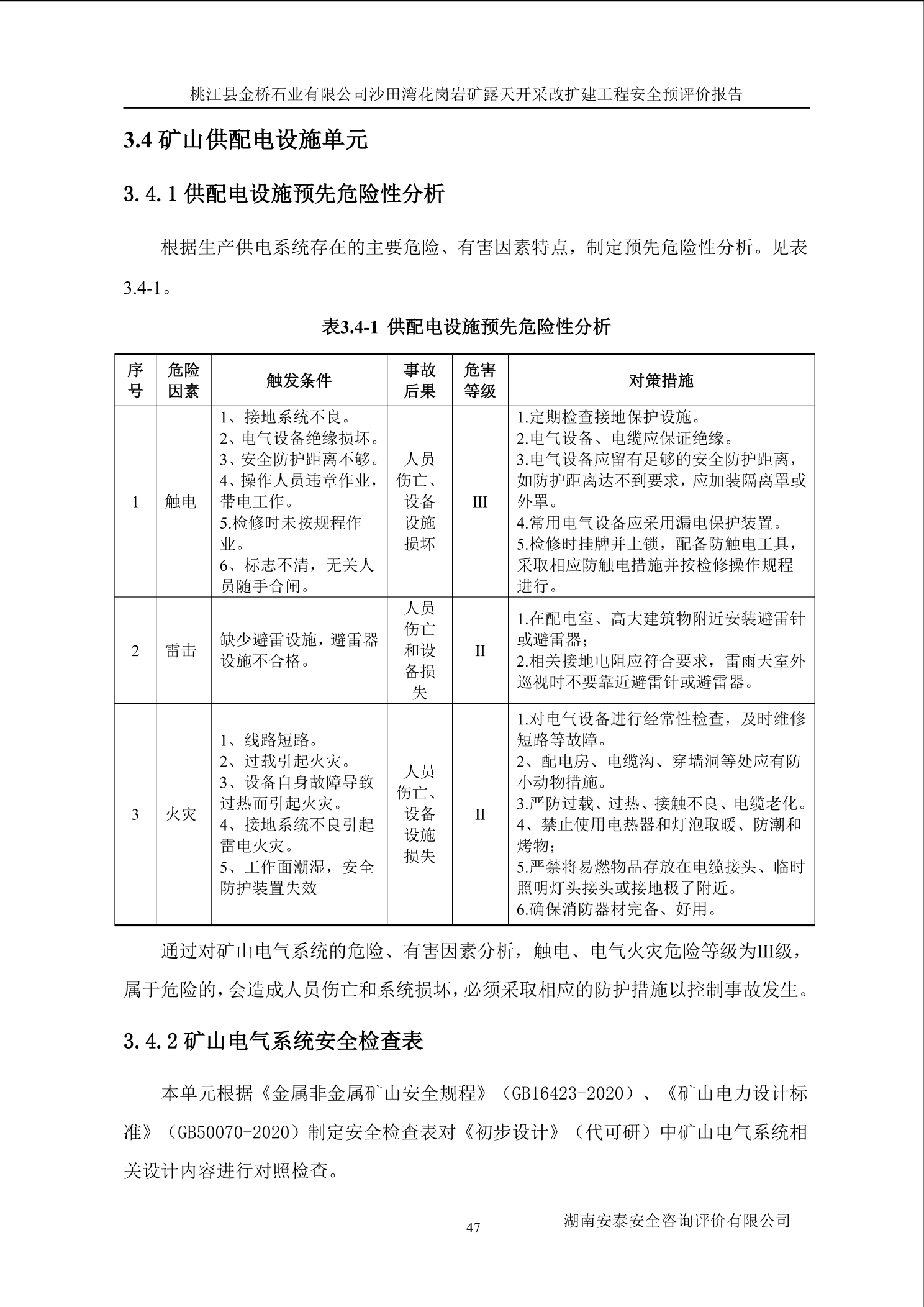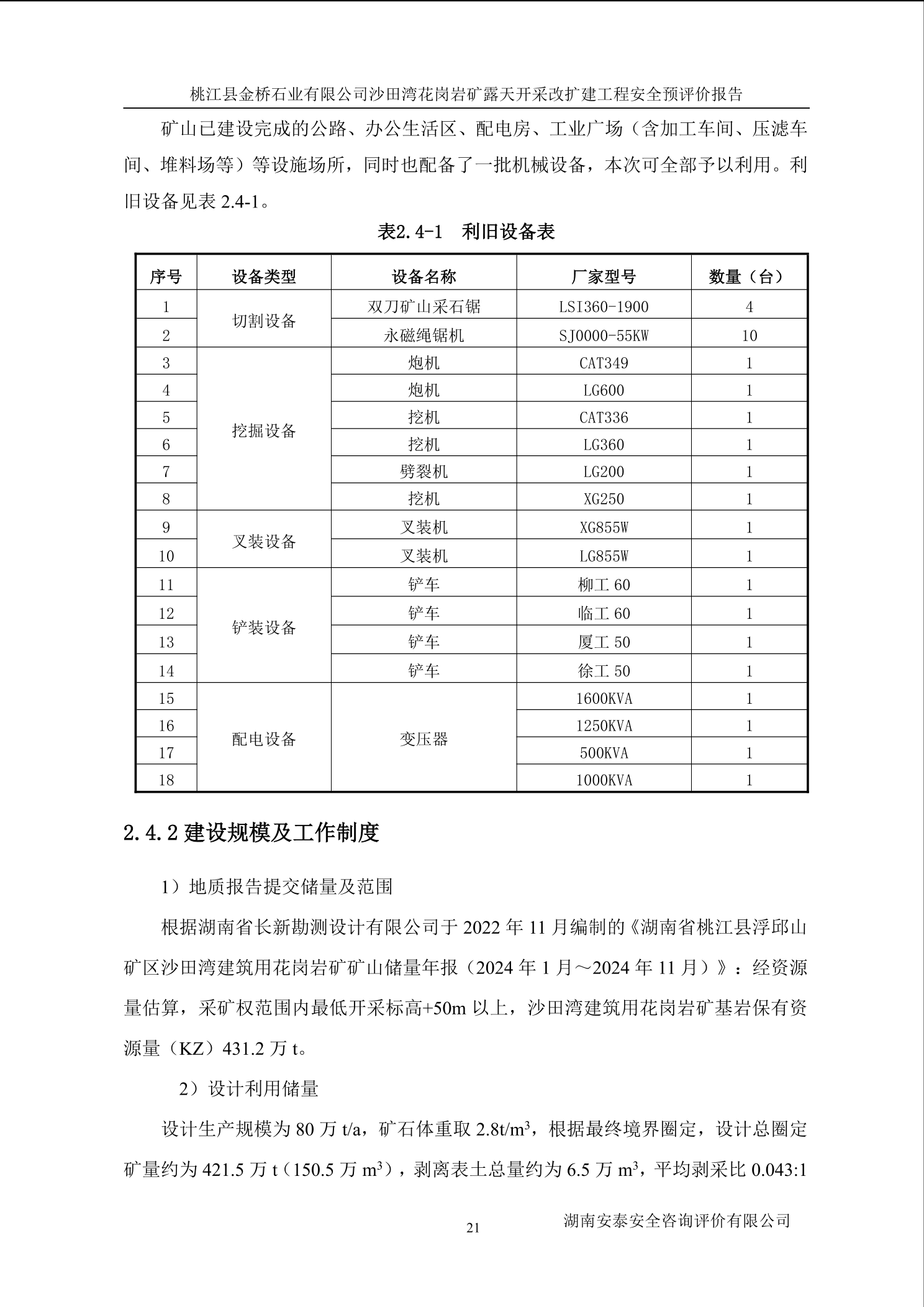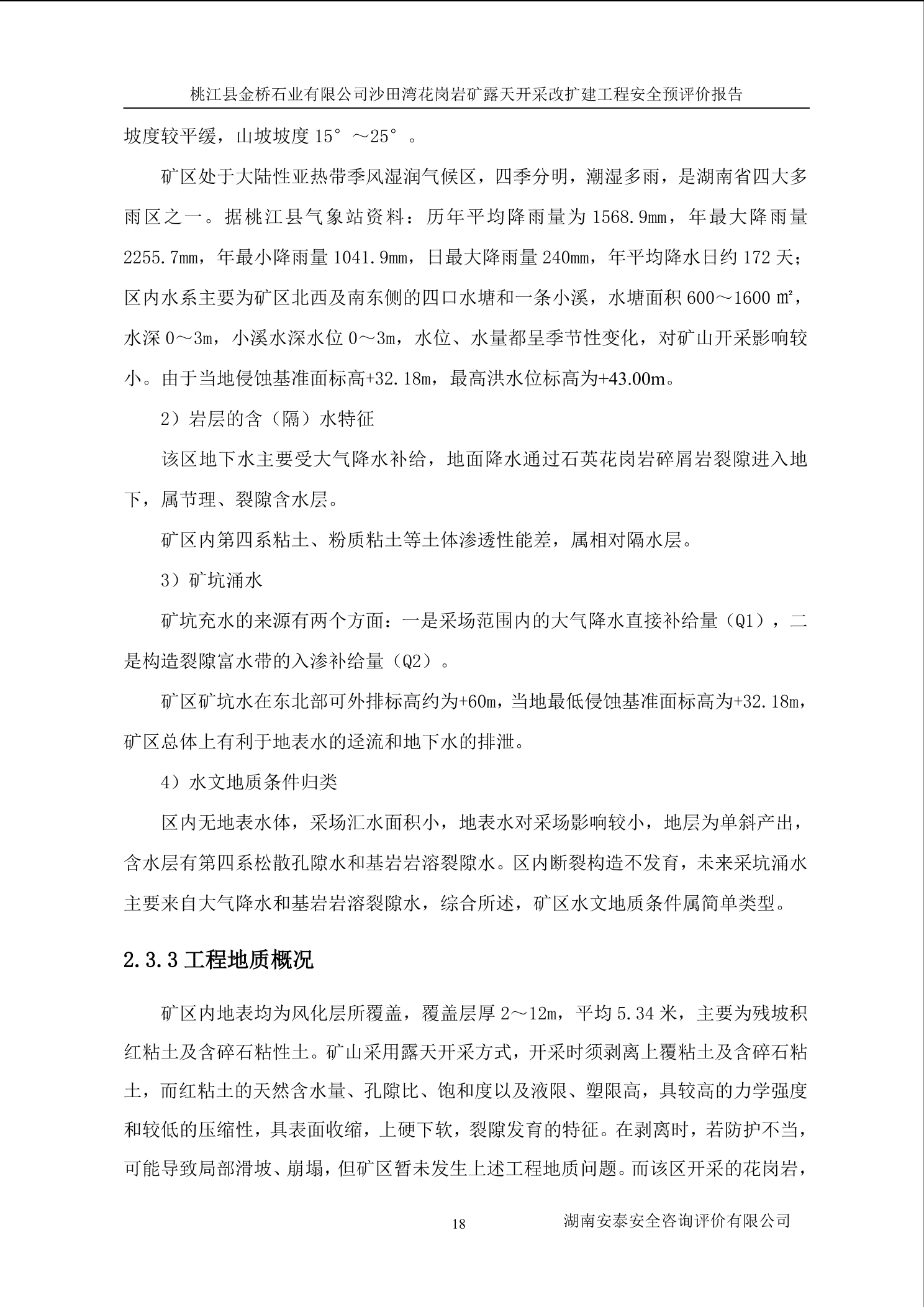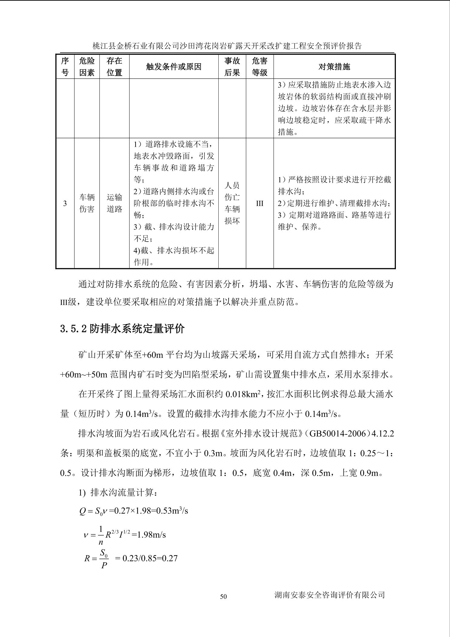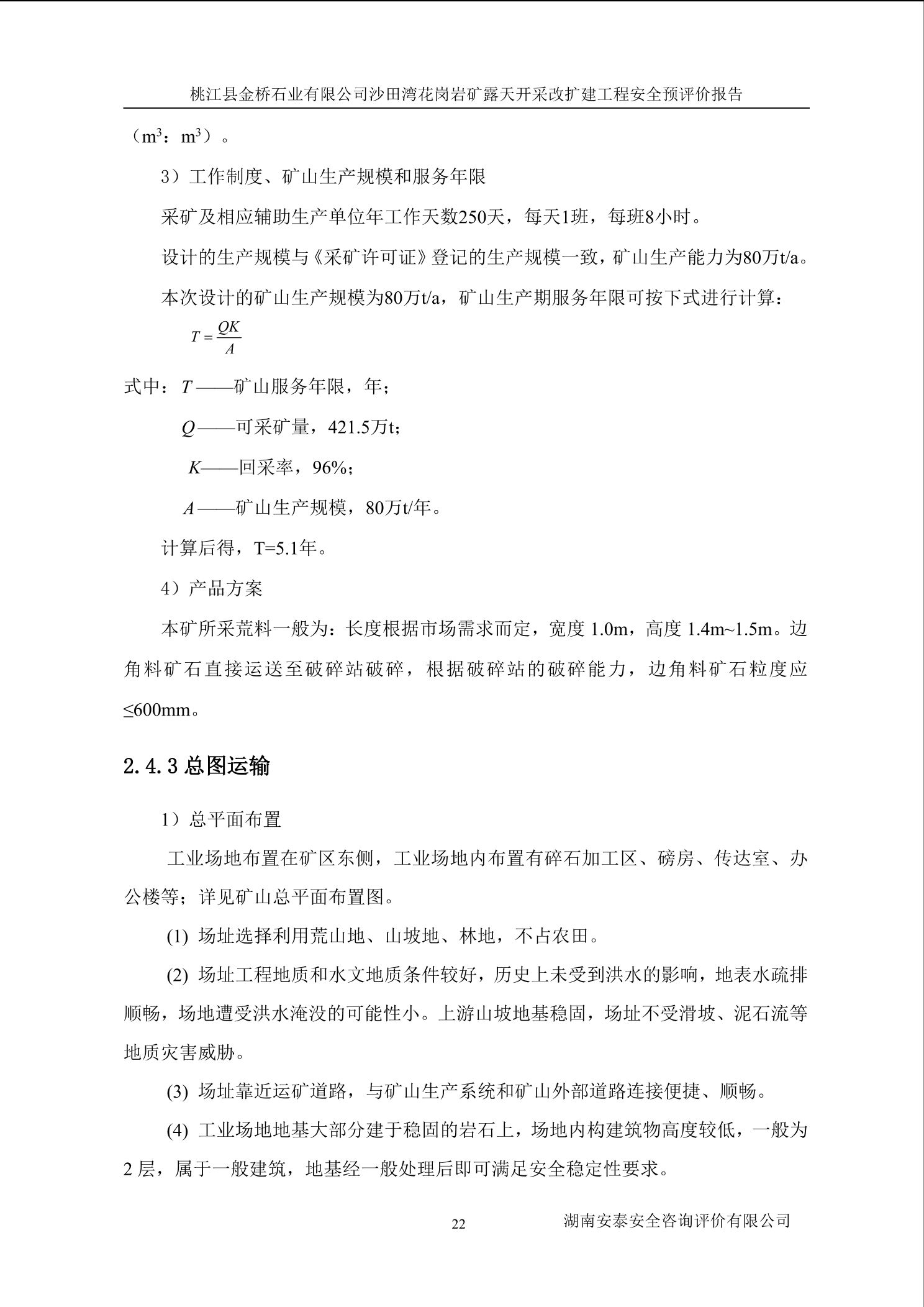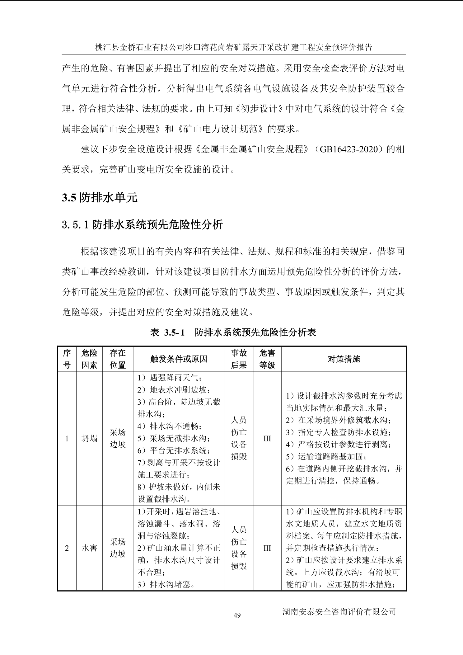 桃江县金桥石业有限公司沙田湾花岗岩矿改扩建工程安全预评价报告