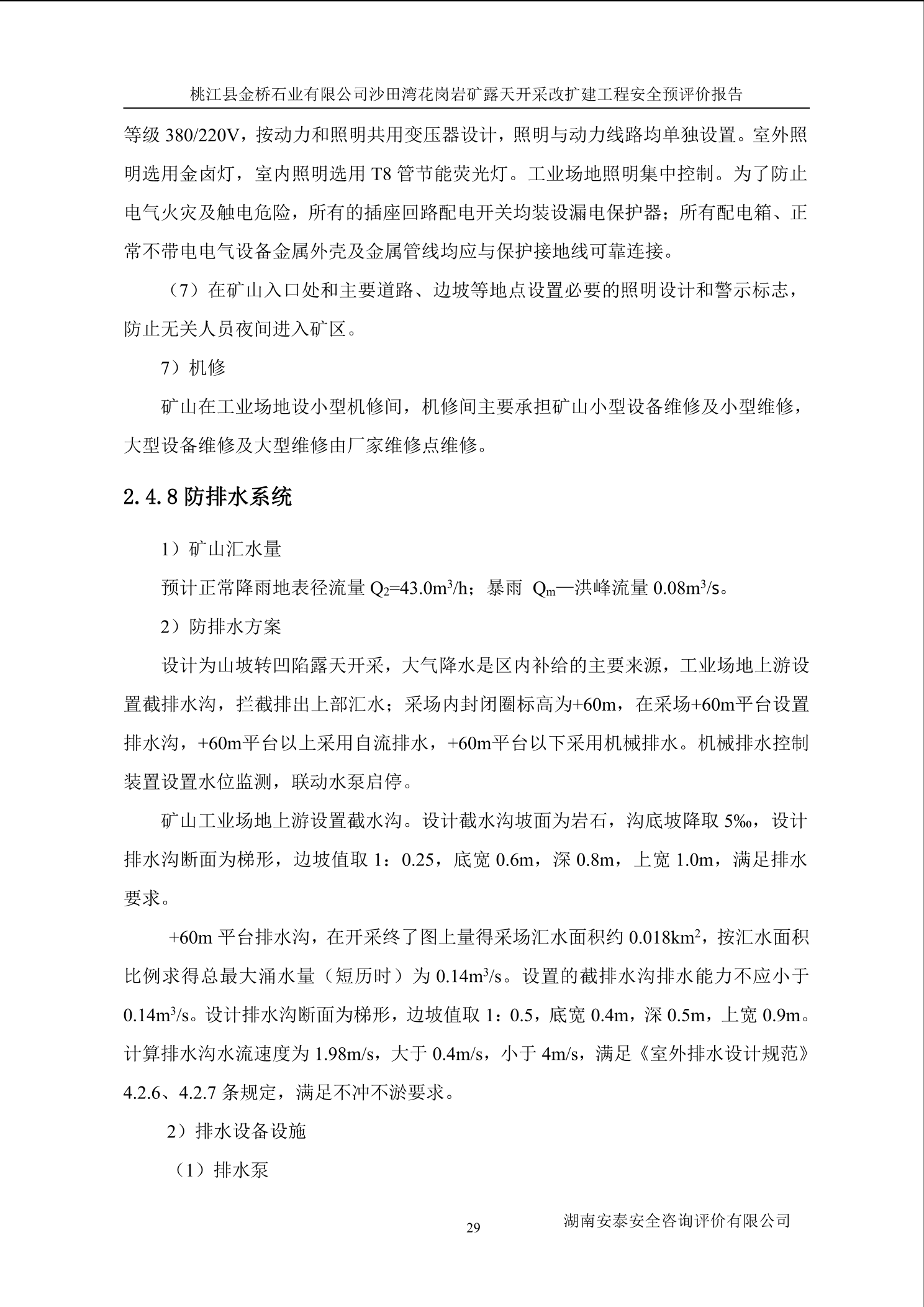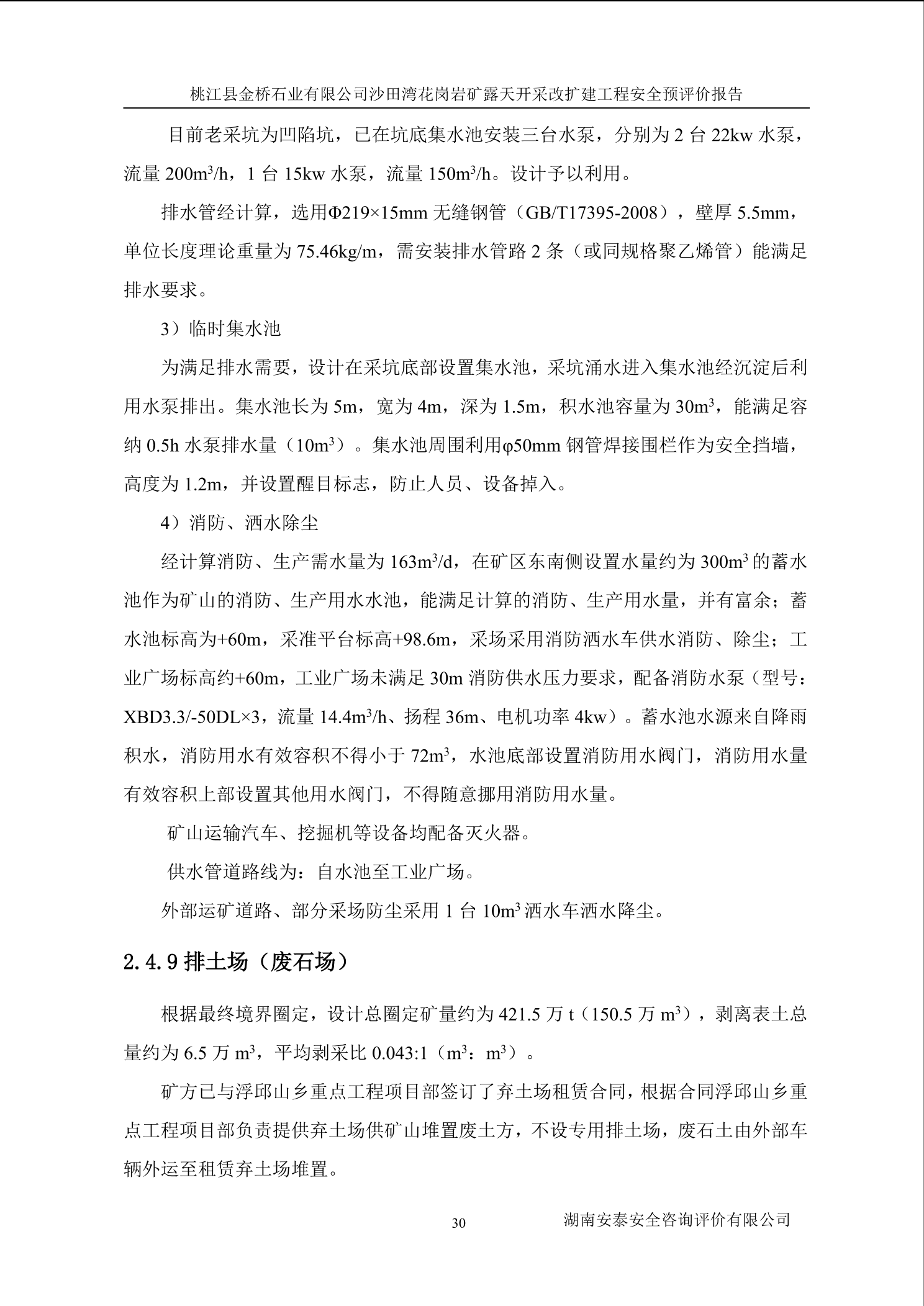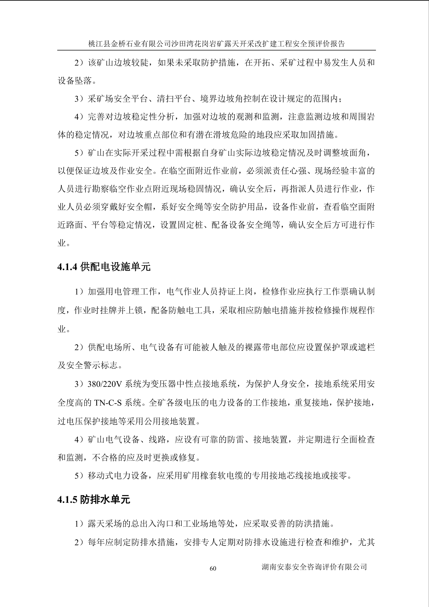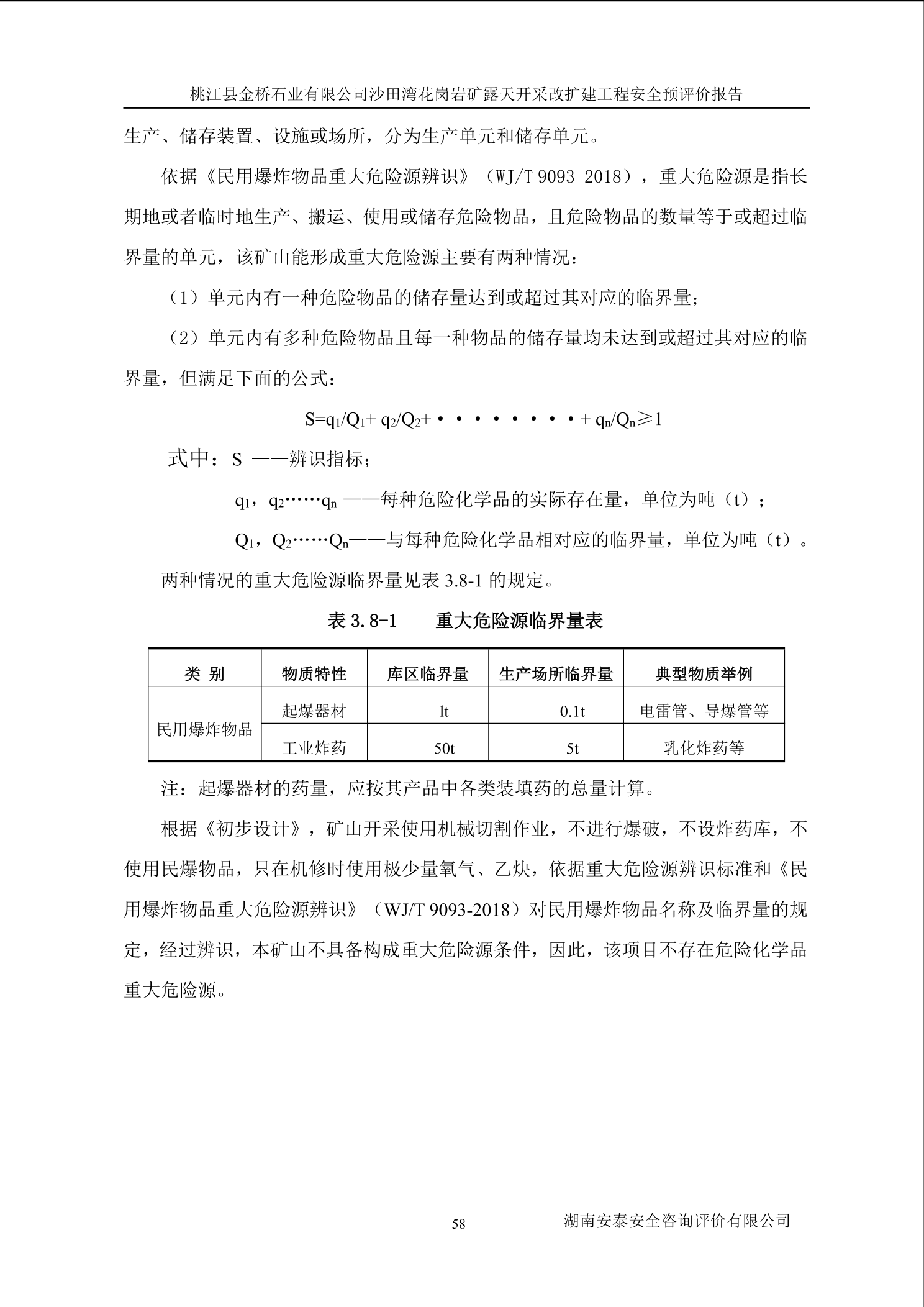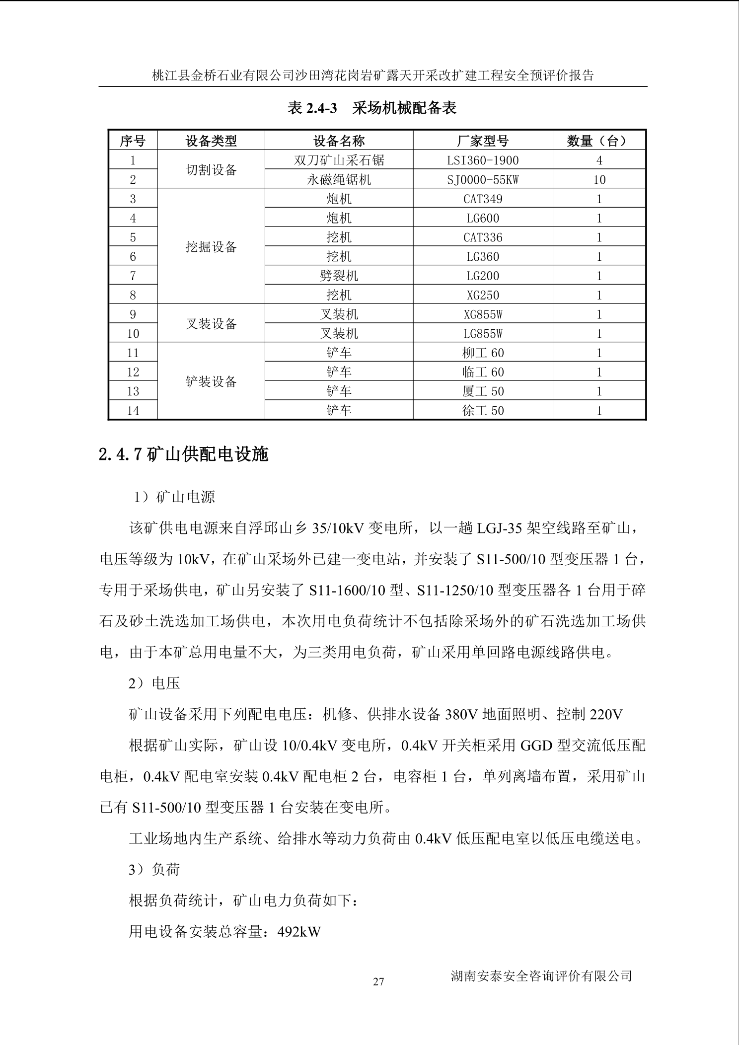 桃江县金桥石业有限公司沙田湾花岗岩矿改扩建工程安全预评价报告