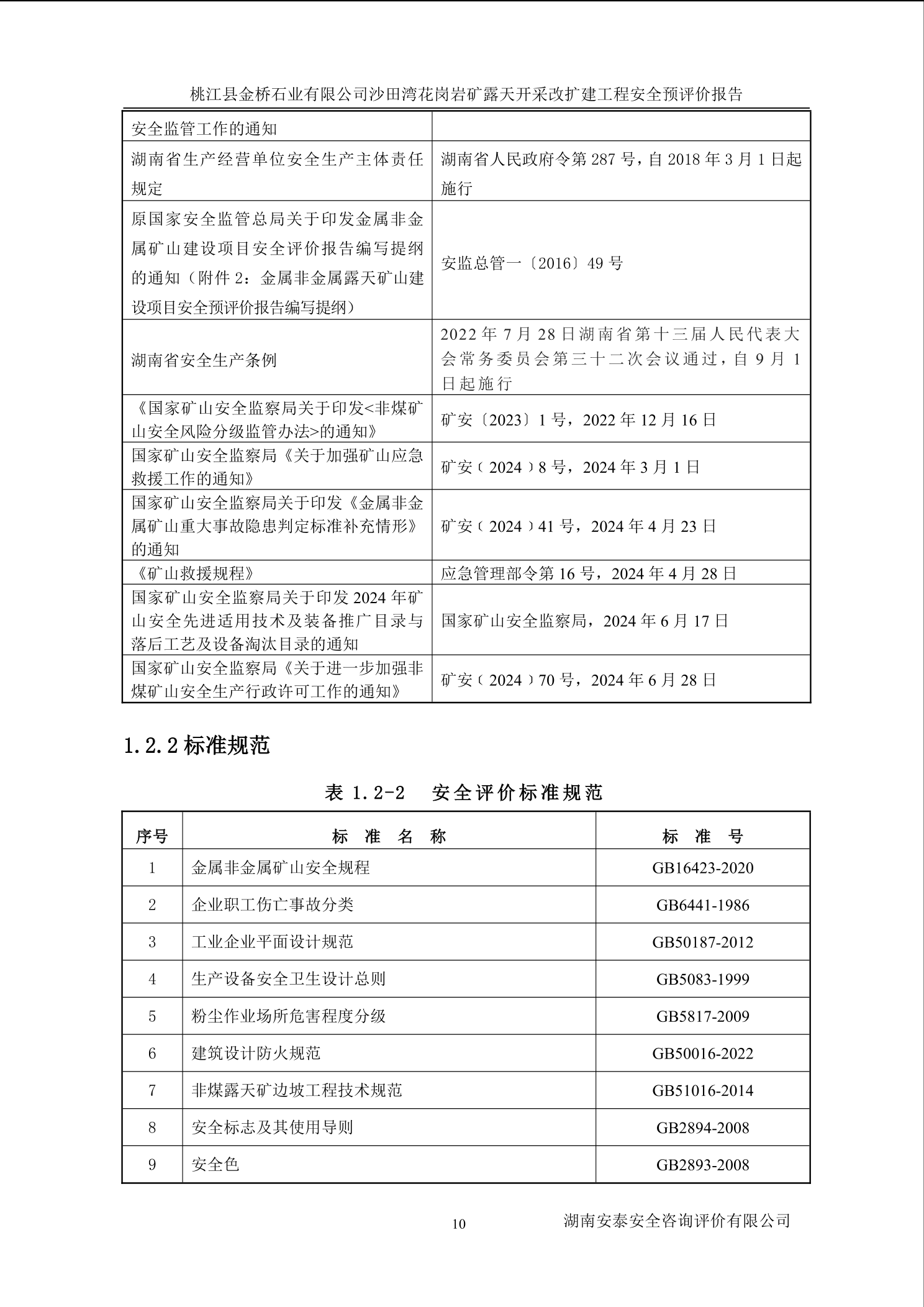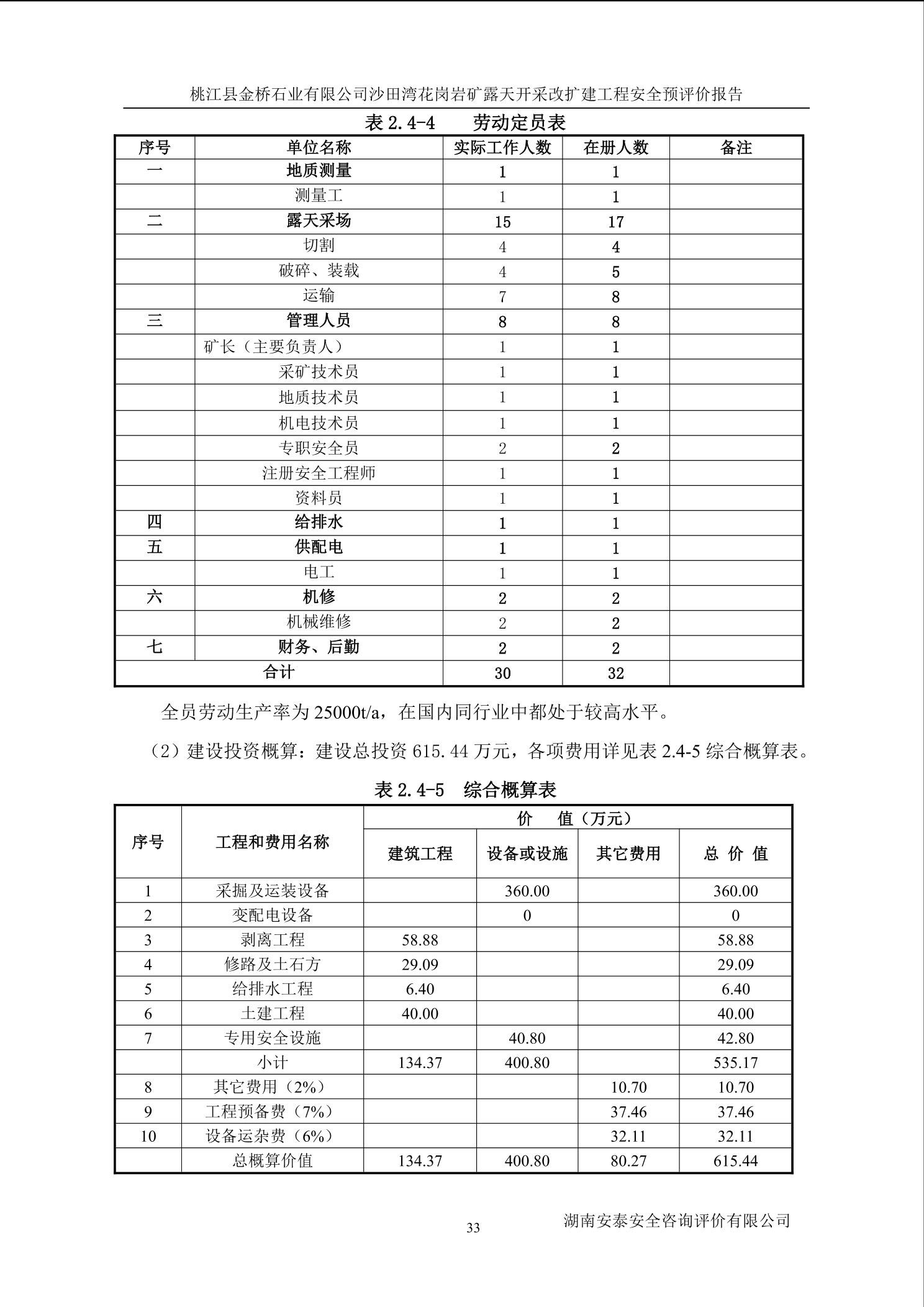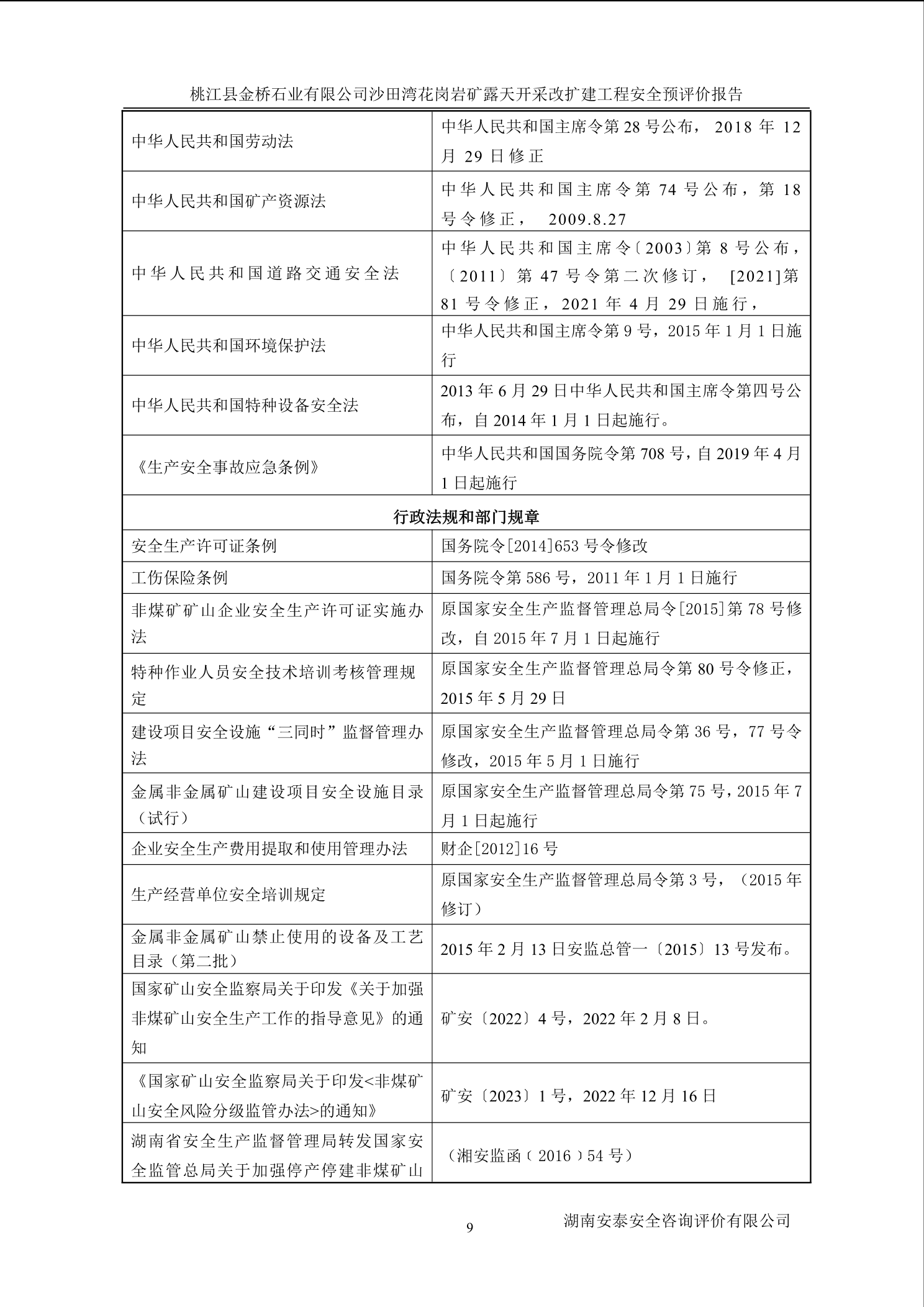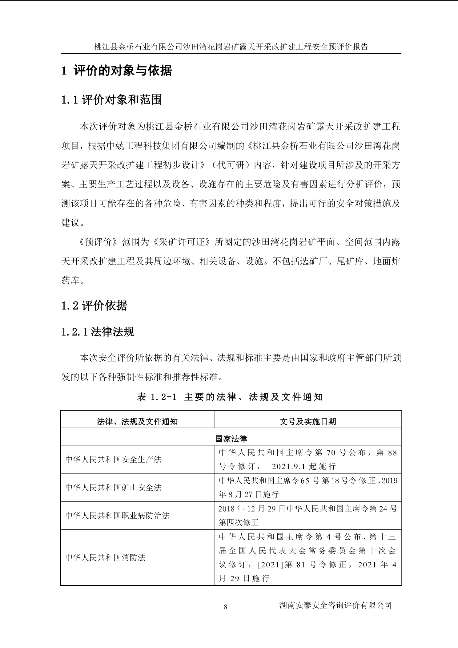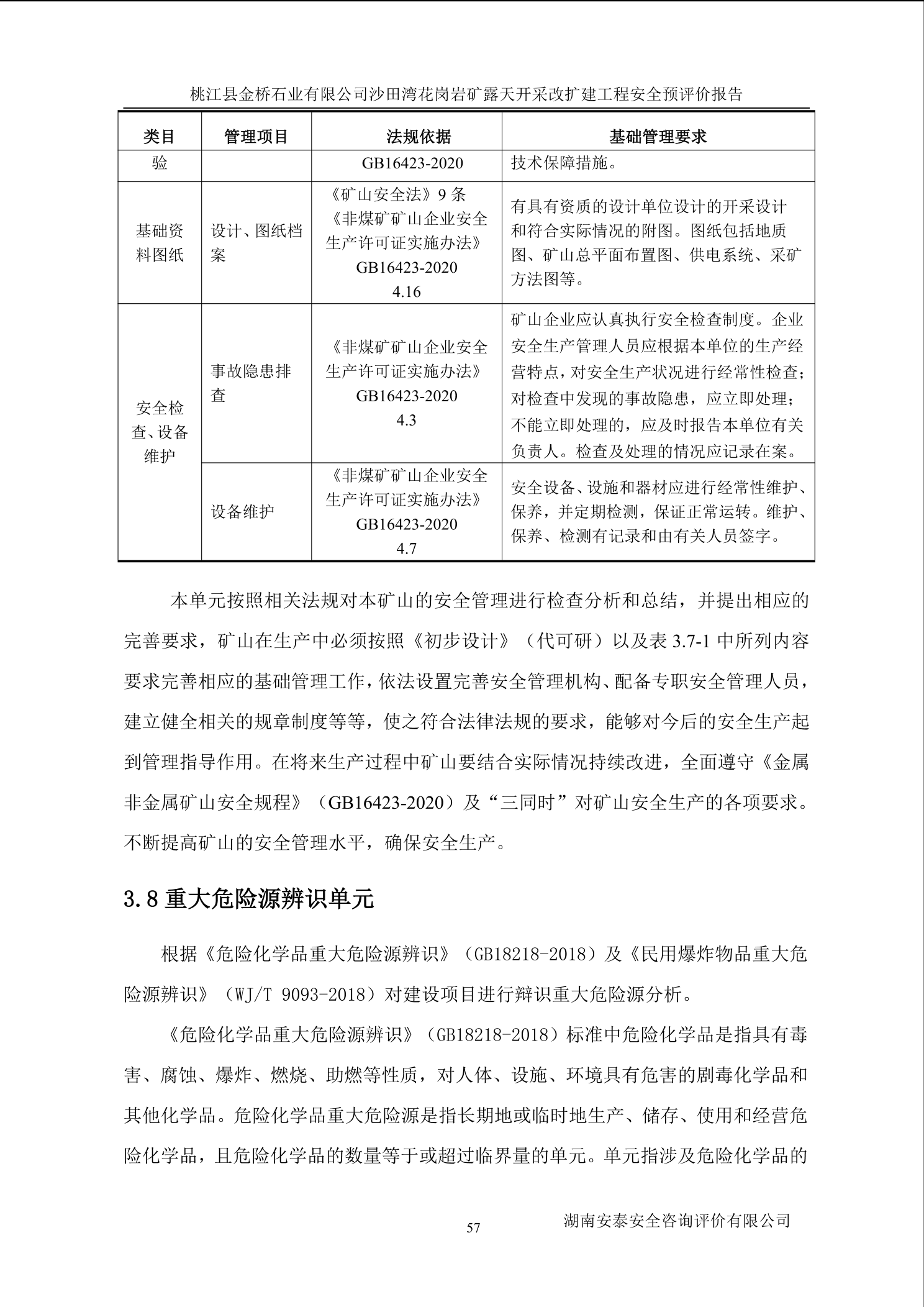 桃江县金桥石业有限公司沙田湾花岗岩矿改扩建工程安全预评价报告