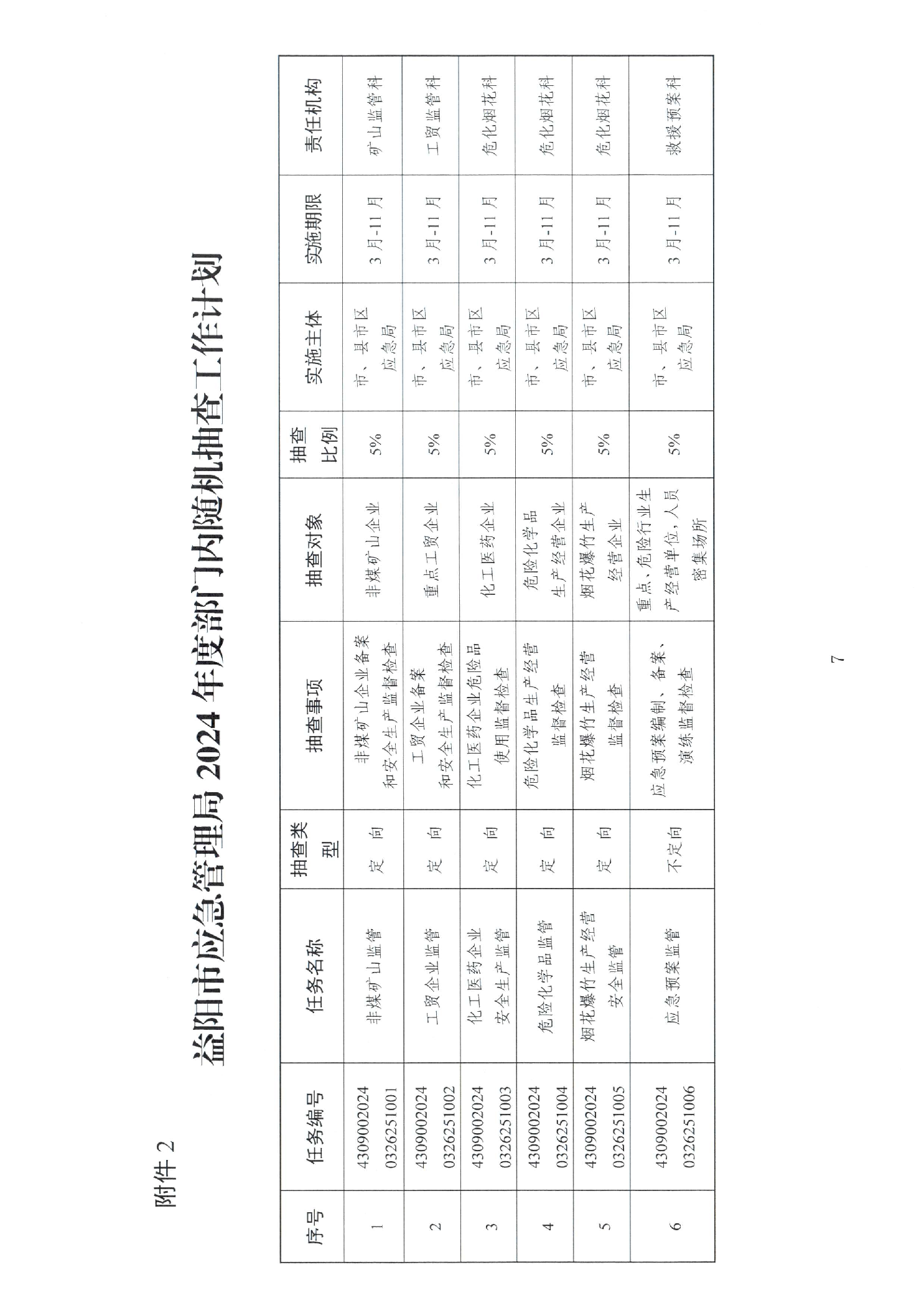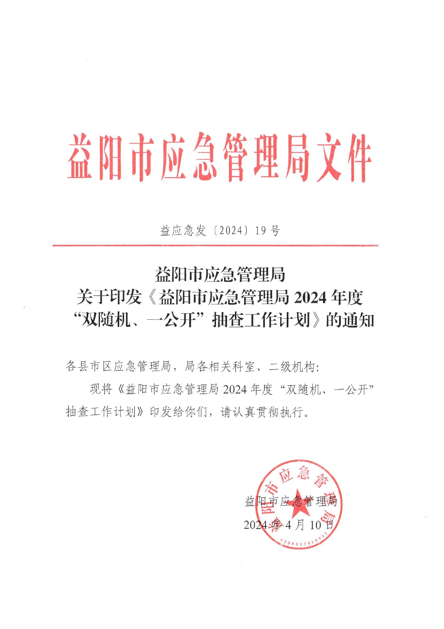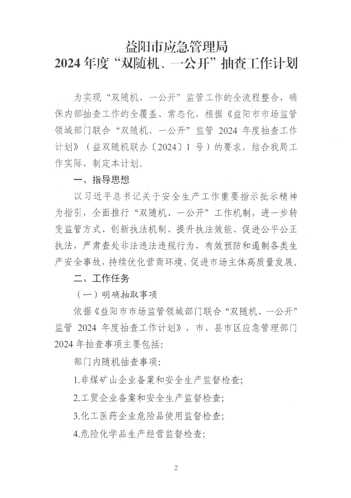 益阳市应急管理局2024年度“双随机、一公开”抽查工作计划