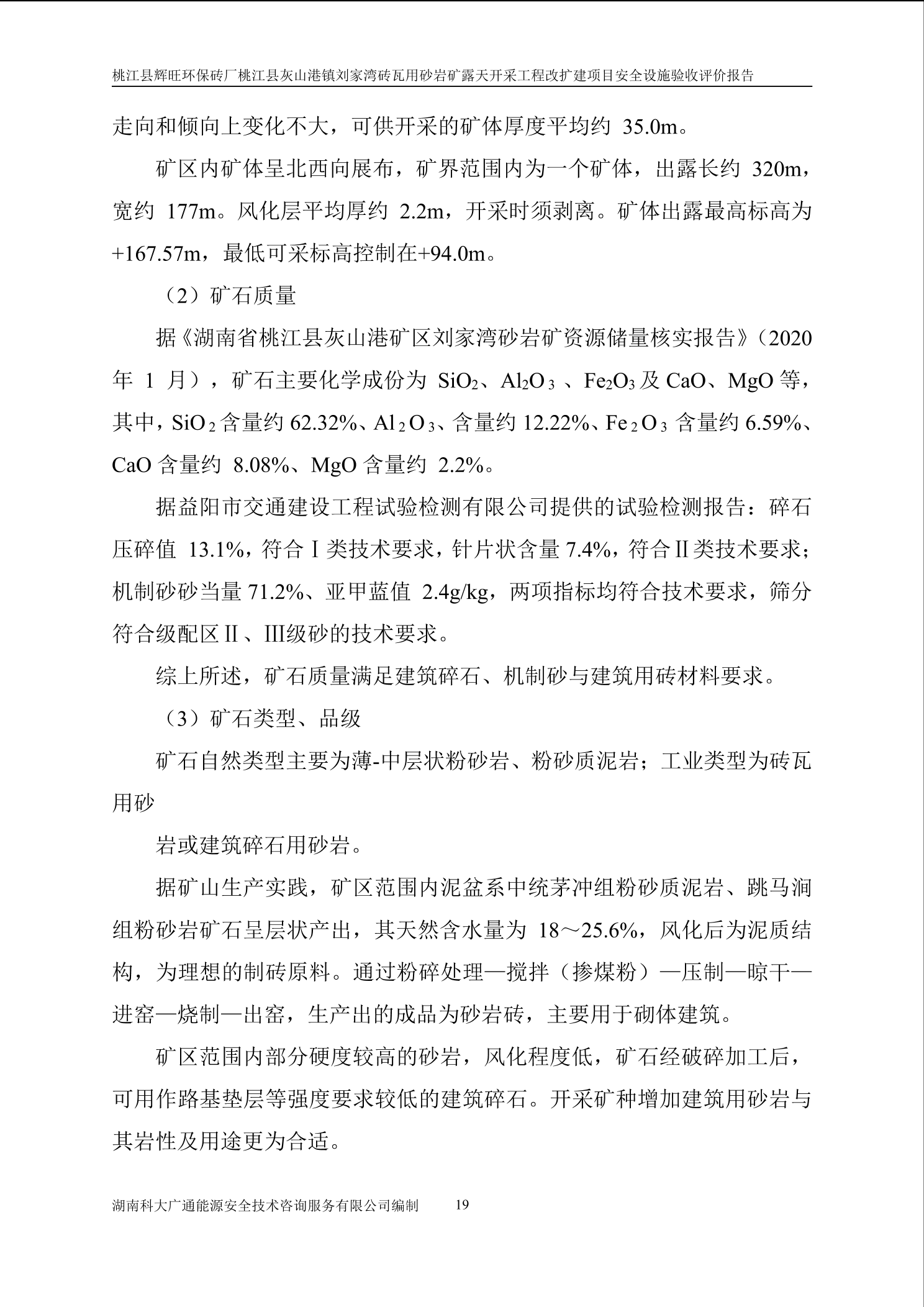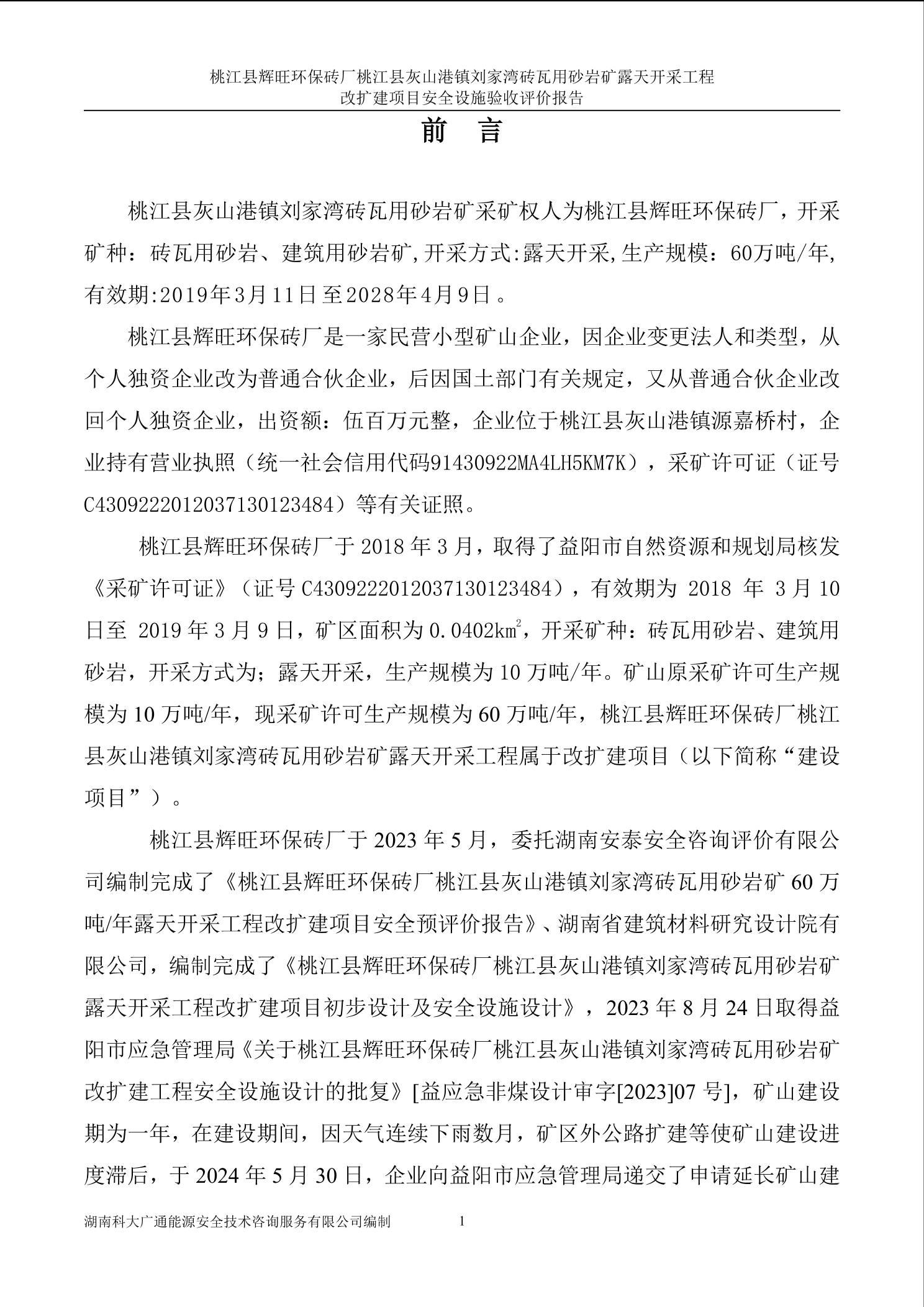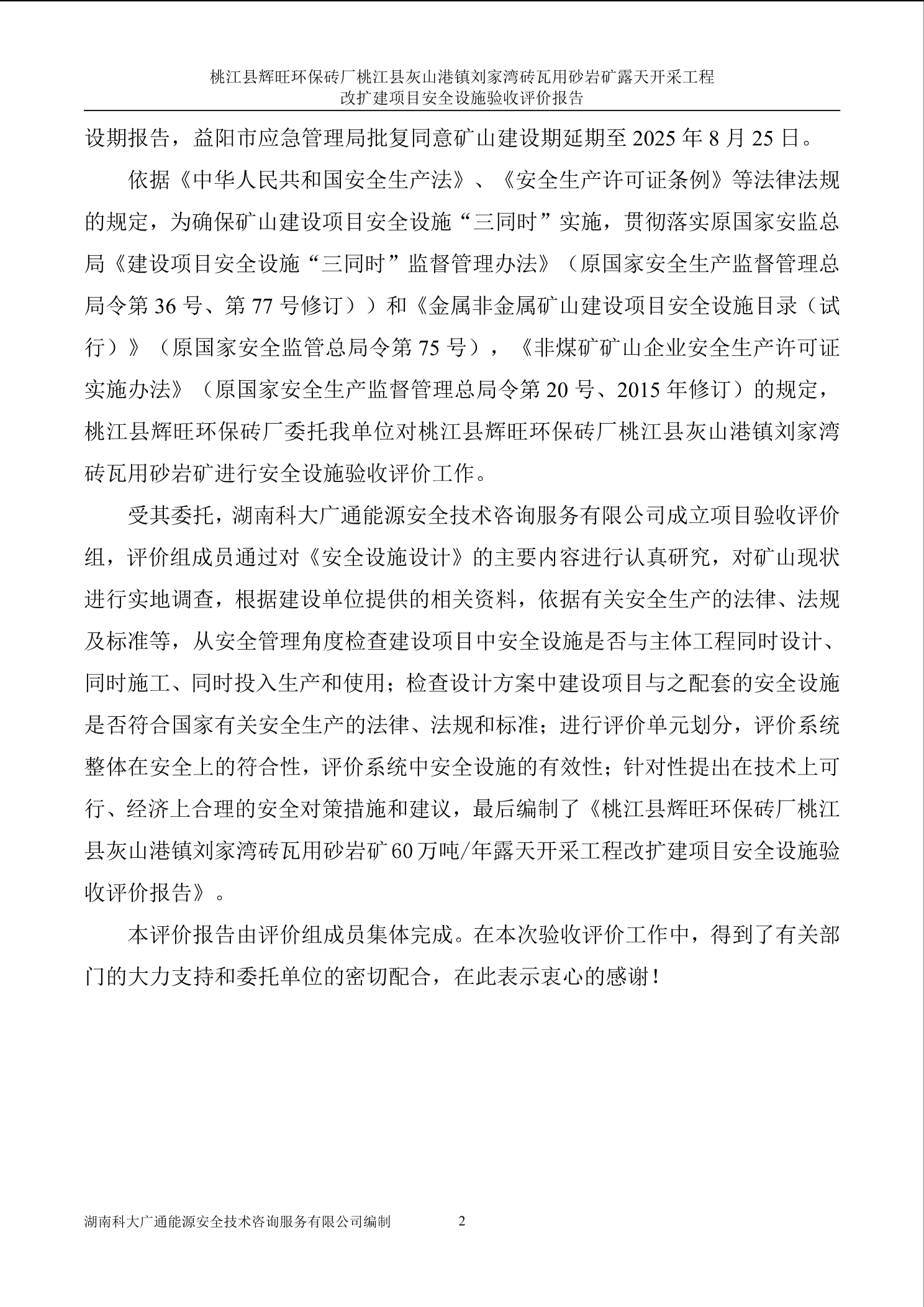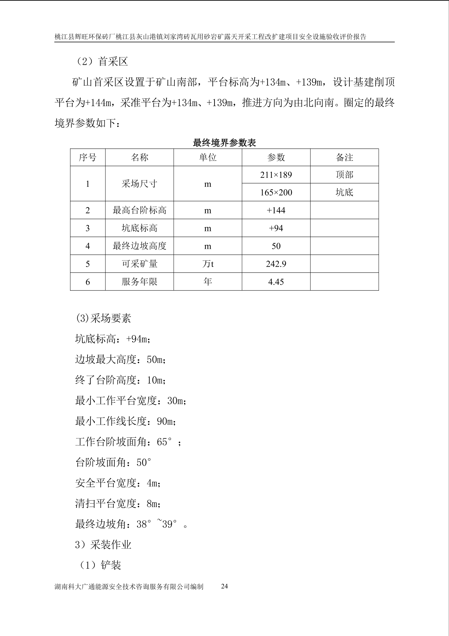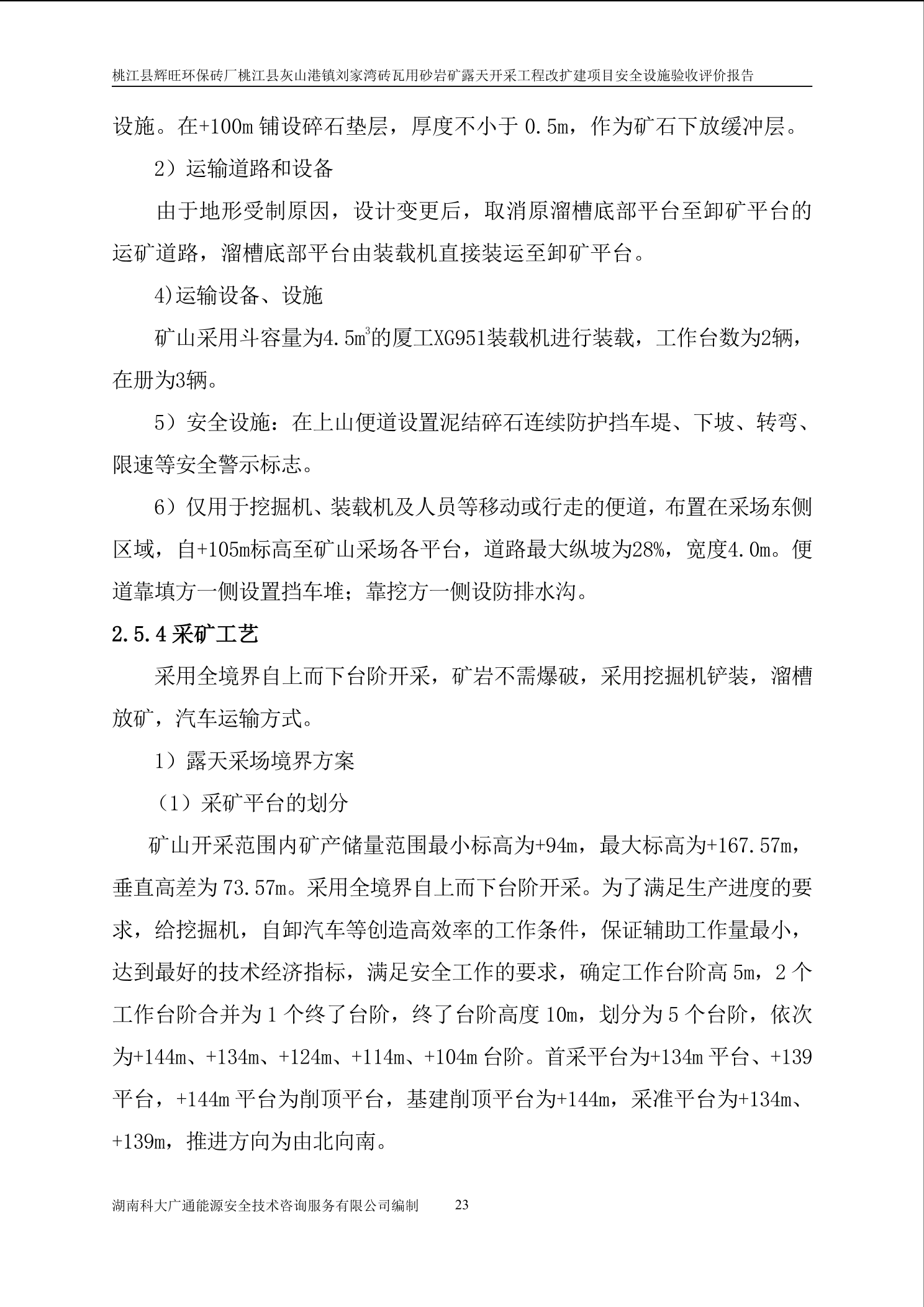 桃江县灰山港镇刘家湾砂岩矿露天开采工程改扩建项目安全设施验收评价报告