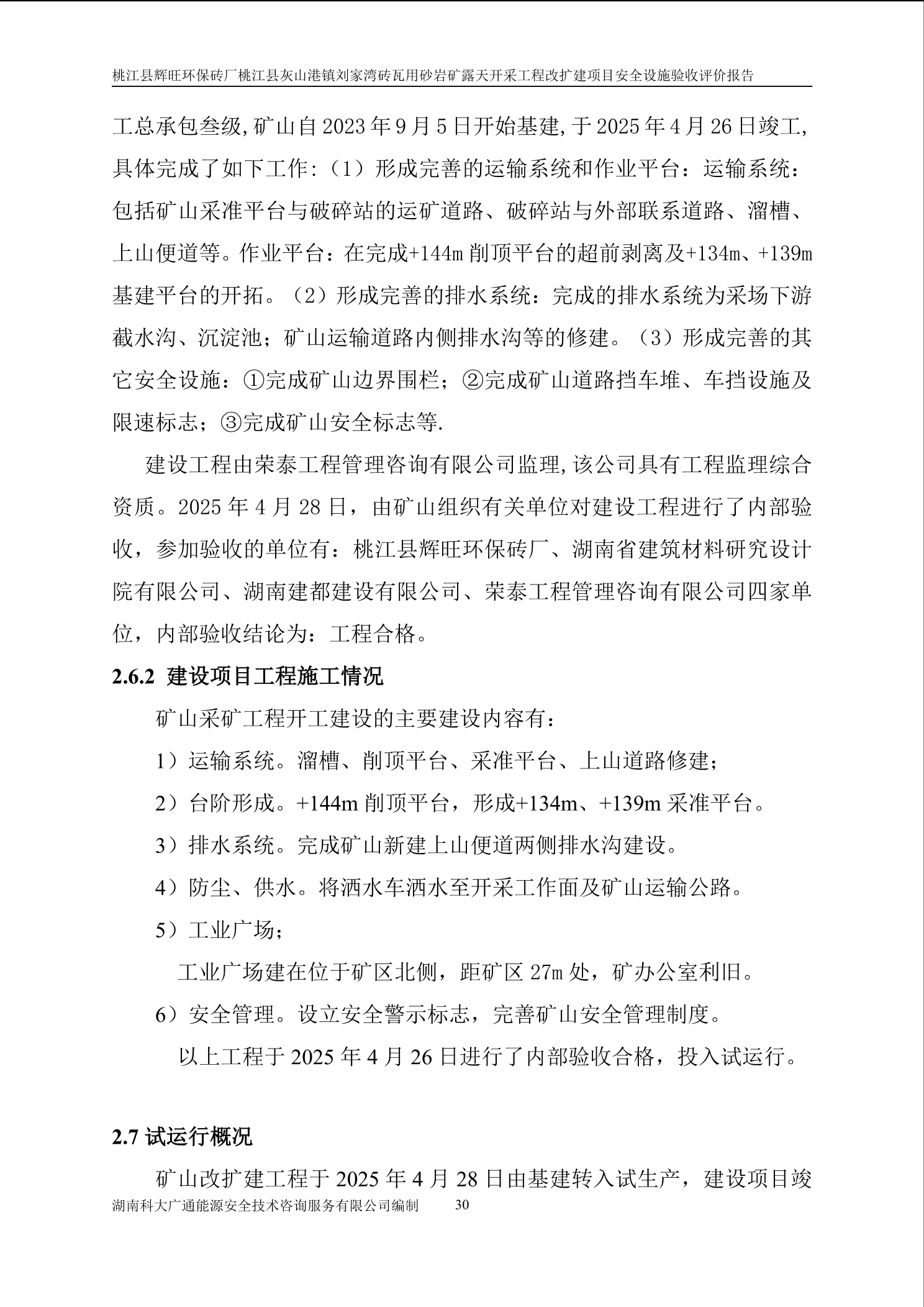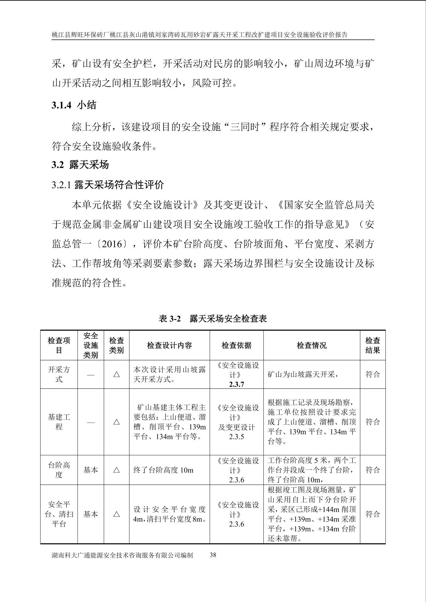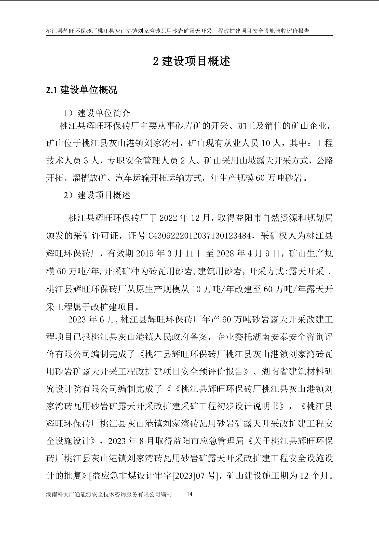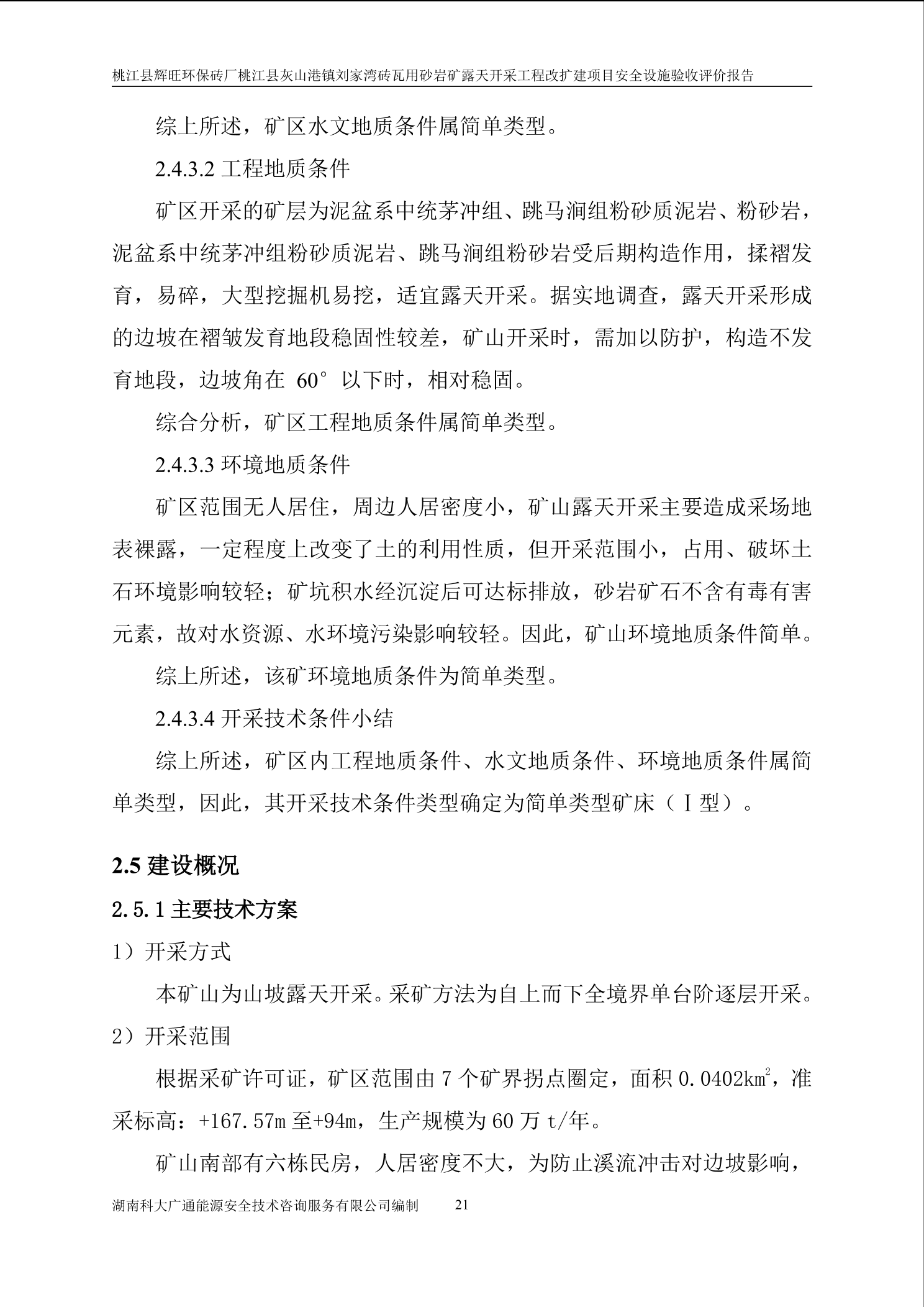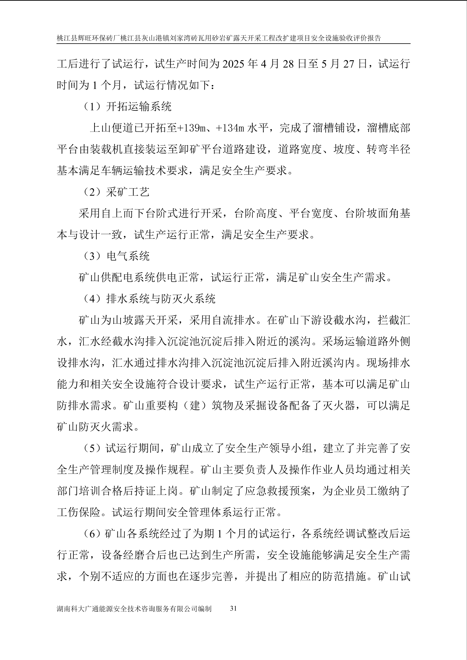 桃江县灰山港镇刘家湾砂岩矿露天开采工程改扩建项目安全设施验收评价报告